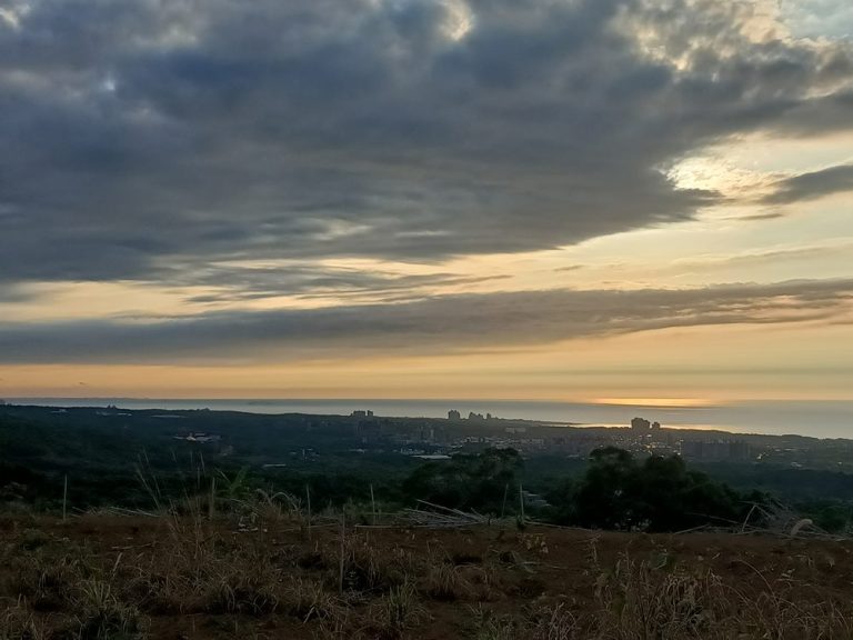 適逢暮色向晚,遠處北濱海上波光粼粼,