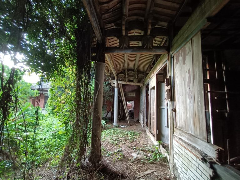 正廳採三關六開門,穿斗式屋架,正廳壁板早已被宵小光顧一空,