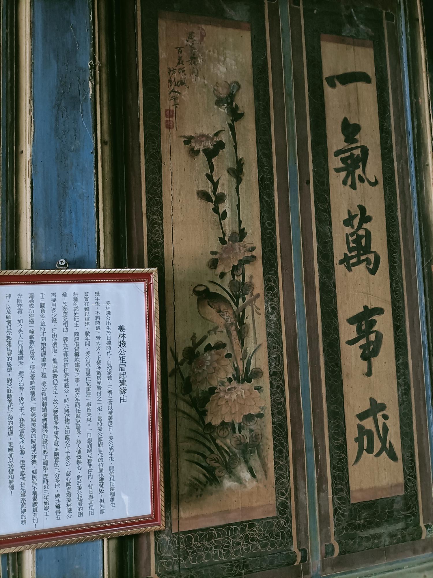 以表示姜姓林裔。宗祠則以姜姓祖籍「龍溪」與林姓祖籍「長泰」