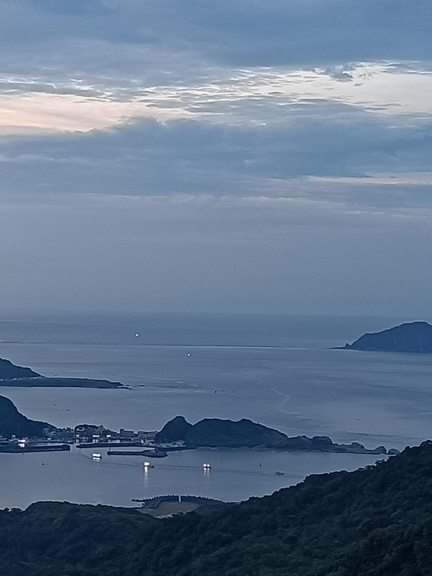 入夜後,海面上漁火點點,更襯托出山城夜晚的寧靜。