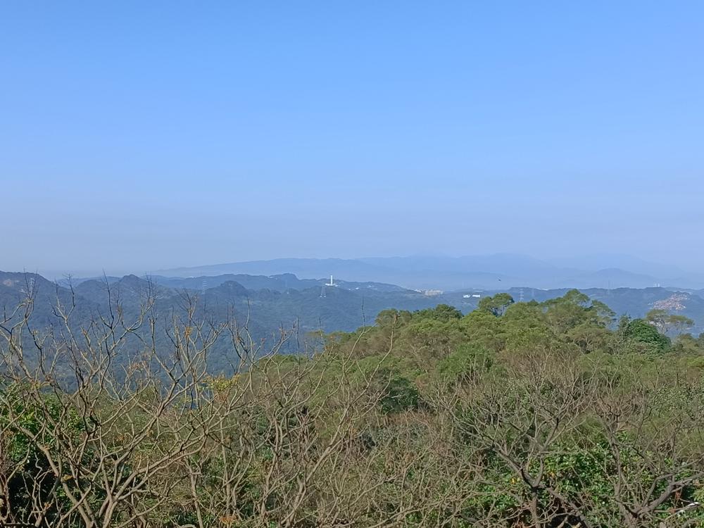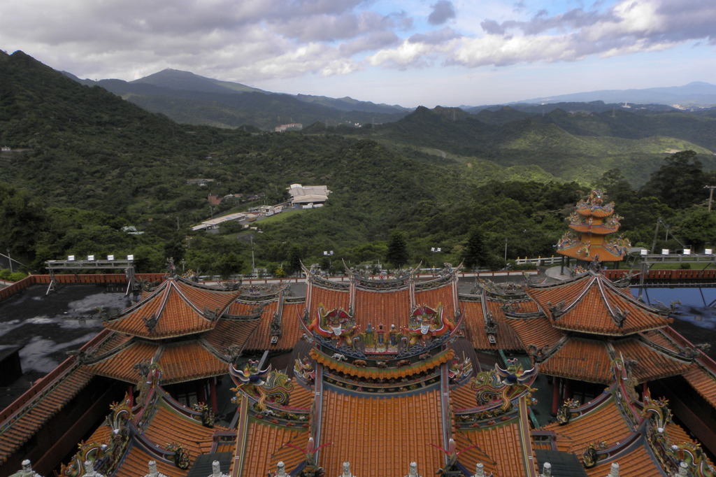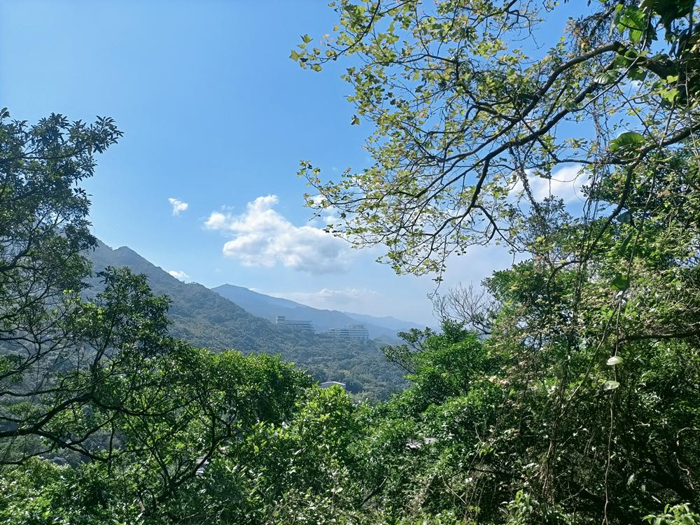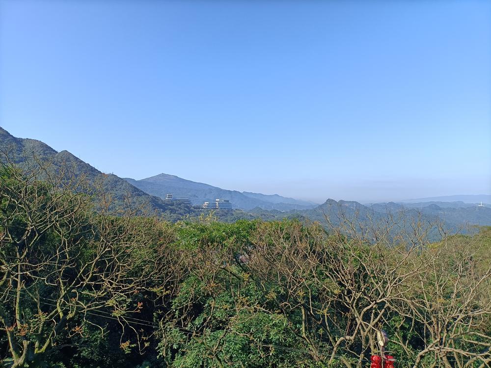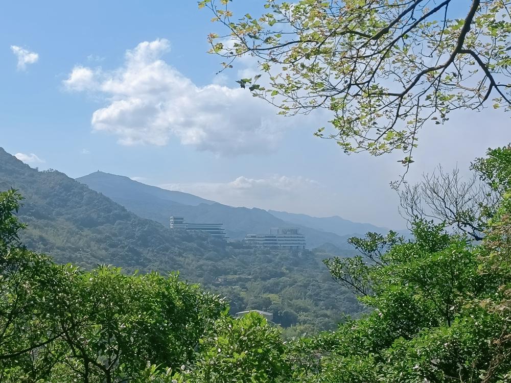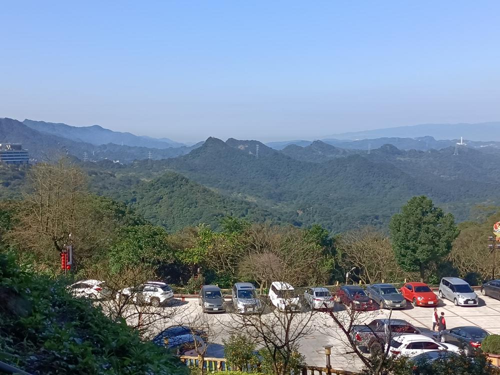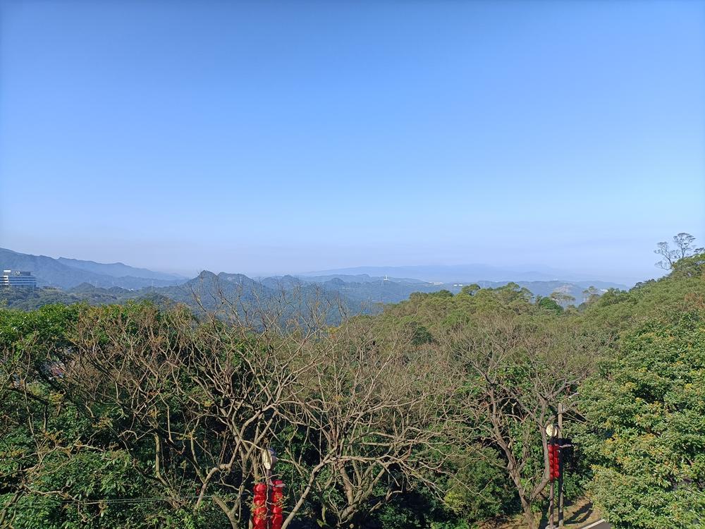 望向基隆山的脈稜,視線移向半山腰的青雲殿,