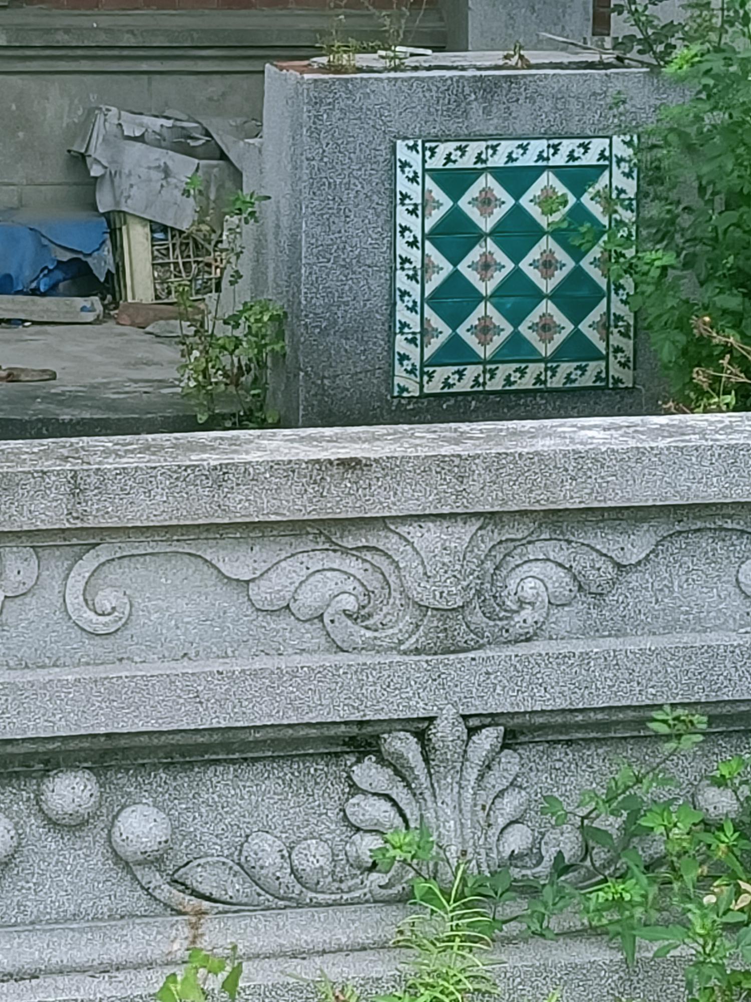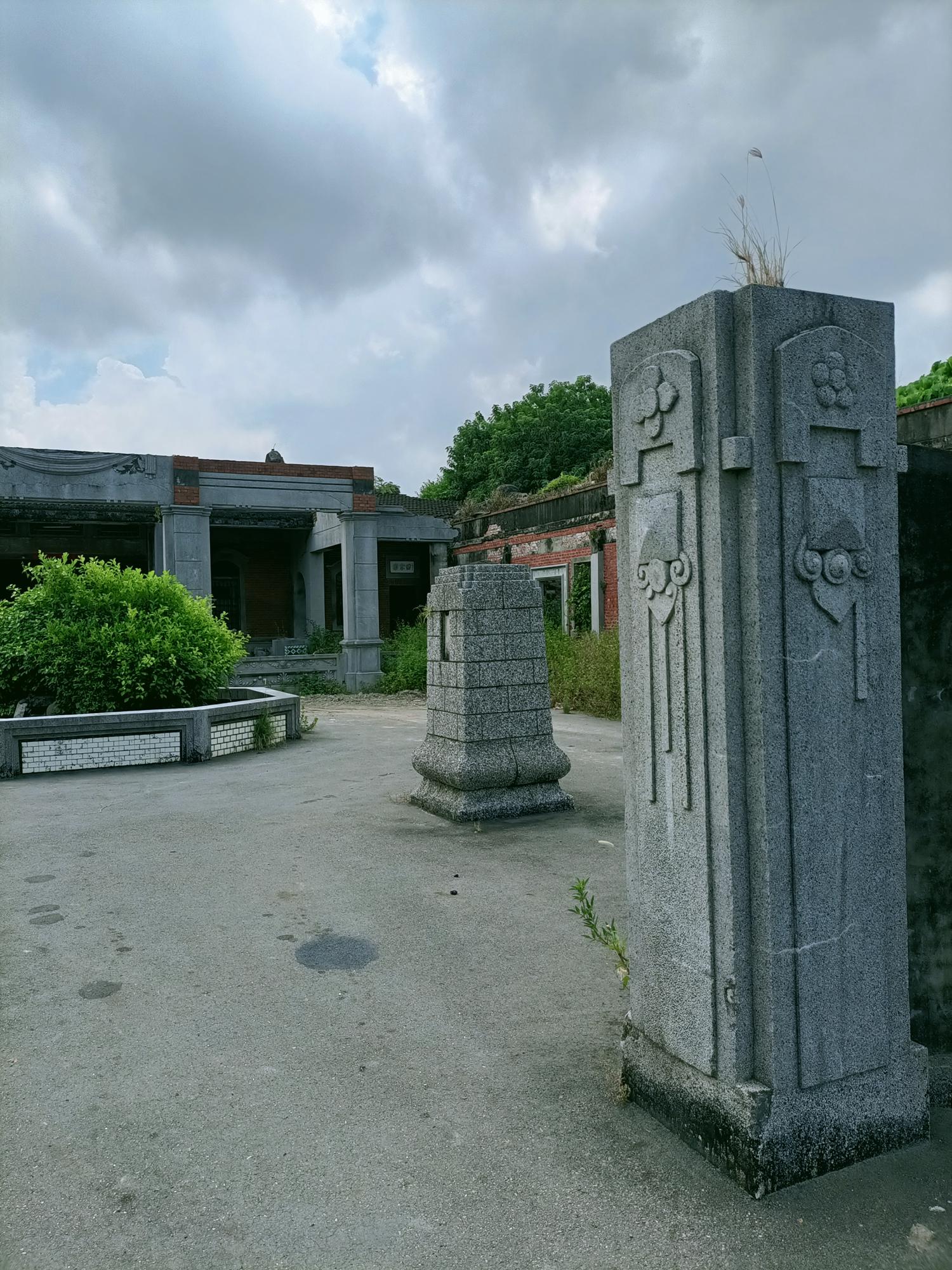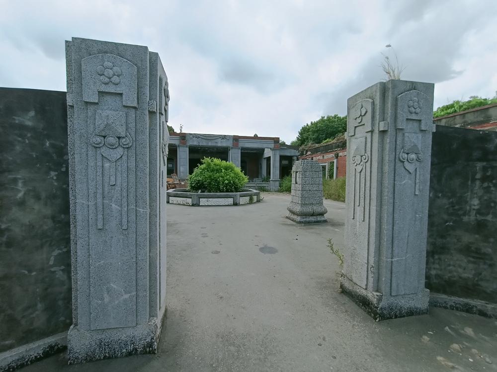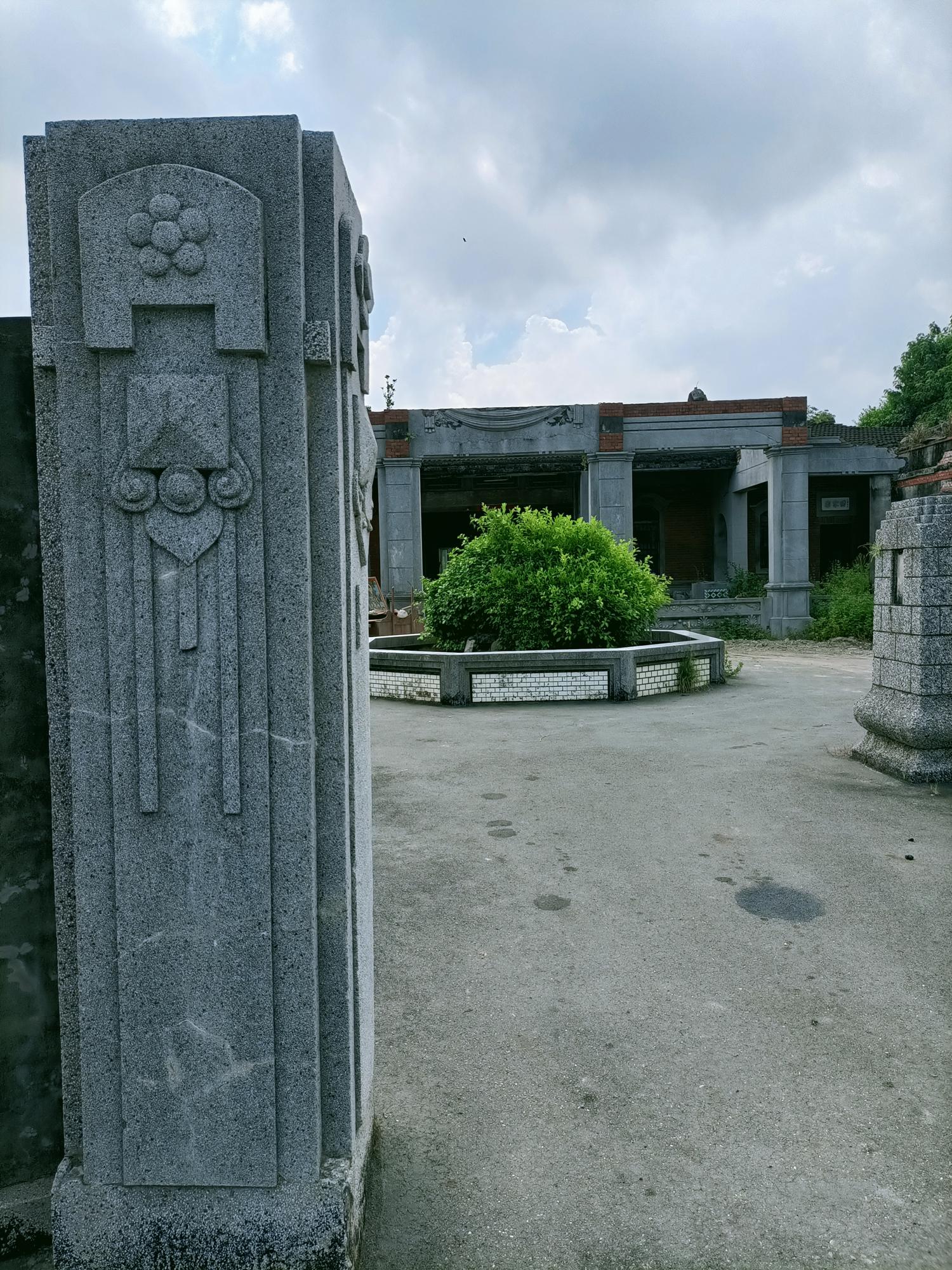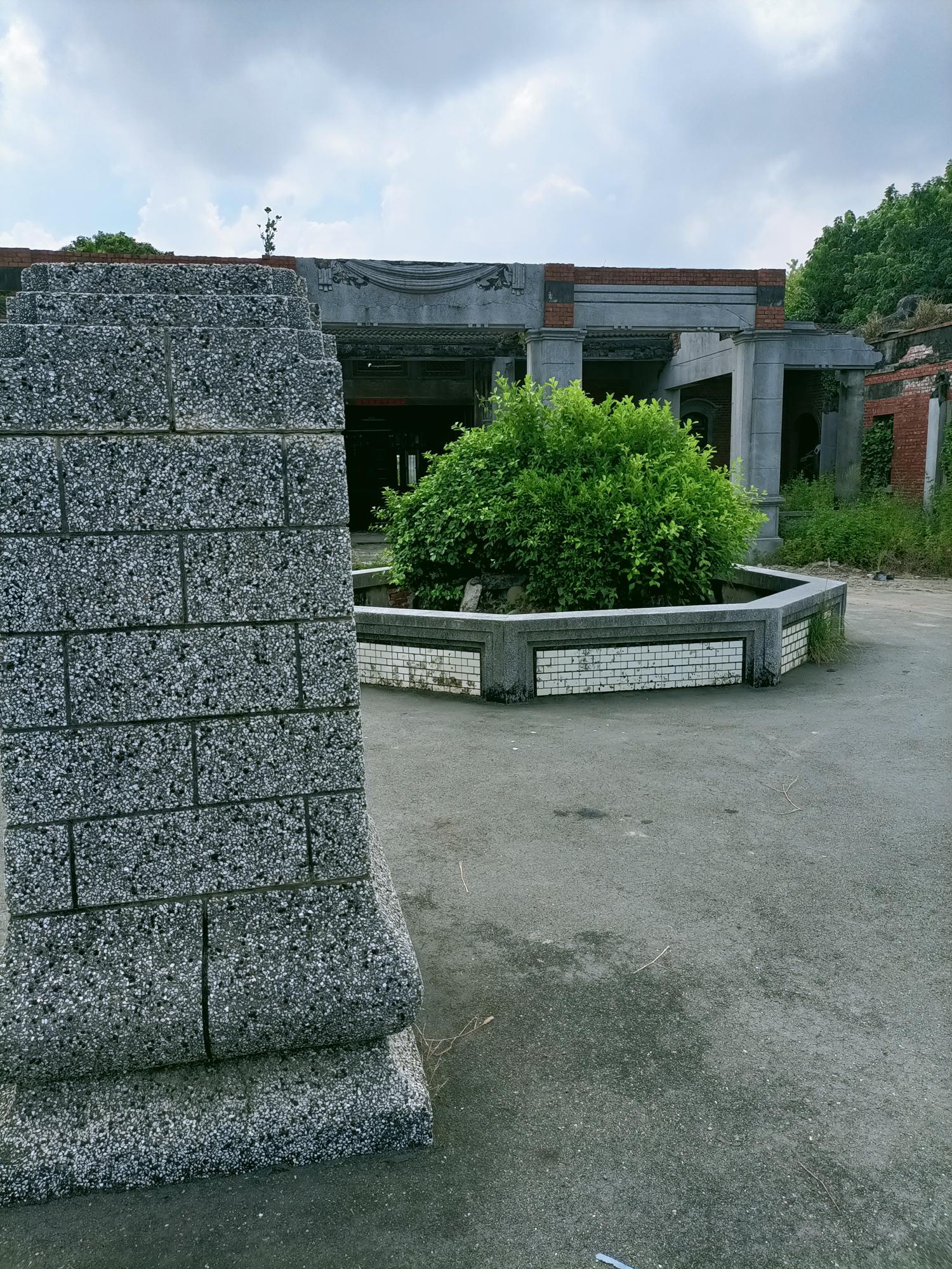 院埕內設置八角花台,院內前方有兩座銅像基座,