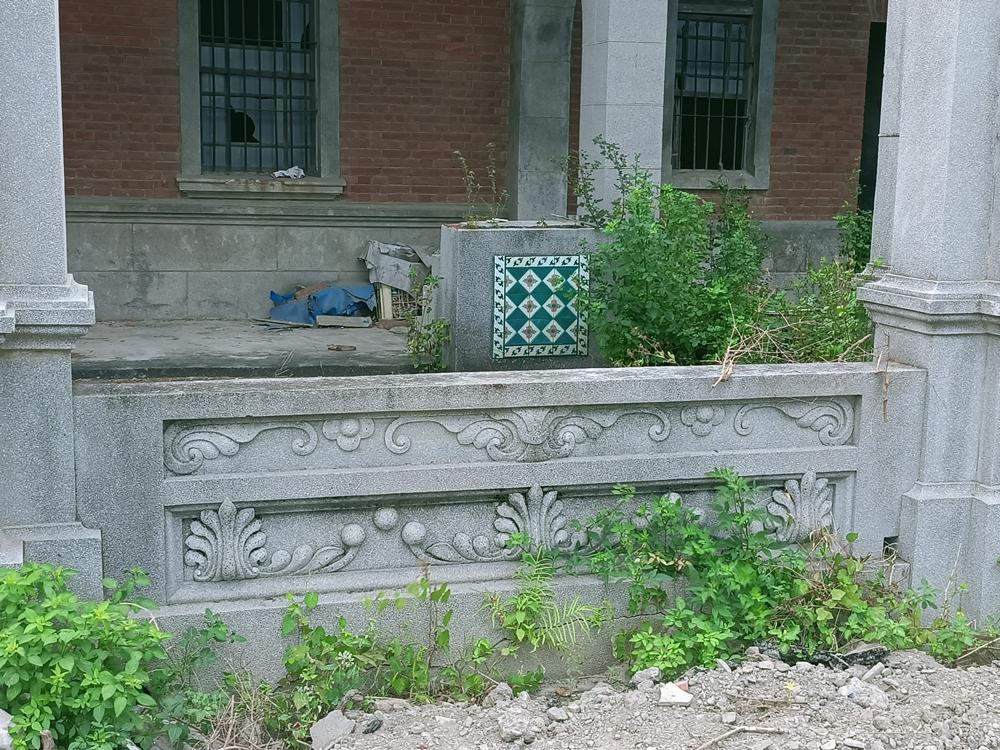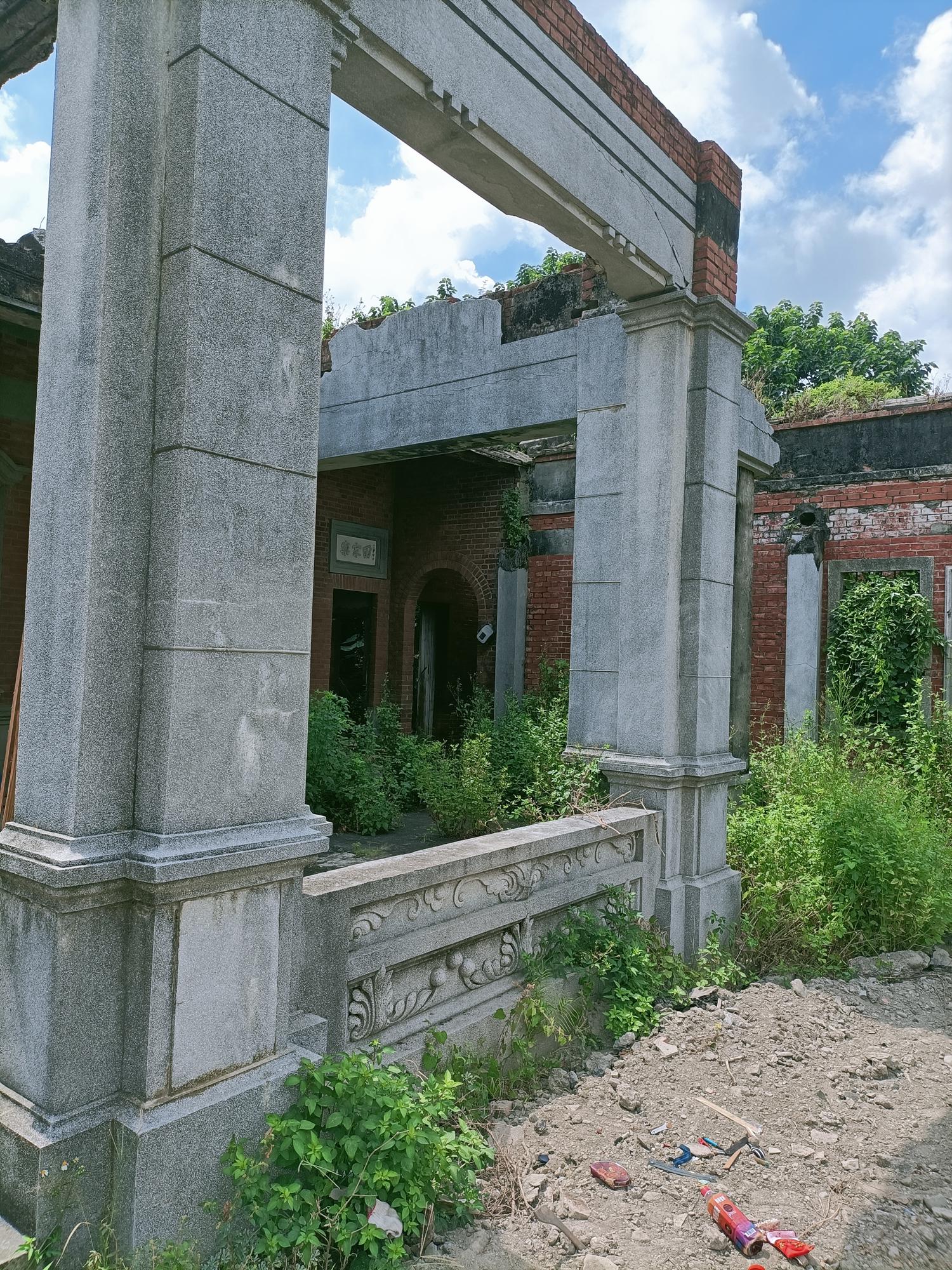 洋樓的橫樑、樓梯殘跡,據說日治末期,二次大戰洋樓影響日軍竹糖機場
