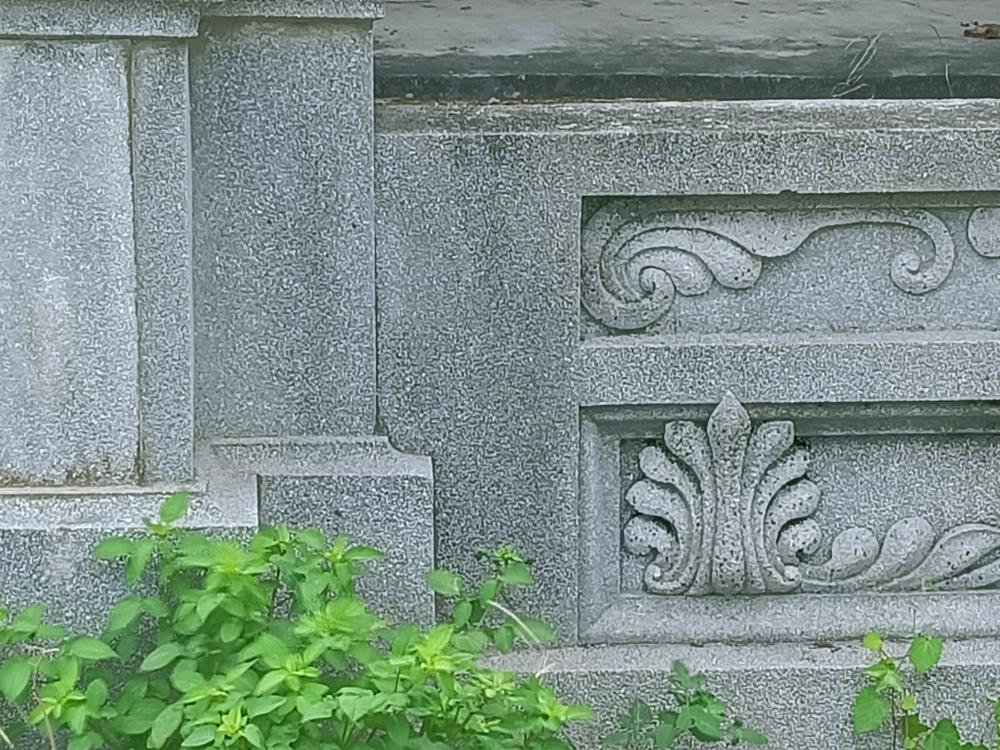 裝飾,柱頭仿科林斯柱式,簡化芼莨葉形式。柱身設長條橢圓溝槽,有強化