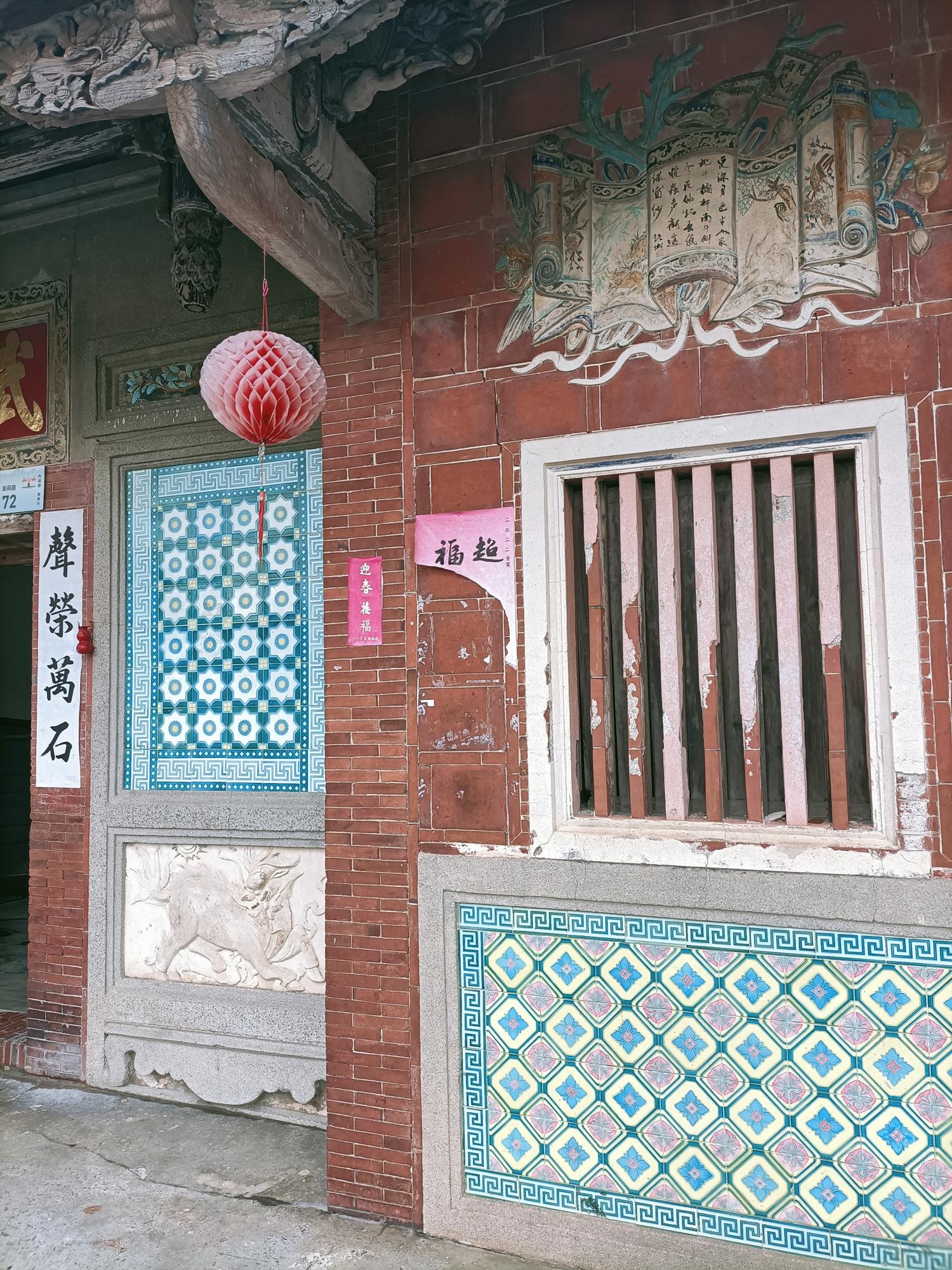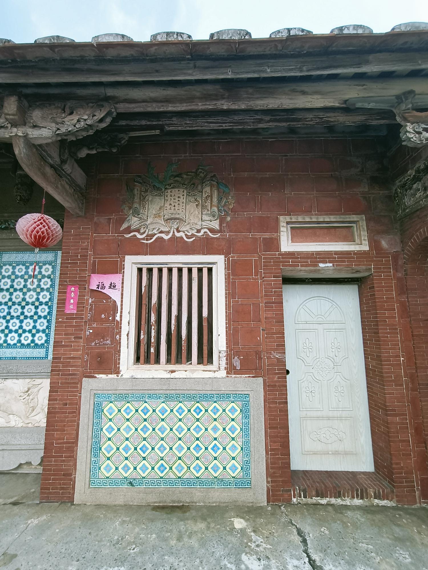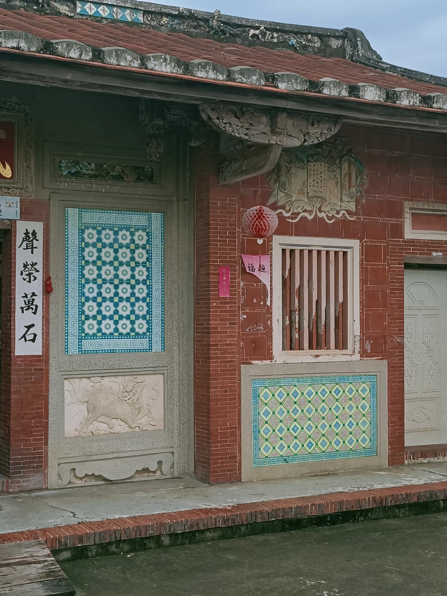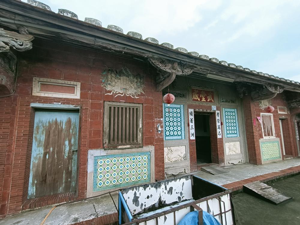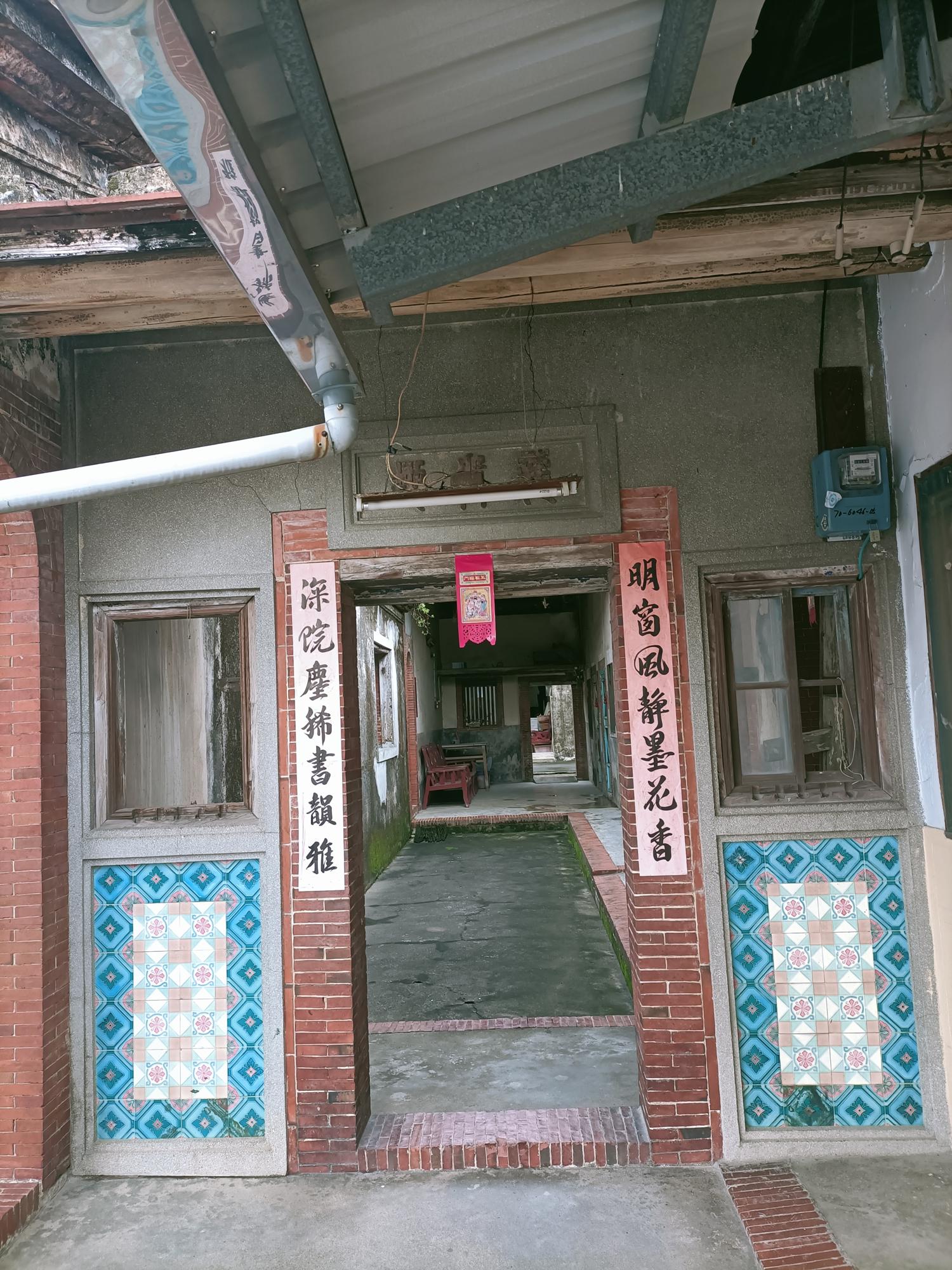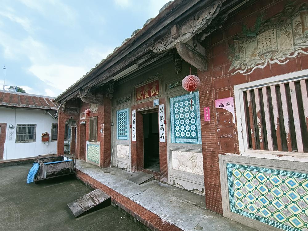 正身為三開間,第一進設計短簷步道廊,屋脊以花磚及剪黏
