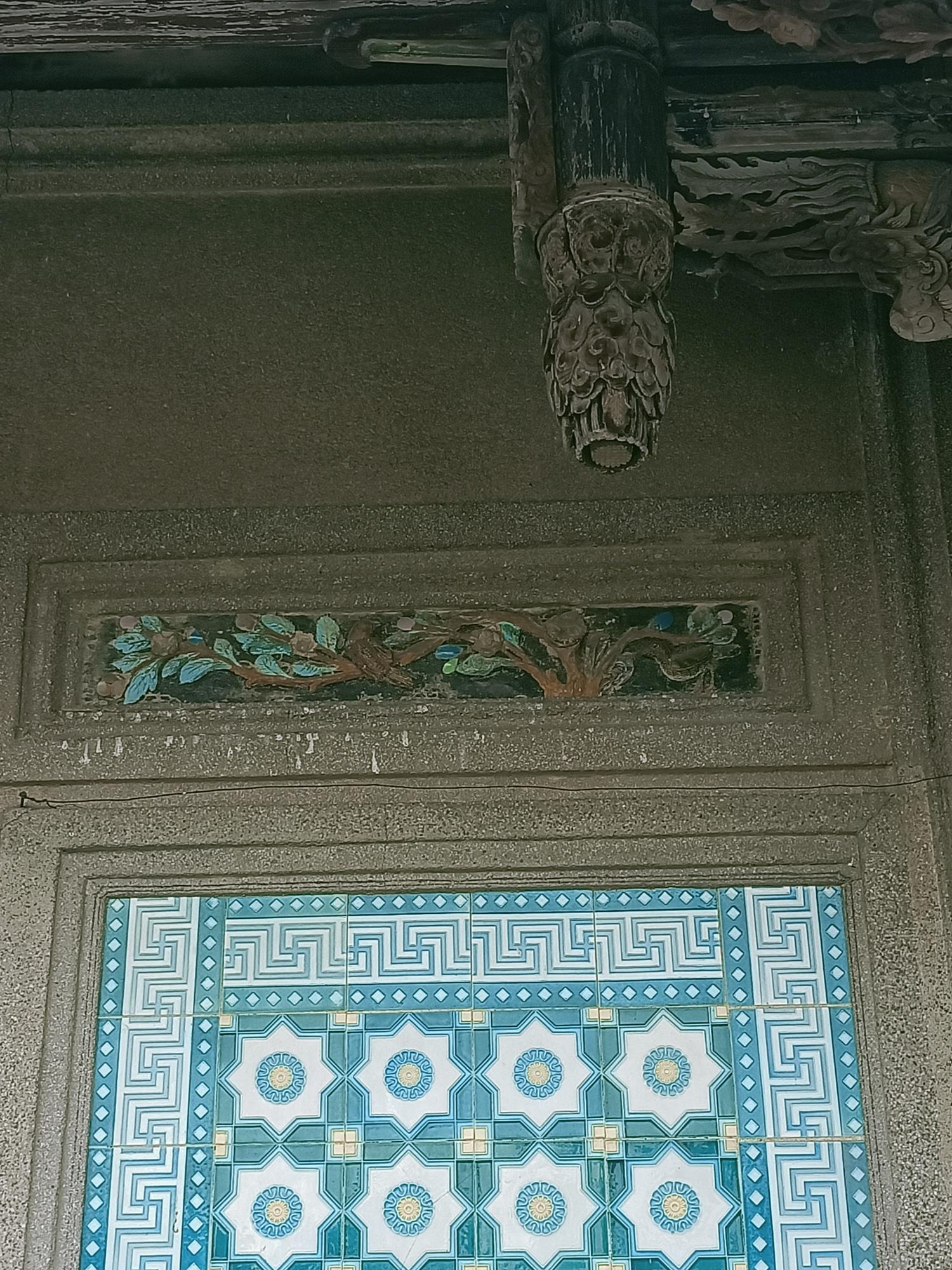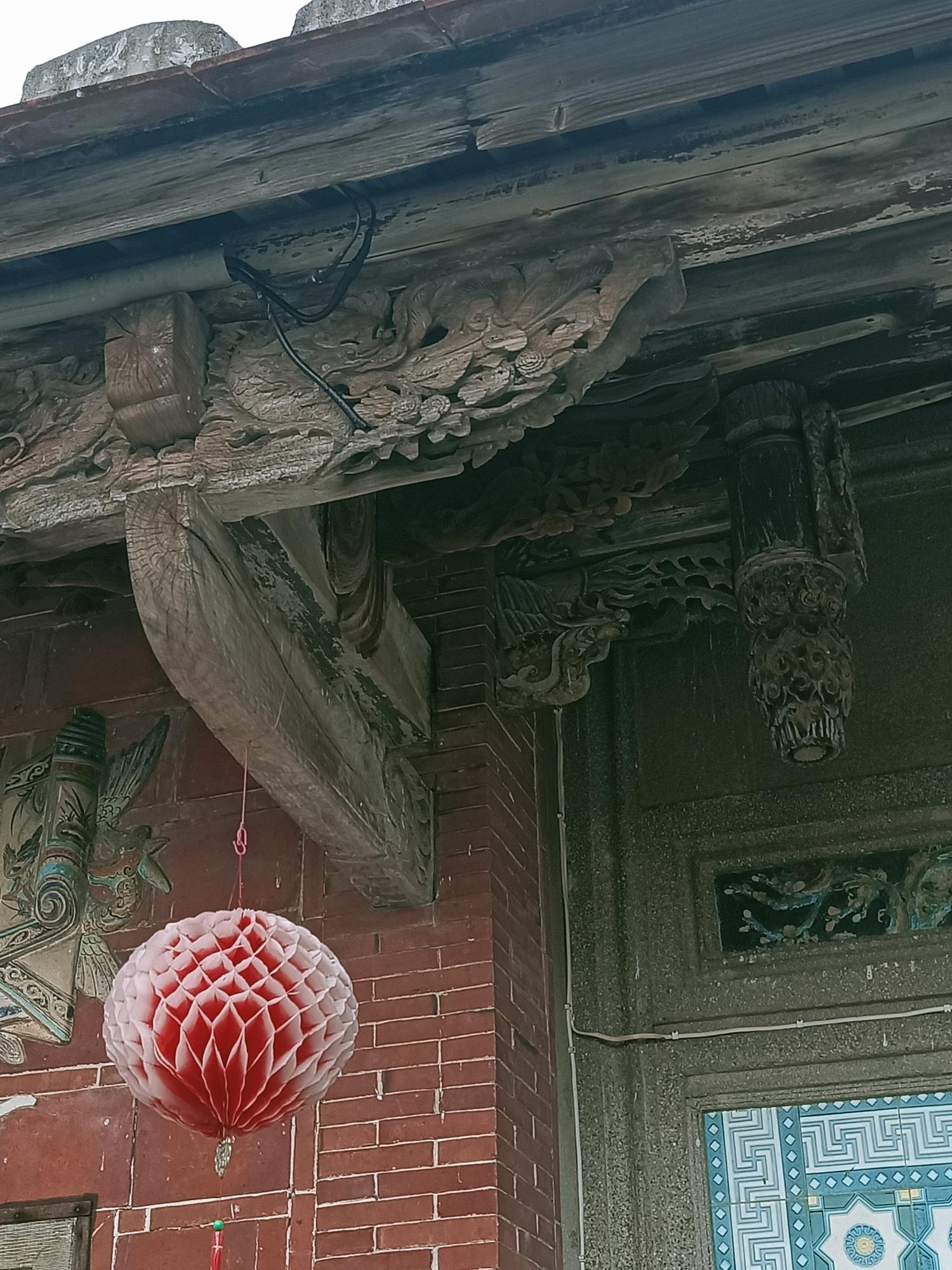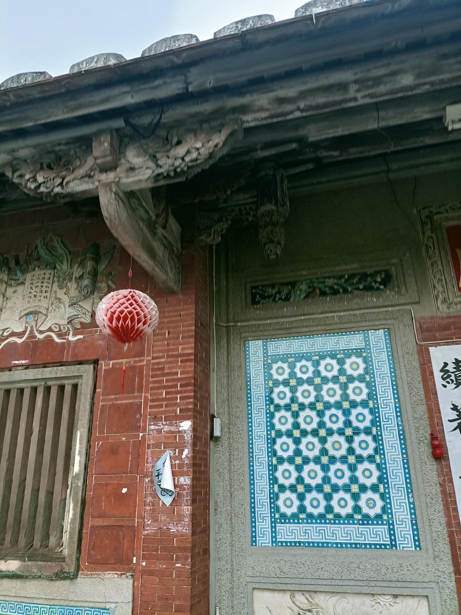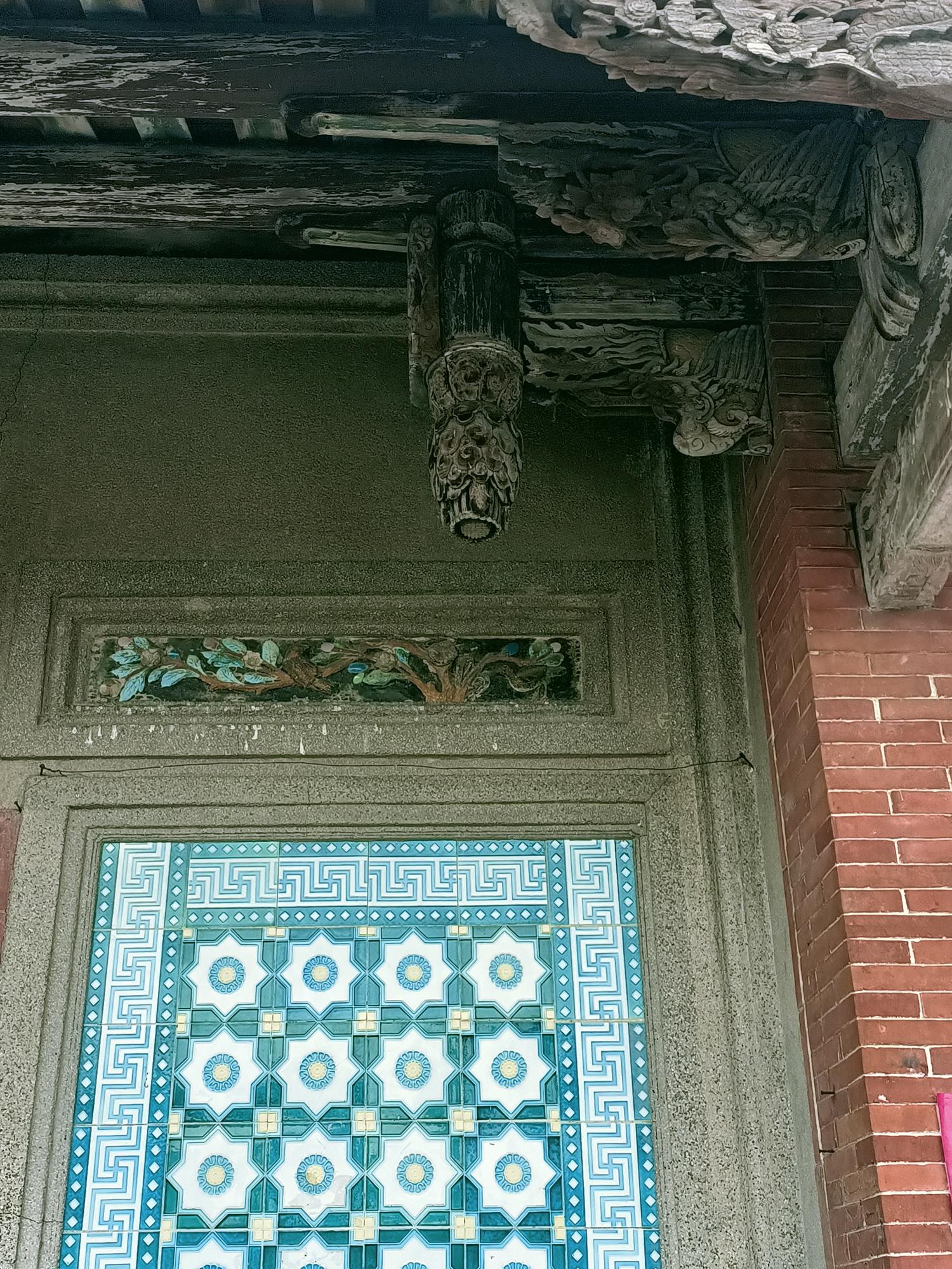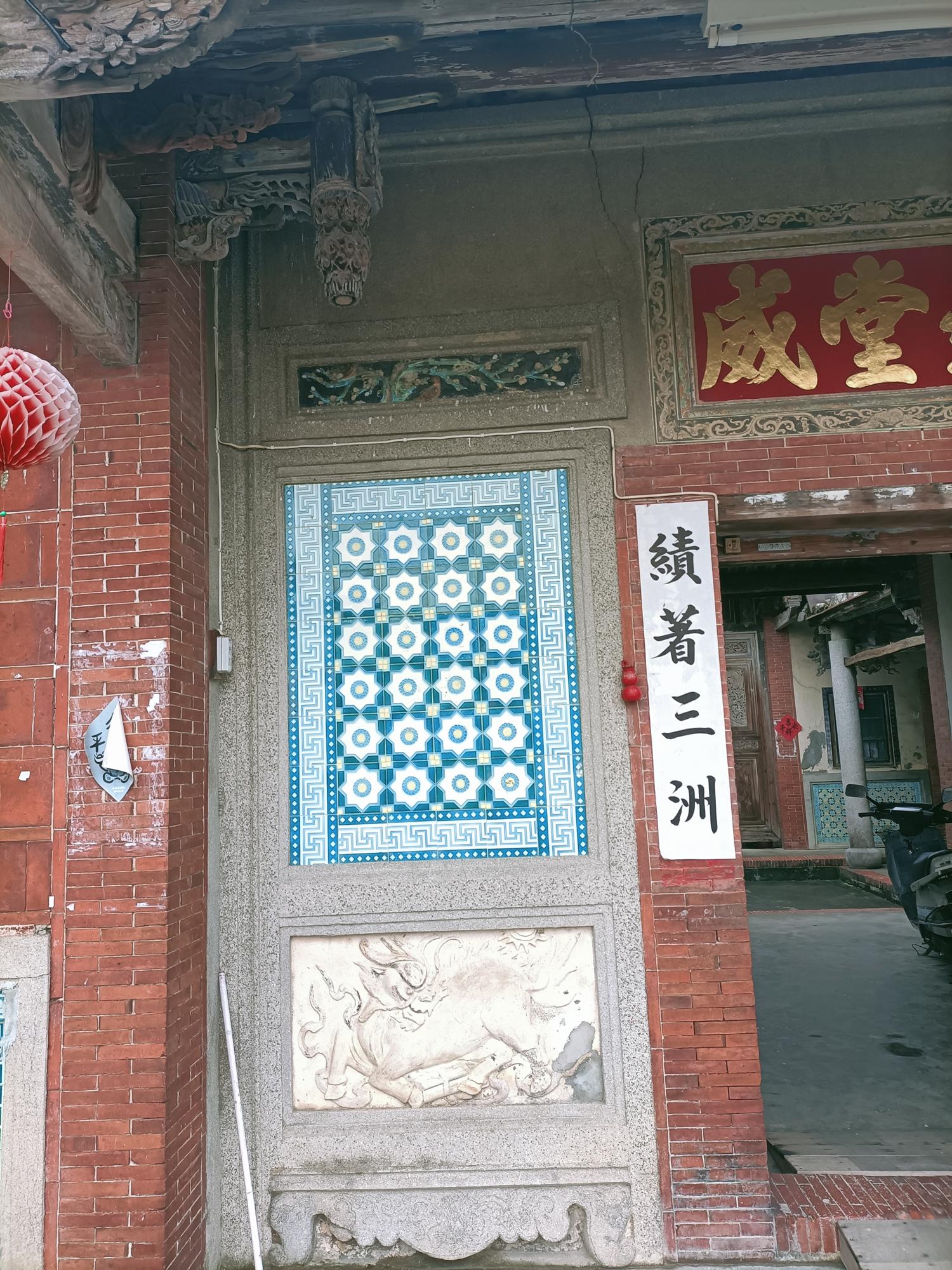 正身為三開間,第一進設計短簷步道廊,屋脊以花磚及剪黏