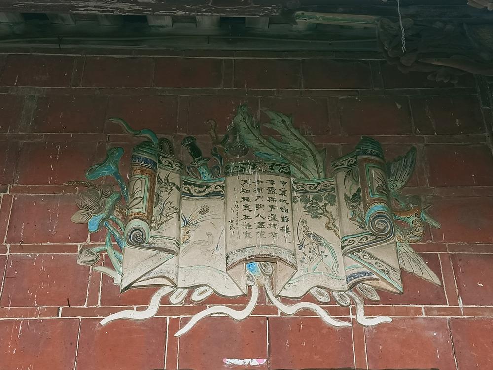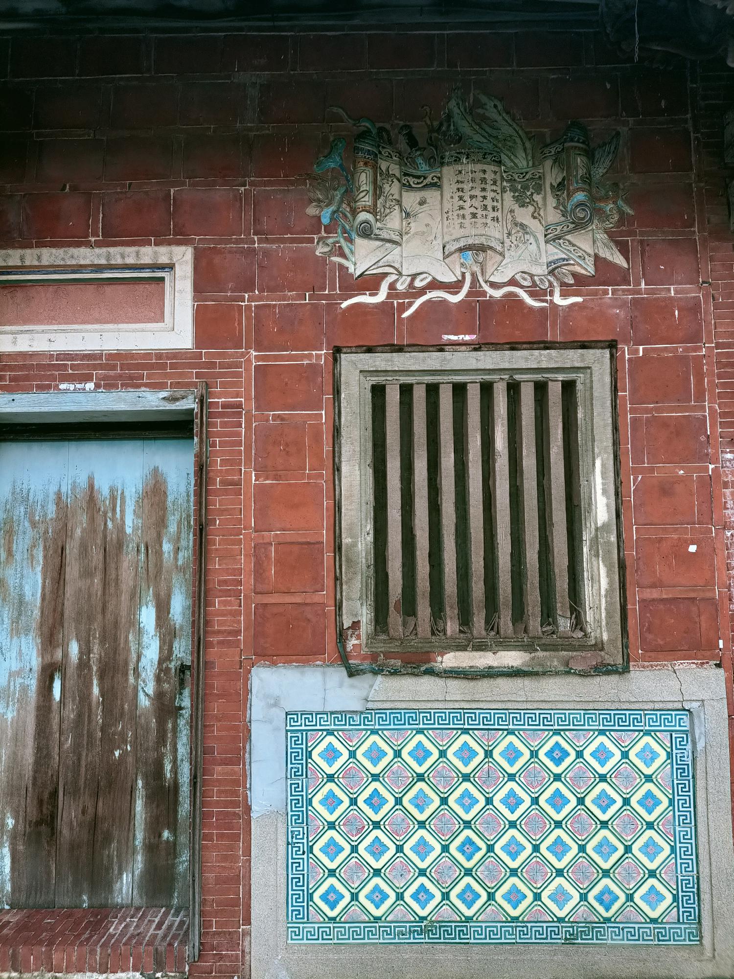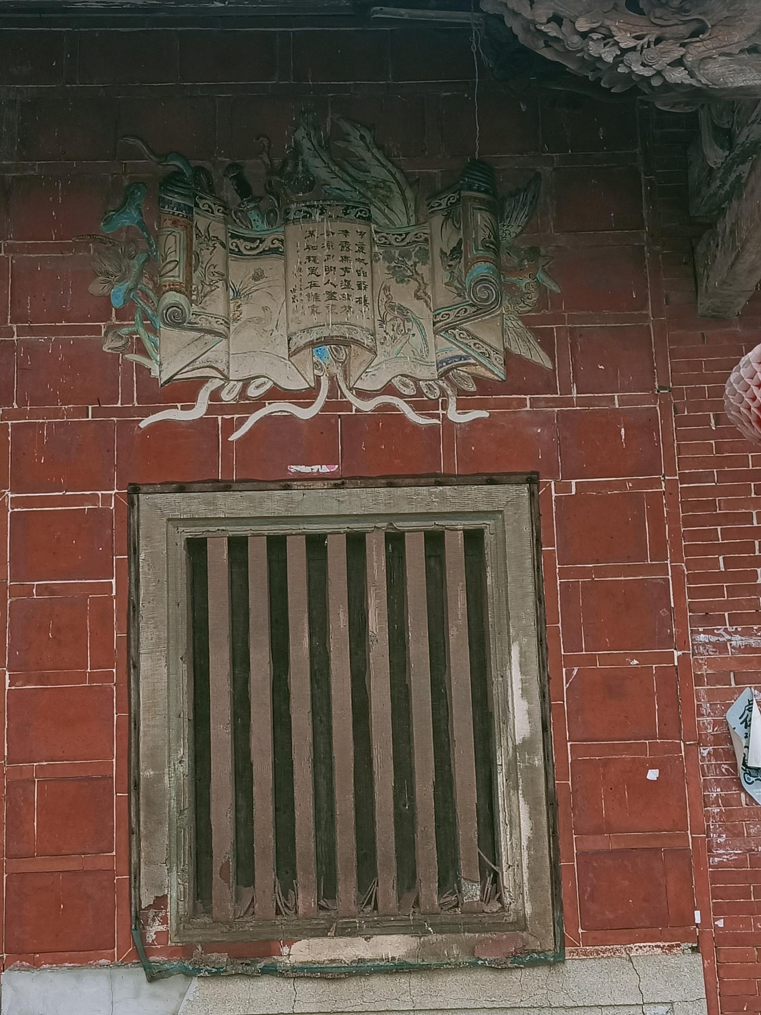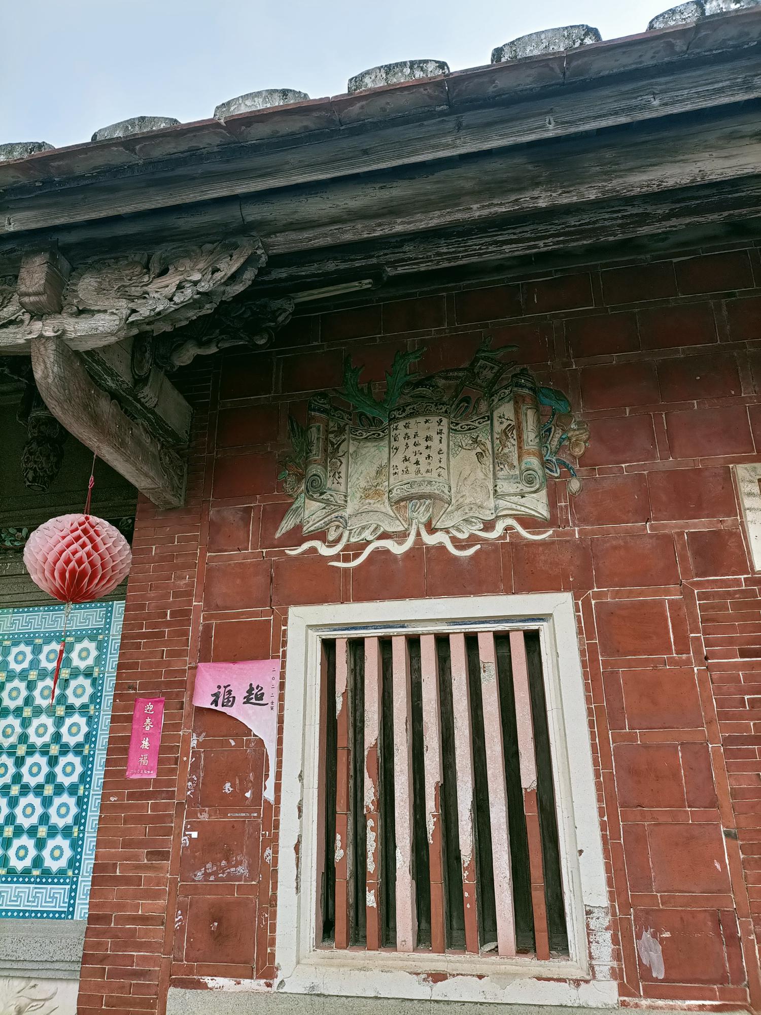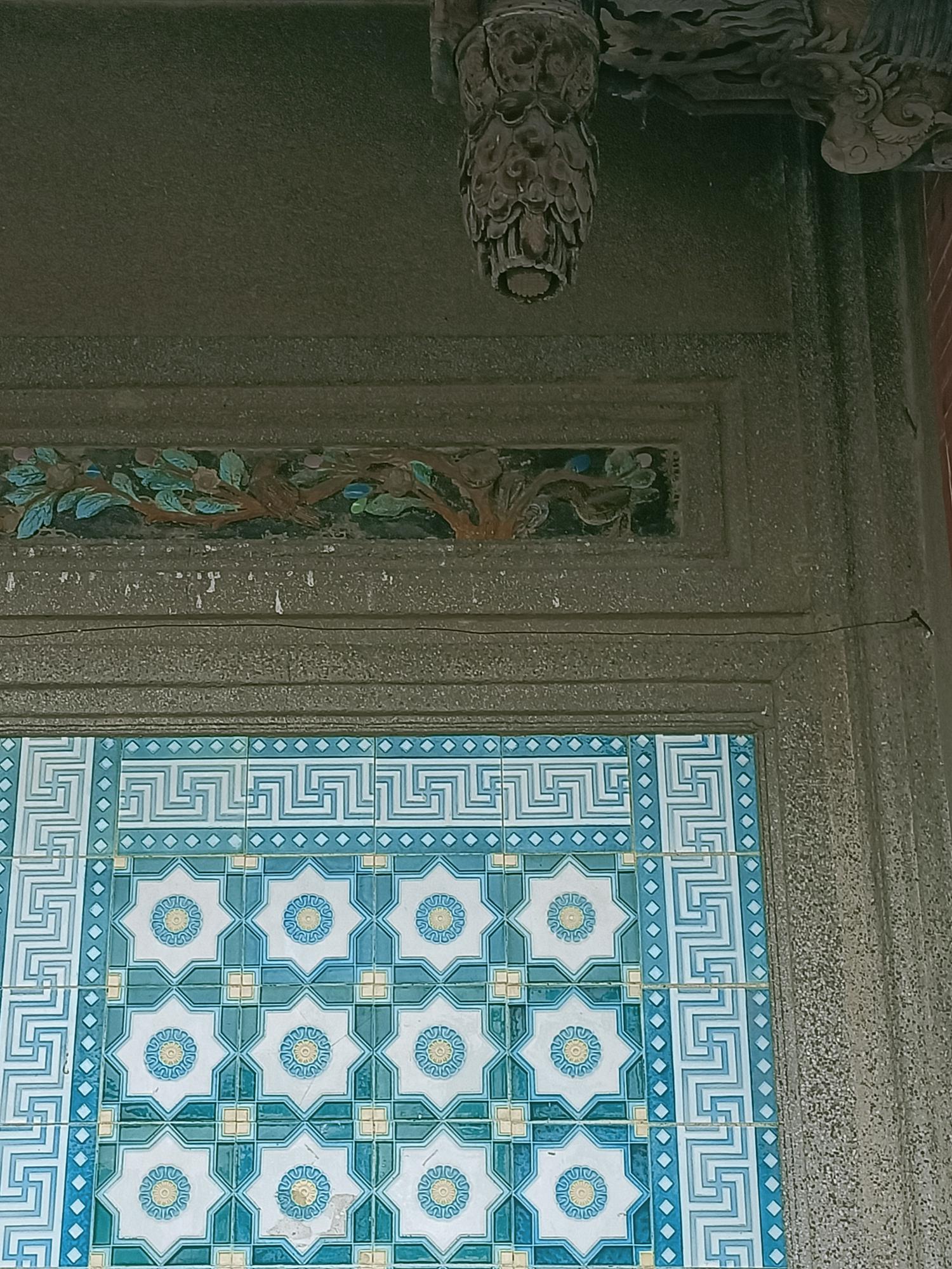 正身為三開間,第一進設計短簷步道廊,屋脊以花磚及剪黏