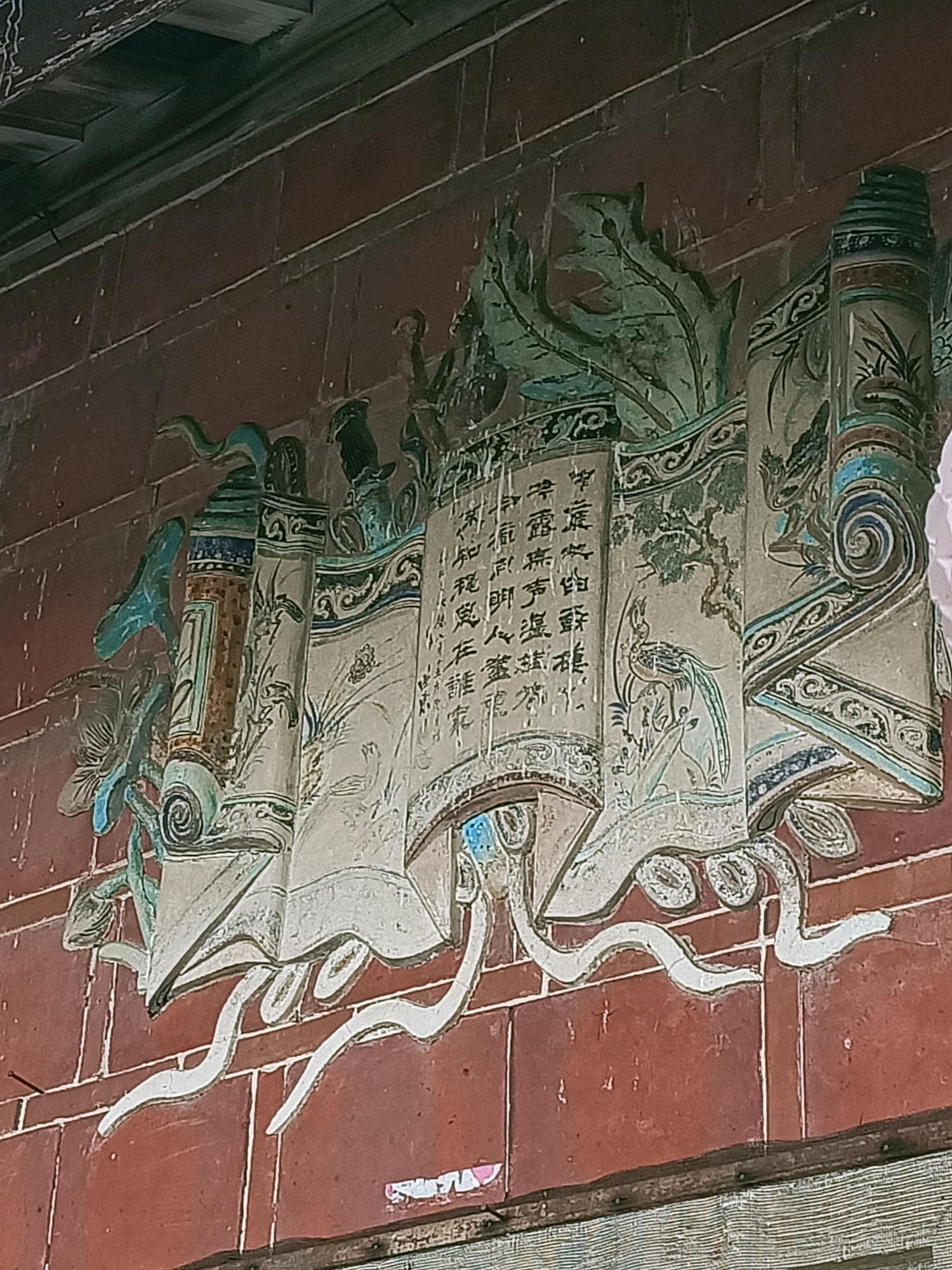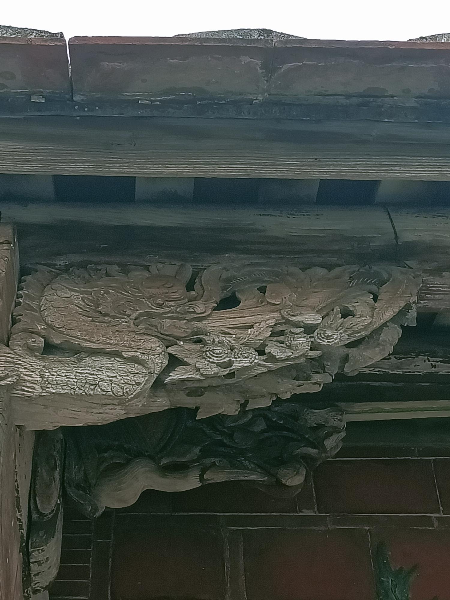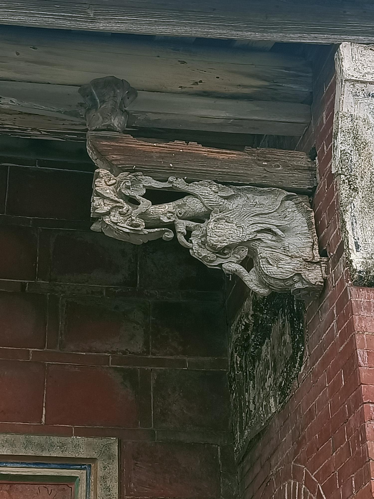 內埕屋簷仍保留有鰲魚剪黏落水口。