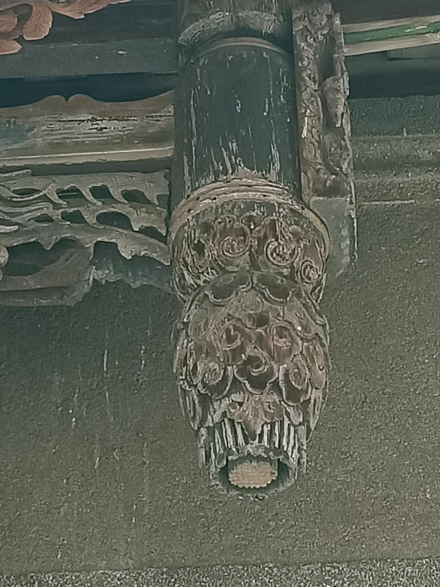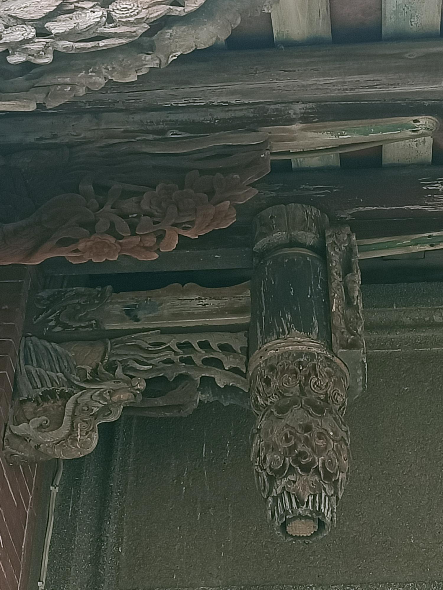裝飾,屋頂下方以精緻木構件支撐,