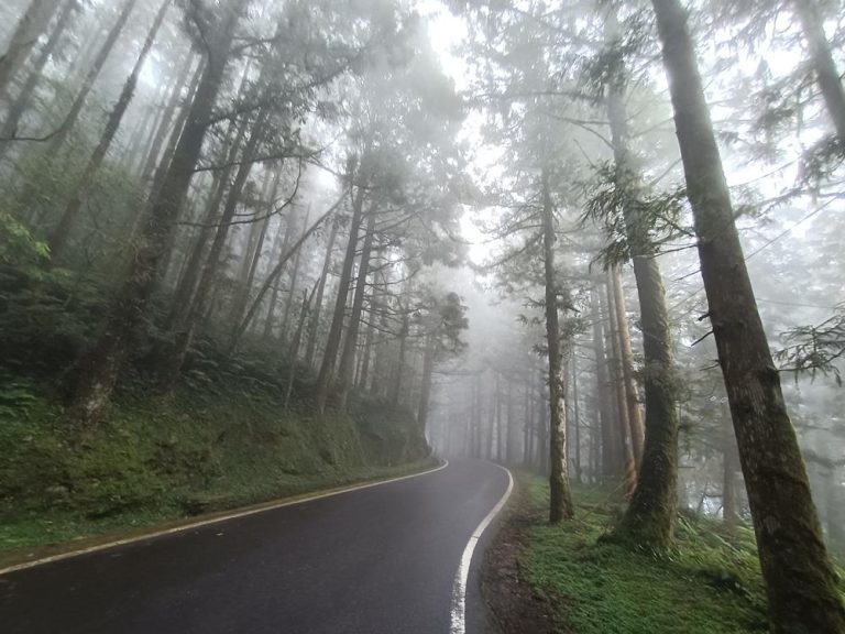 該路段人造柳杉木高聳蜓菝,沿著蜿蜒的7線而行,
