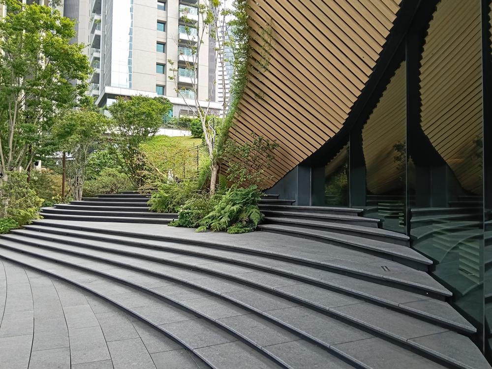 建築弧度尾端並非突兀內收,而是順暢地被轉化成階梯,