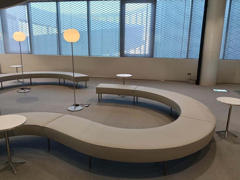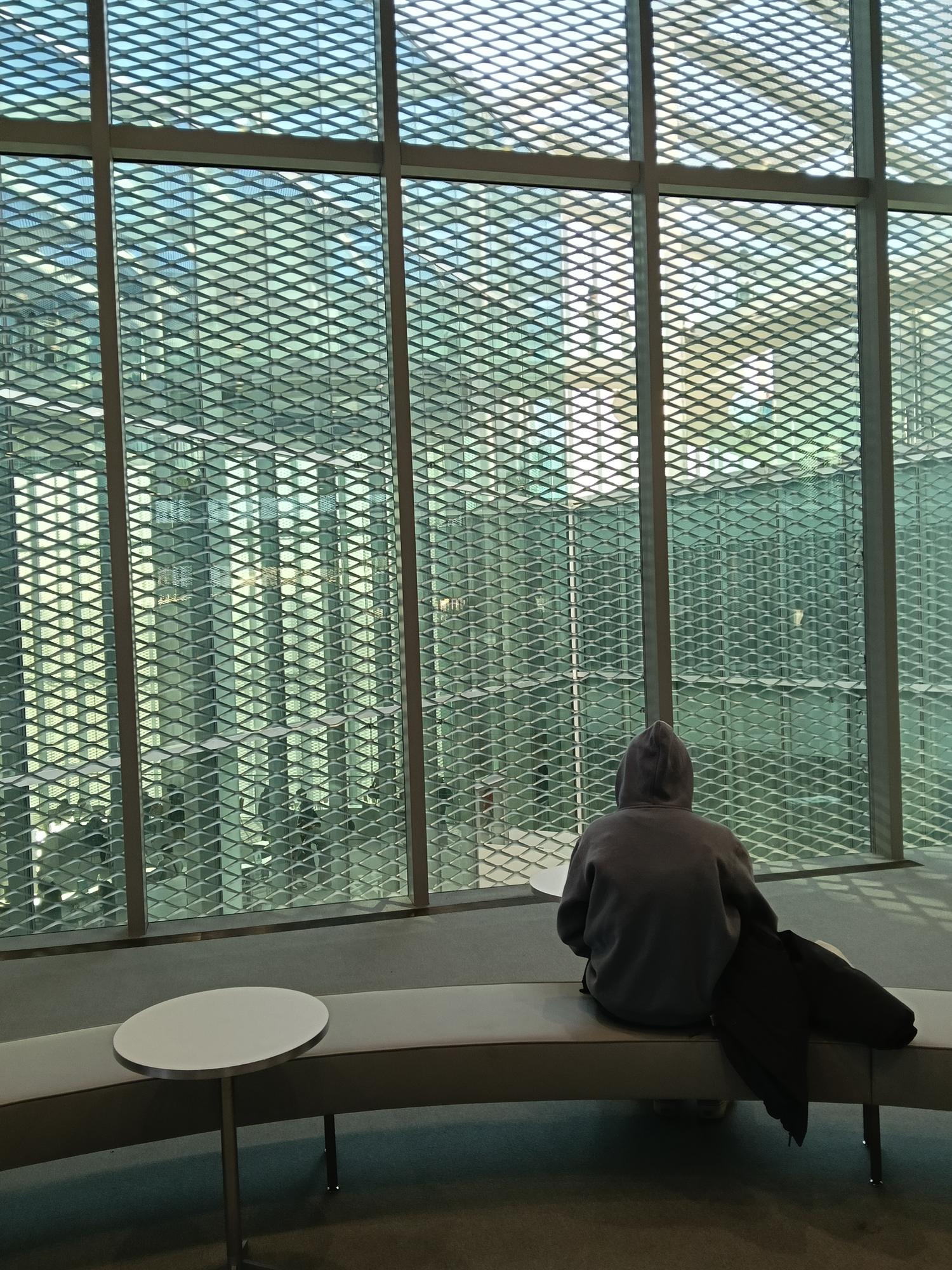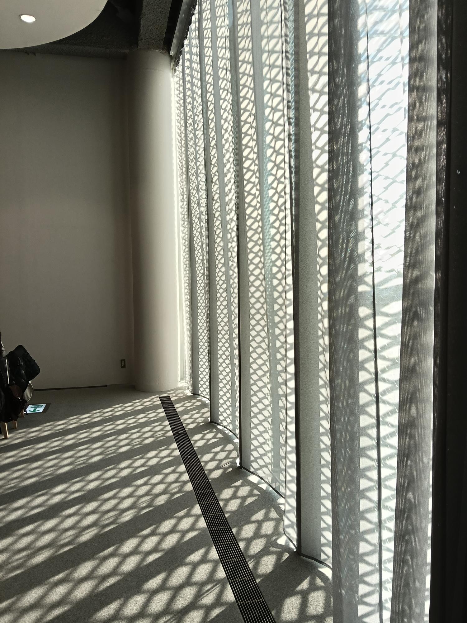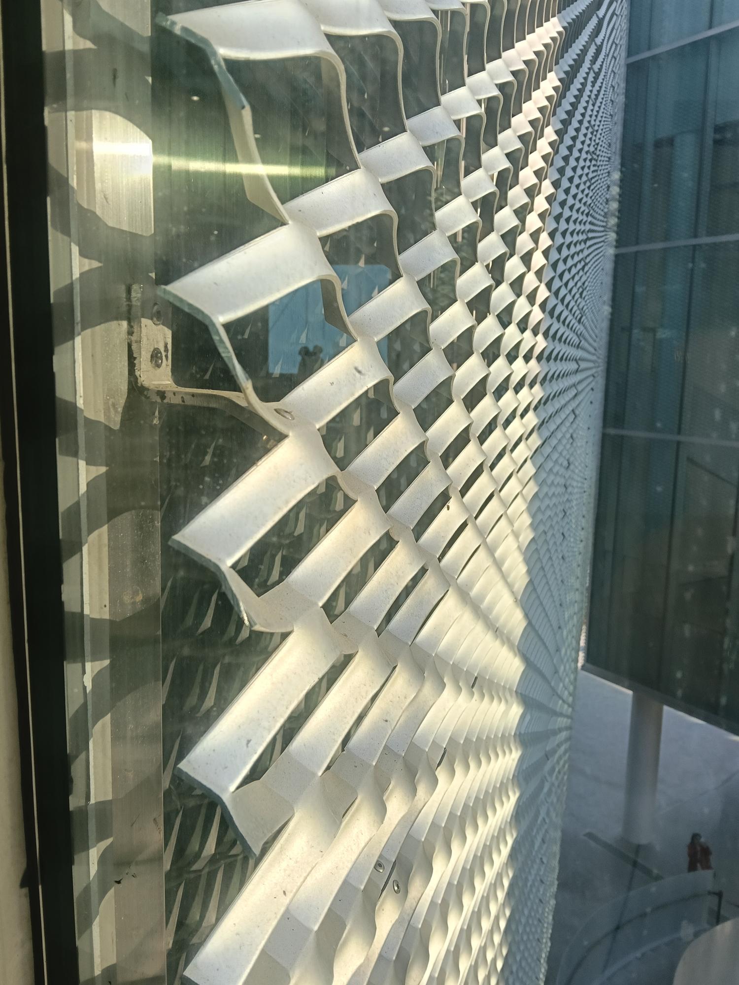 再以銀白鋁製擴張網覆蓋,宛如輕盈的薄紗映照周邊景致,