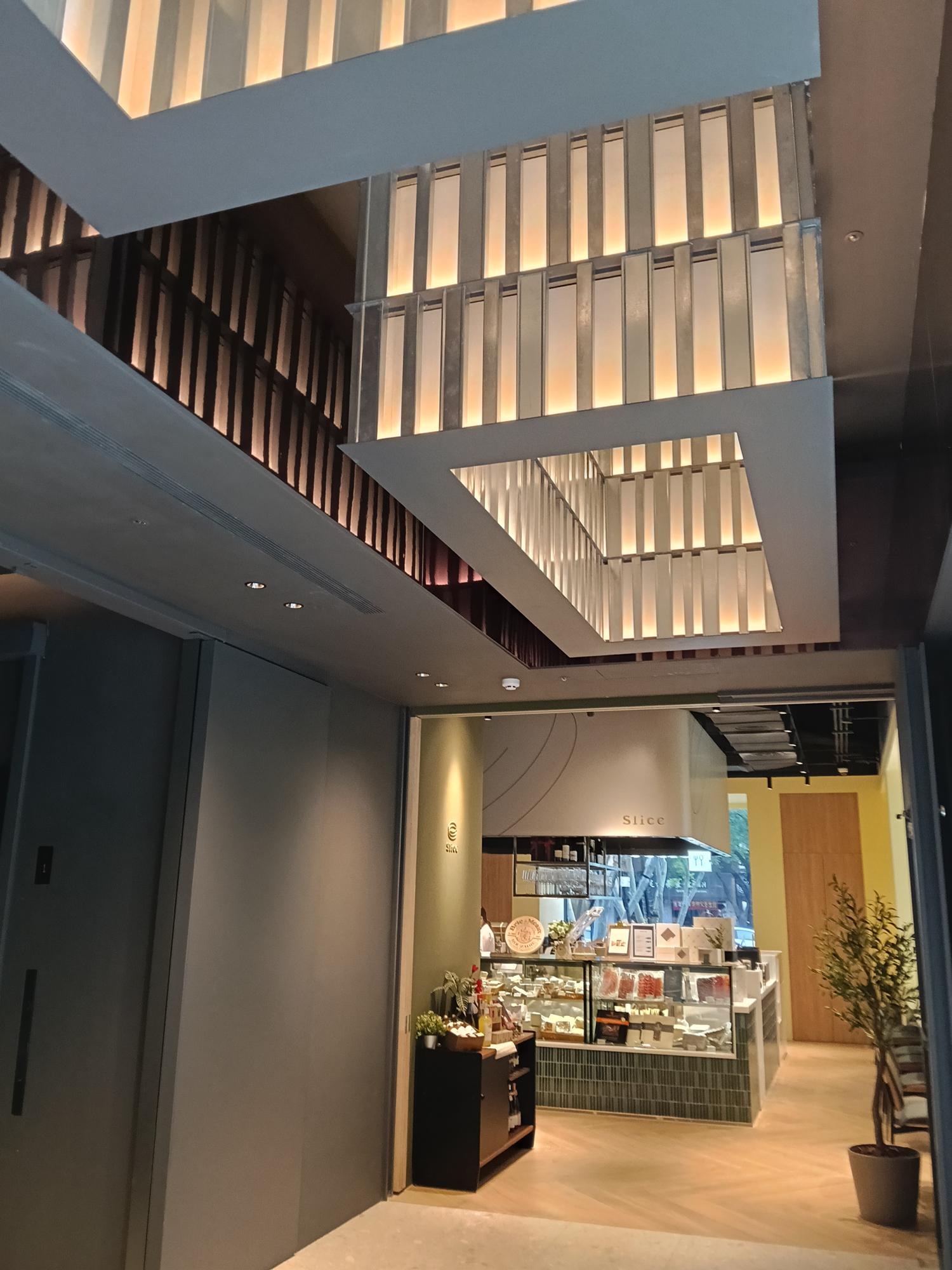 一樓的挑高門廳,利用連續性設計與反射效果模擬