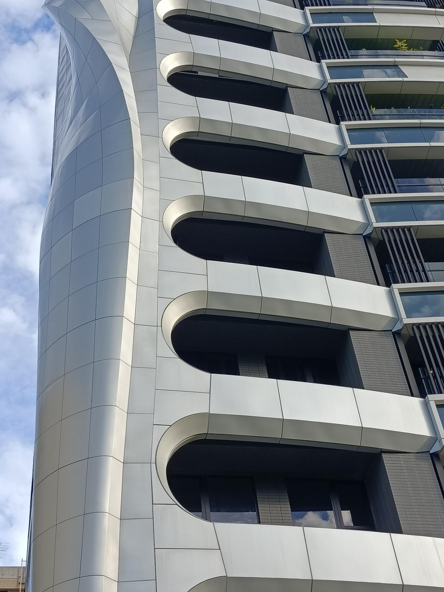 金屬螺旋外飾總計由15個單元、615片大片曲面金屬組成,