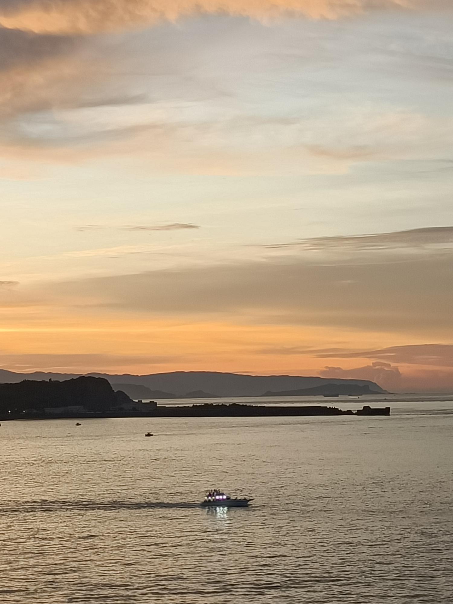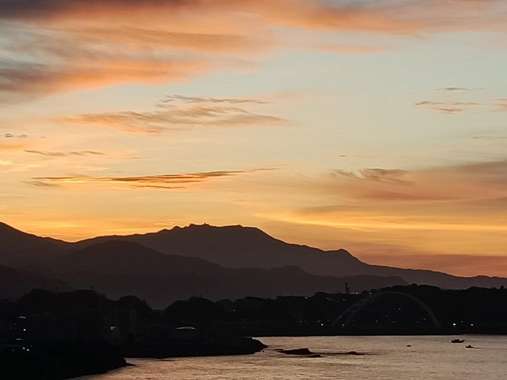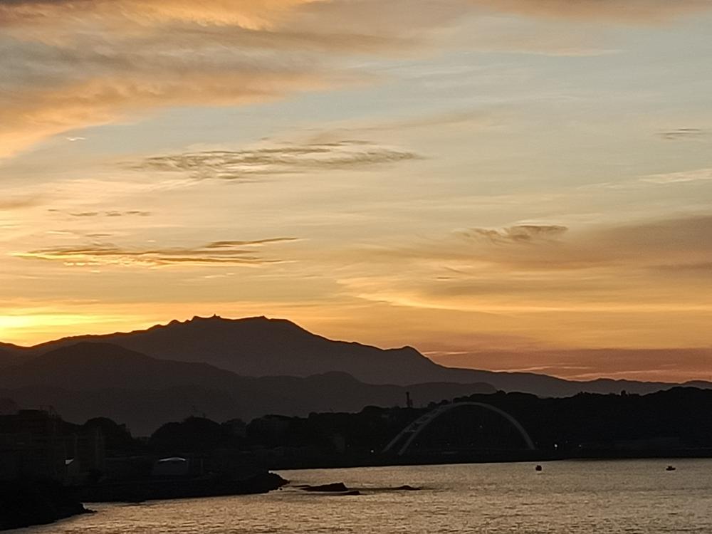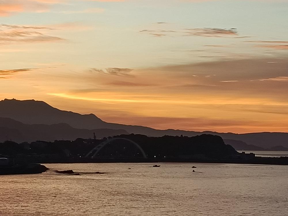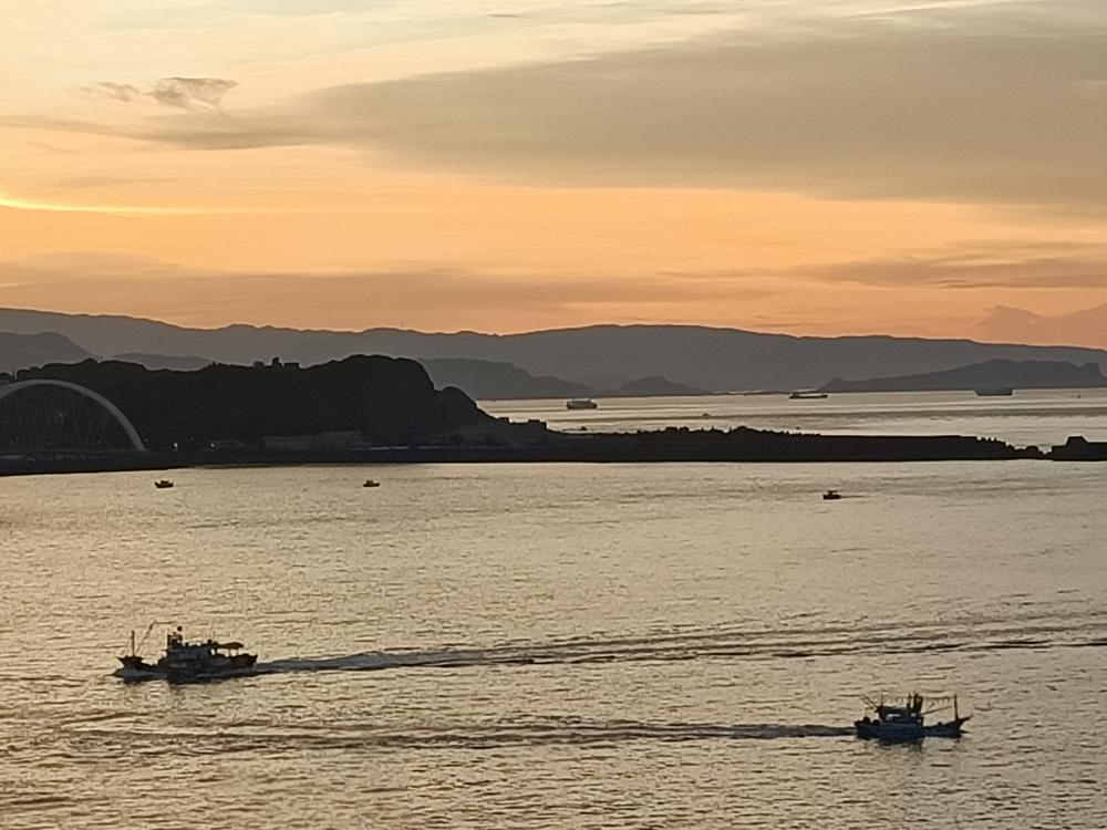 入夜後,海面點點漁火與濱海公路的燈火相輝映,