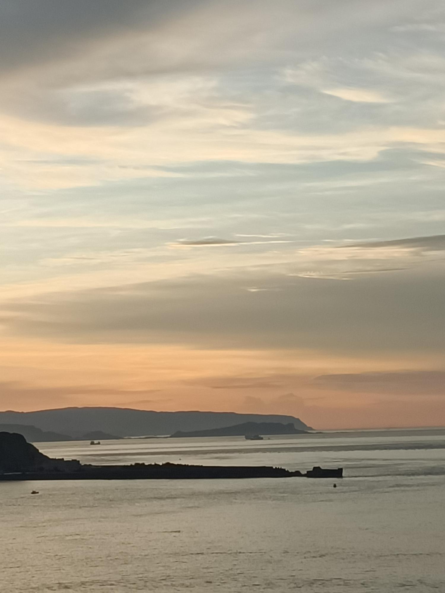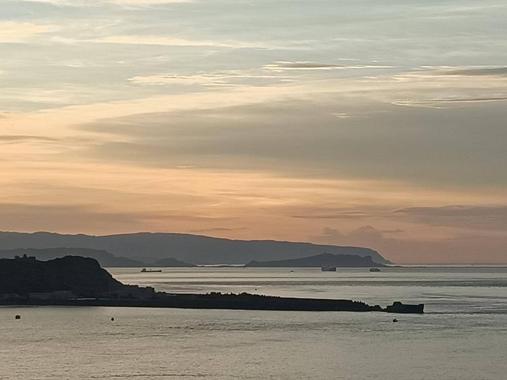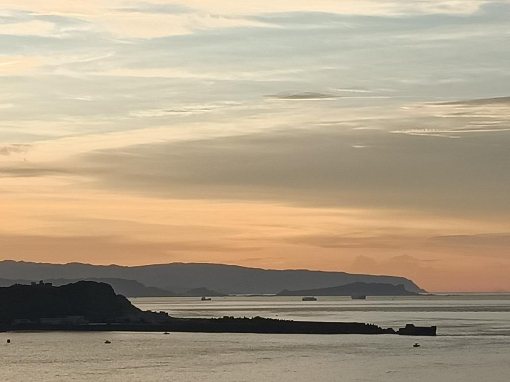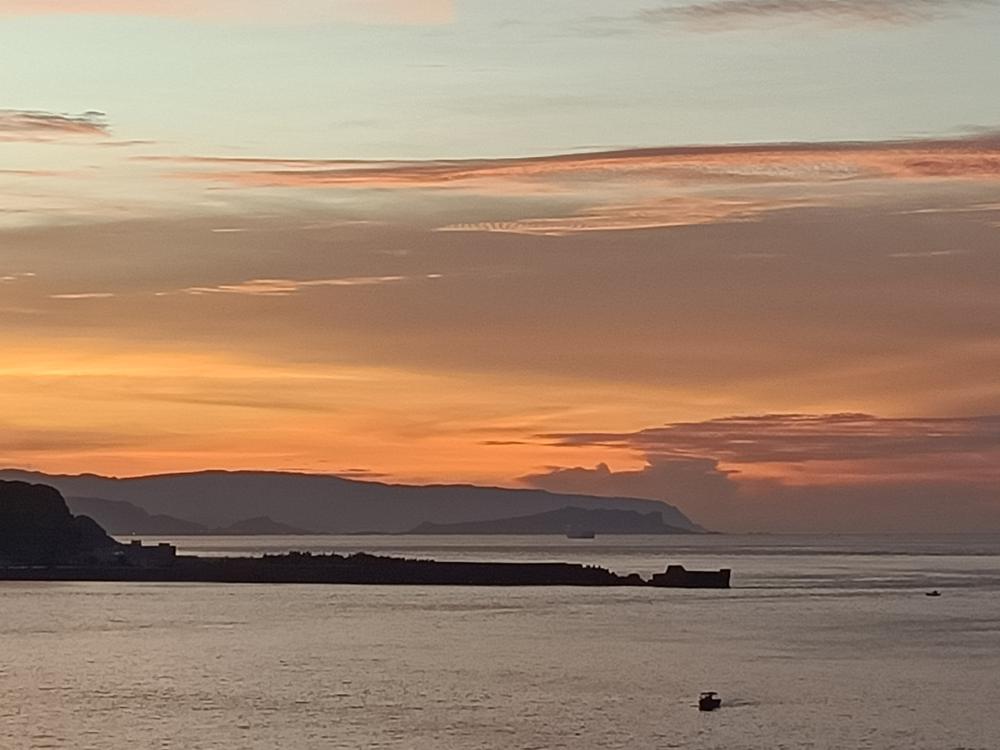 入夜後,海面點點漁火與濱海公路的燈火相輝映,