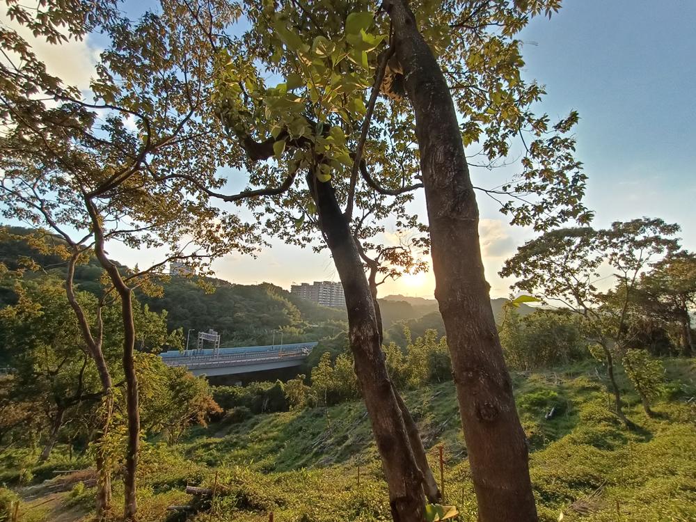 右側一處山坡,可以縱觀快速道路從腳下通過一路滑向三沙灣,