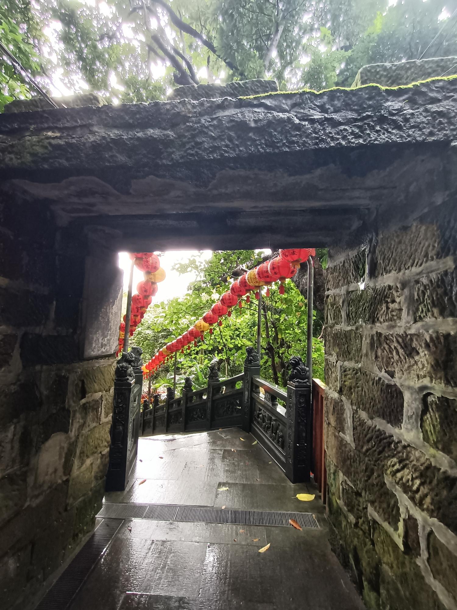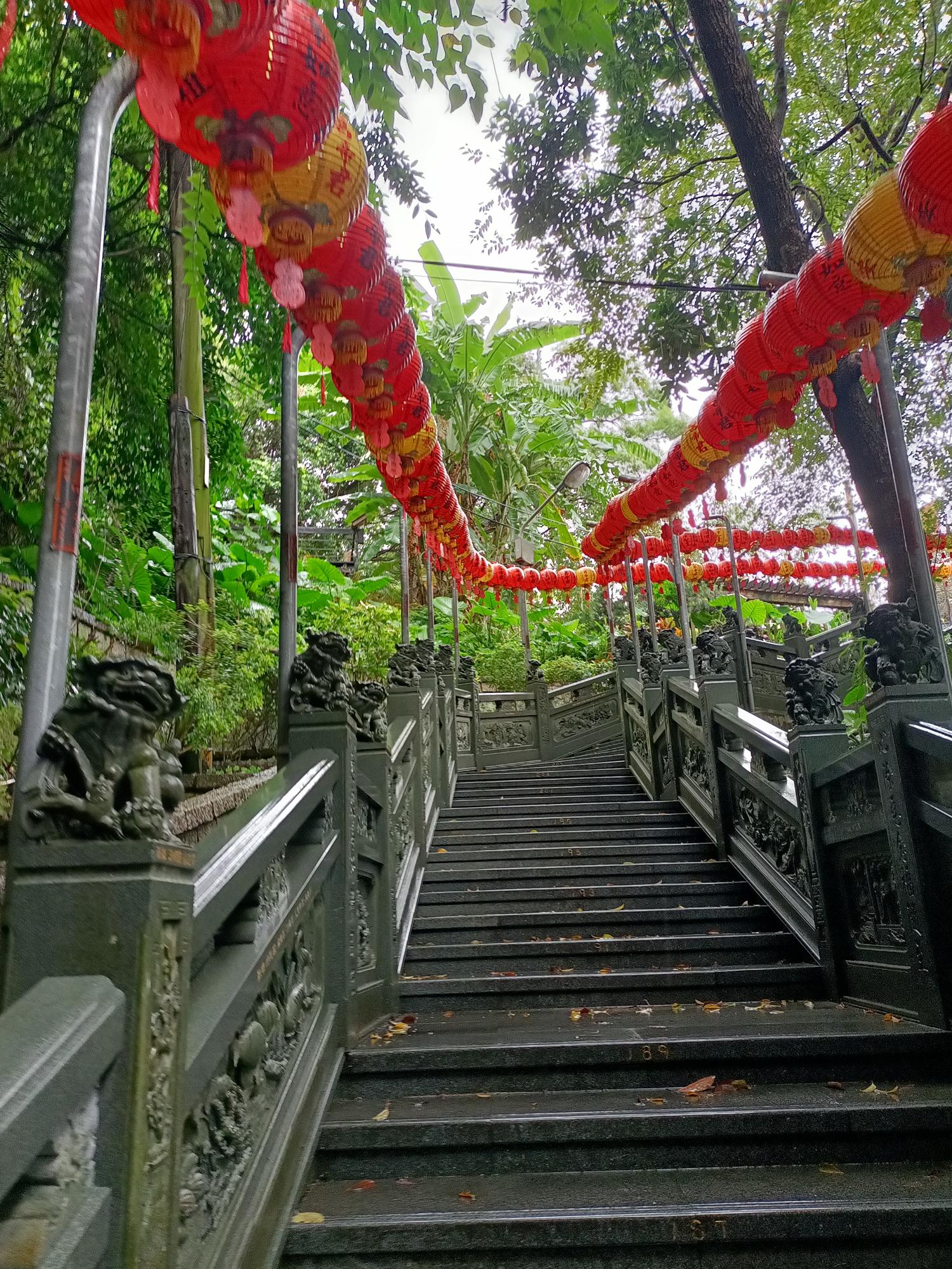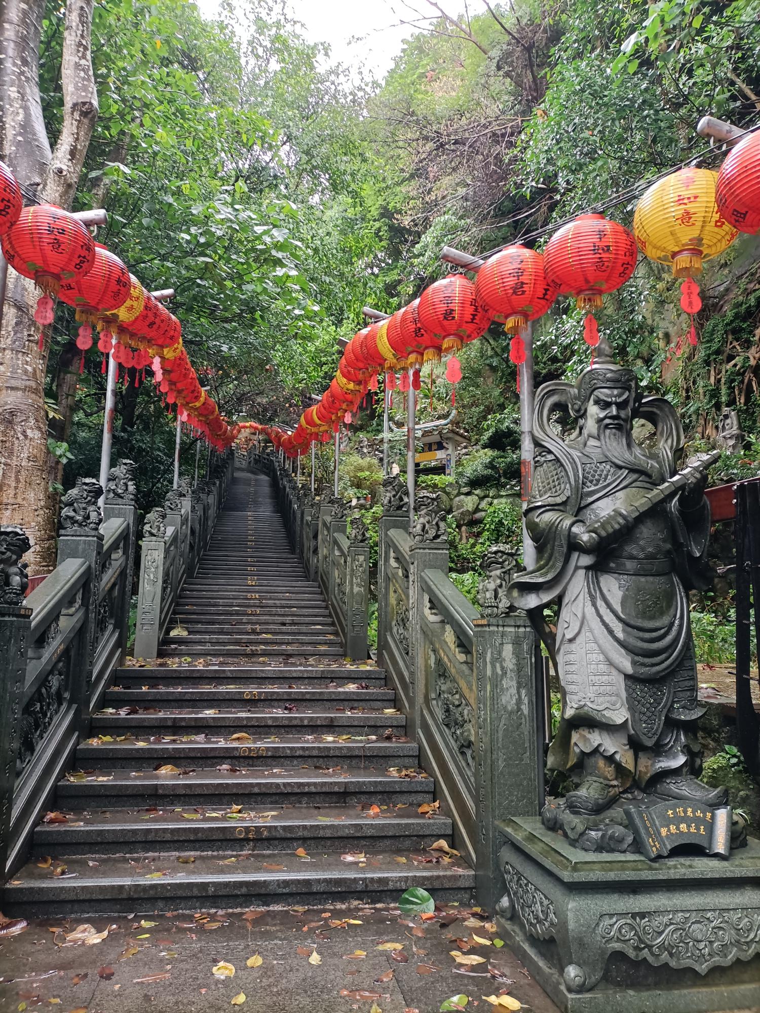 從步道入口處往上爬,一共要經兩百二十六階才能到達廟殿。