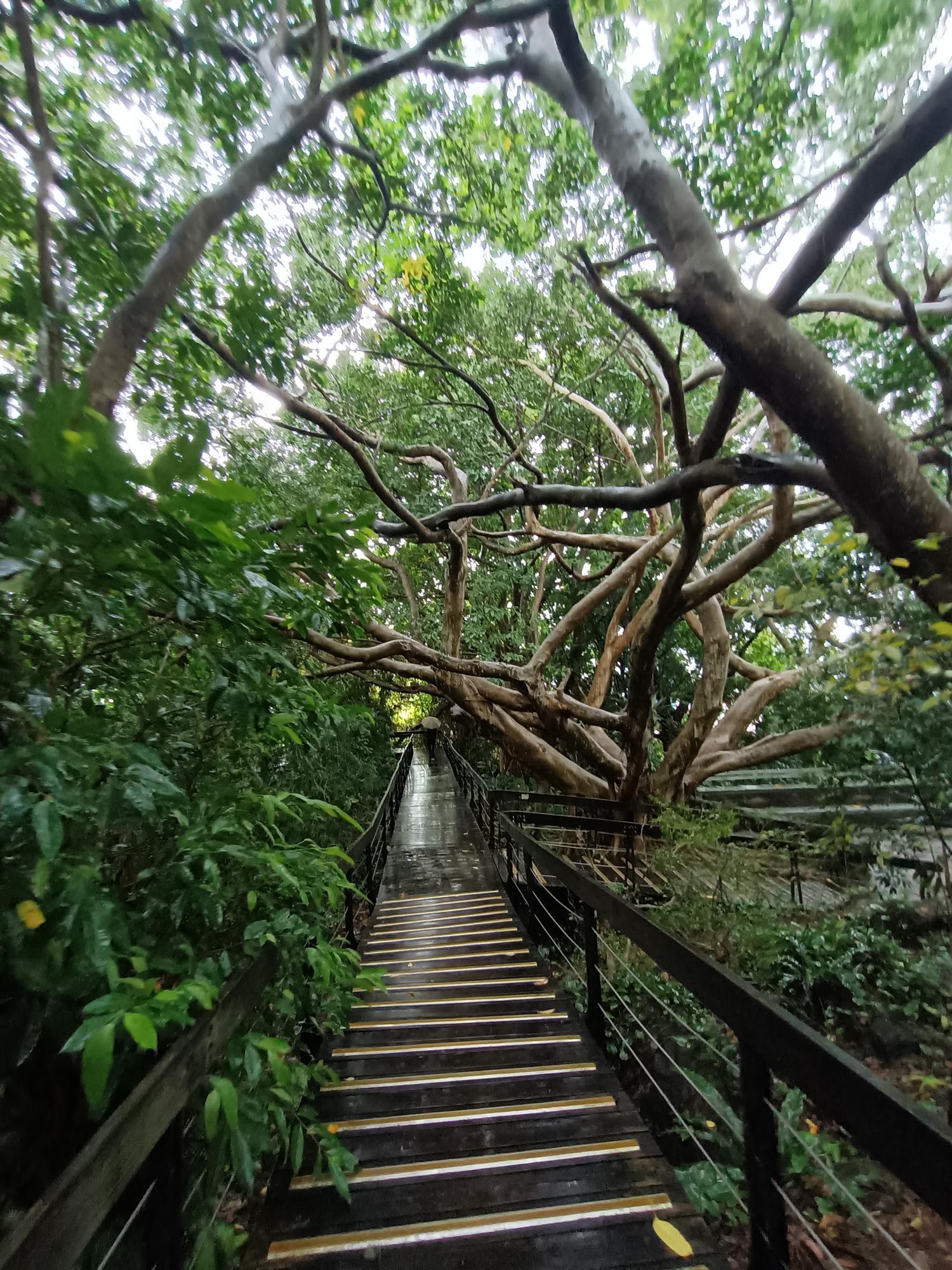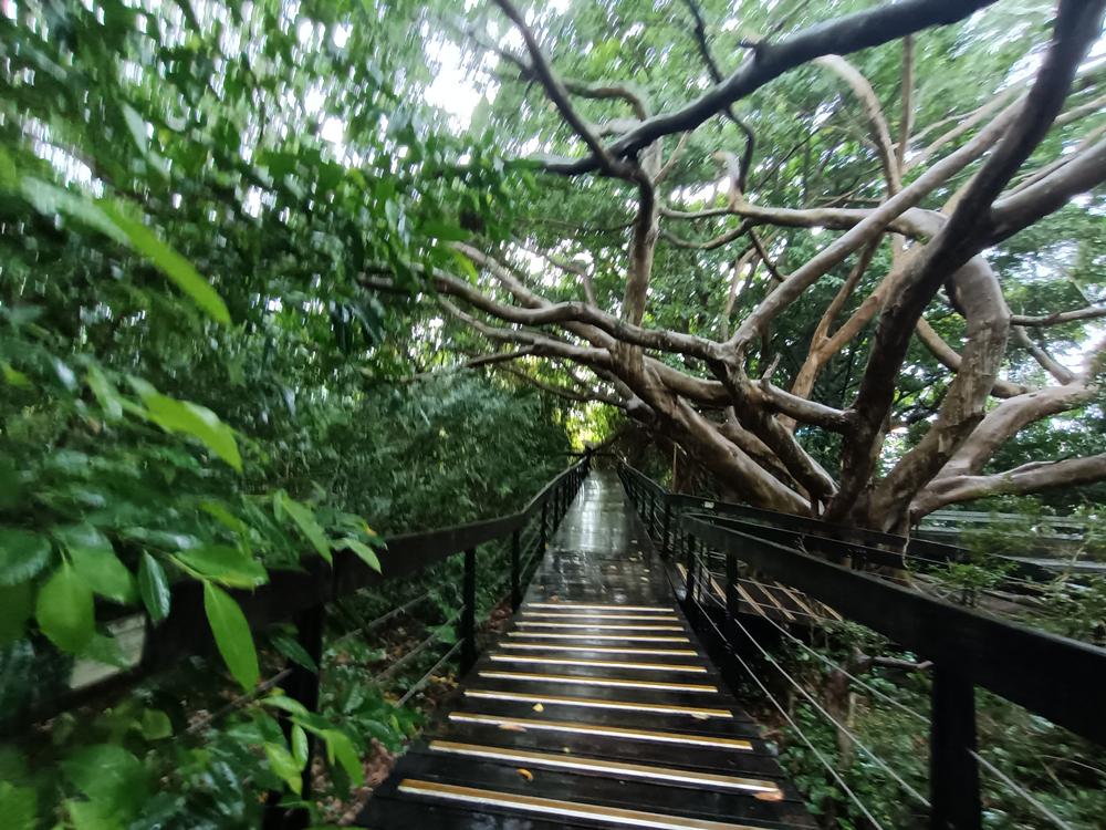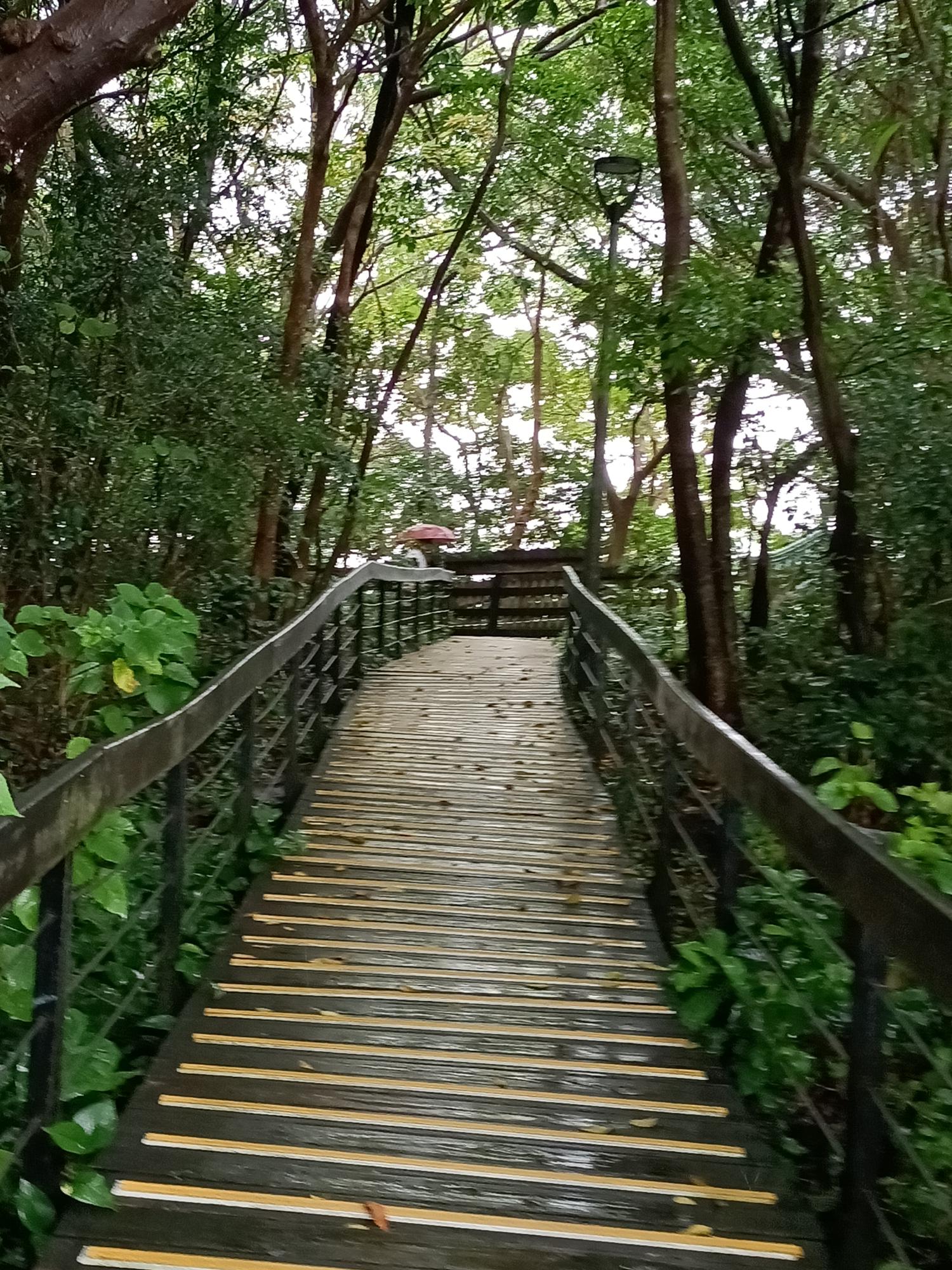 從步道入口處往上爬,一共要經兩百二十六階才能到達廟殿。