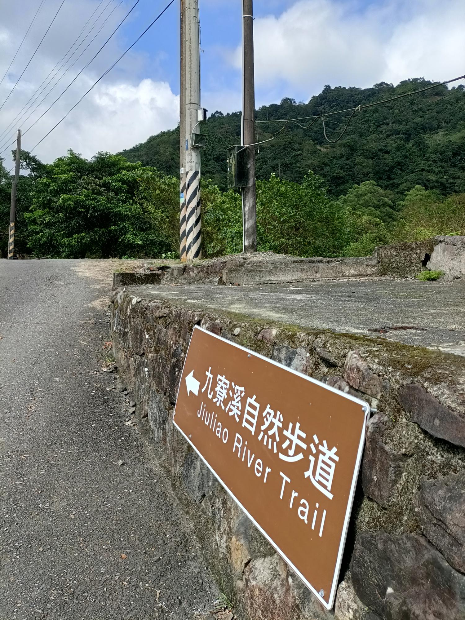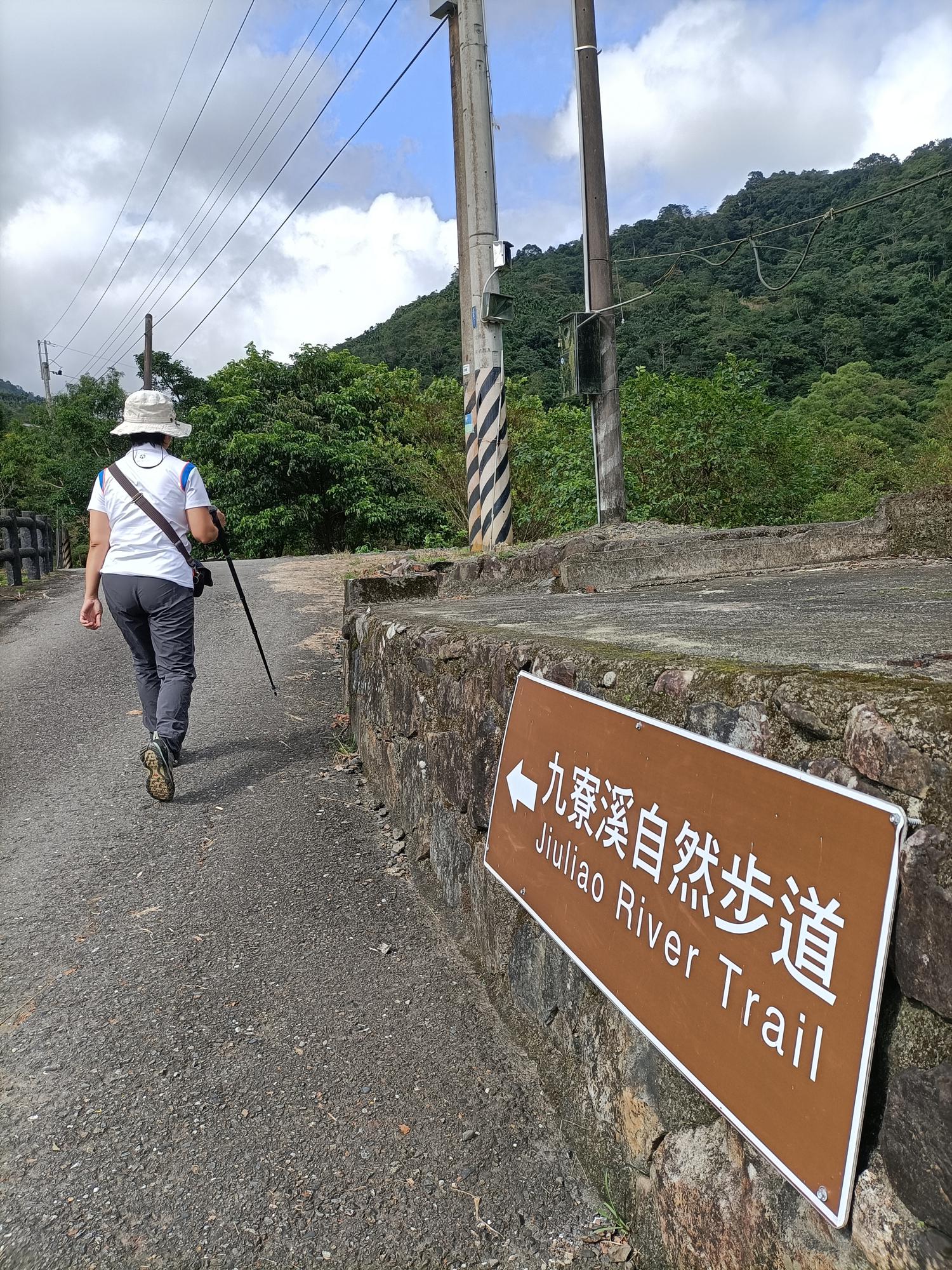 過棧道後,前行一小段,路旁立有九寮溪自然步道導覽解說牌。
