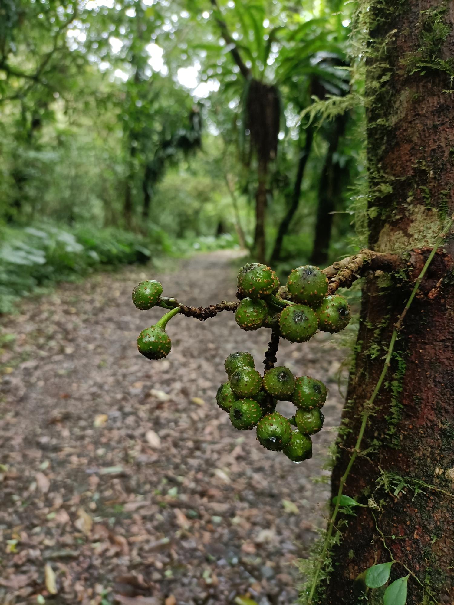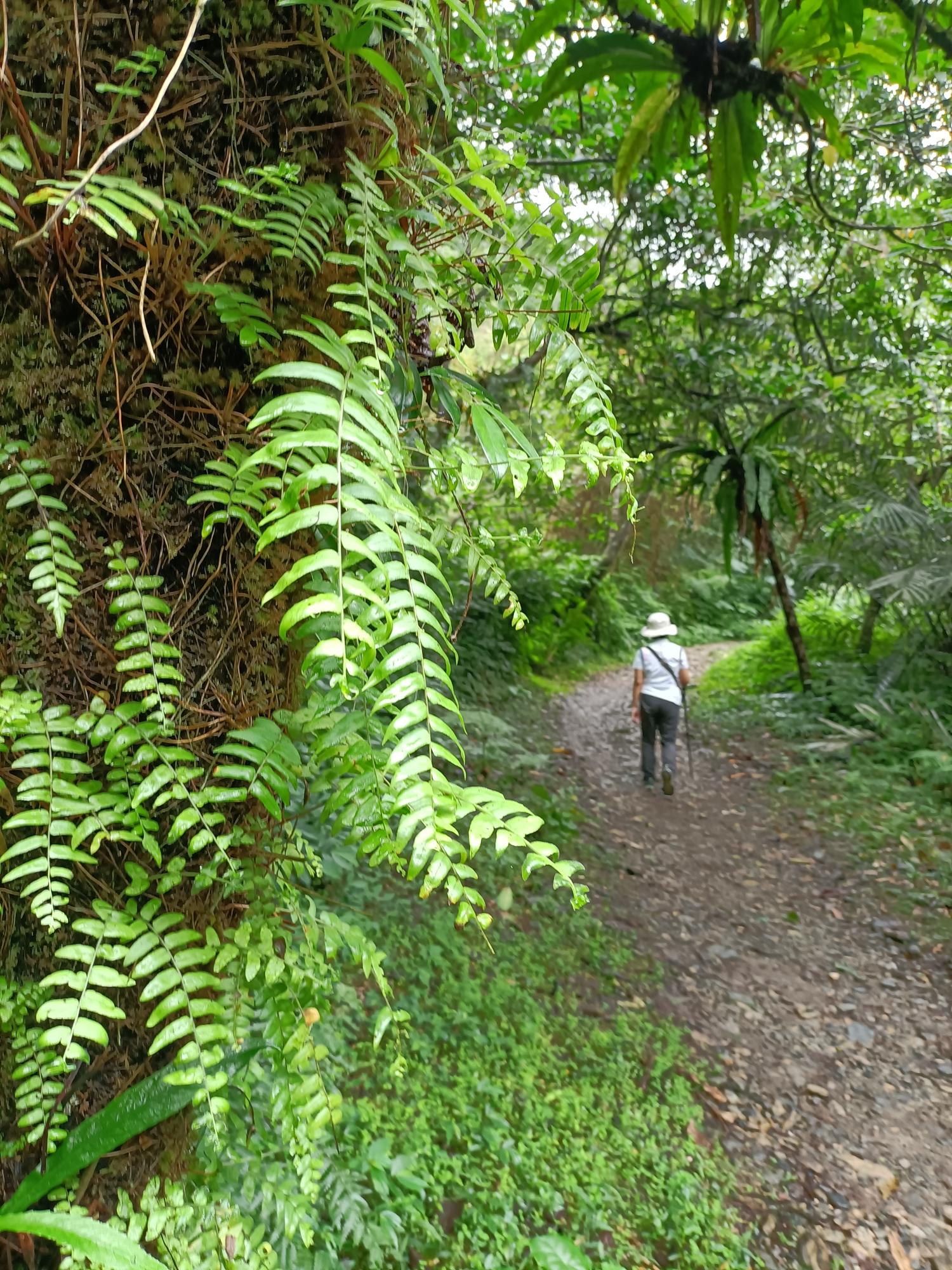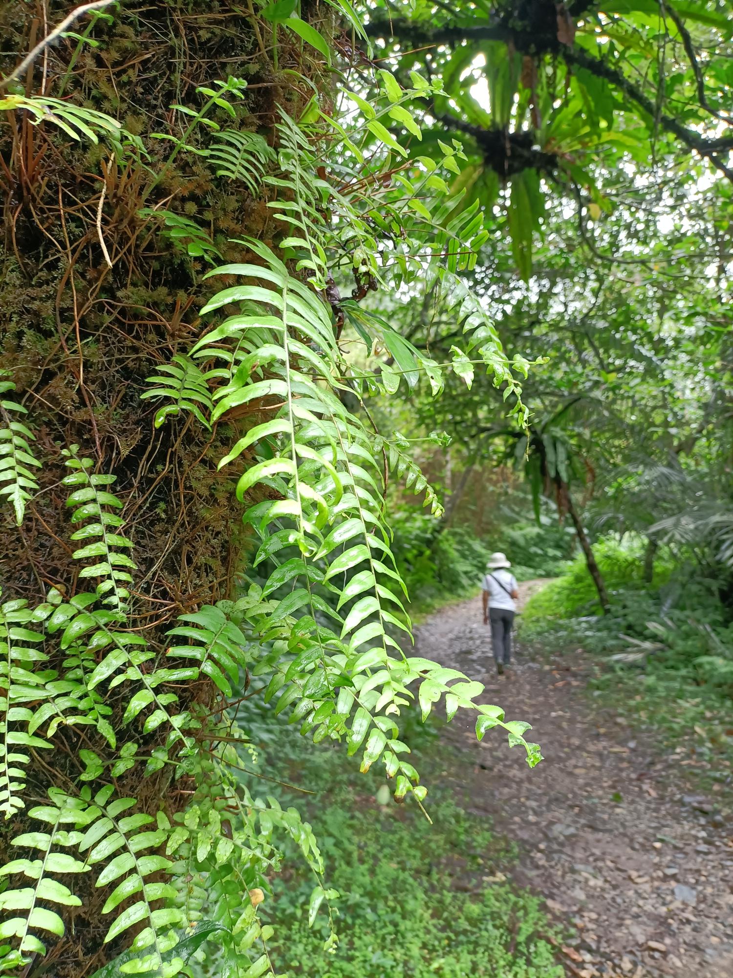 有不少鳥巢蕨攀附於樹幹, 樹上叢叢綠巢,景觀原始自然。