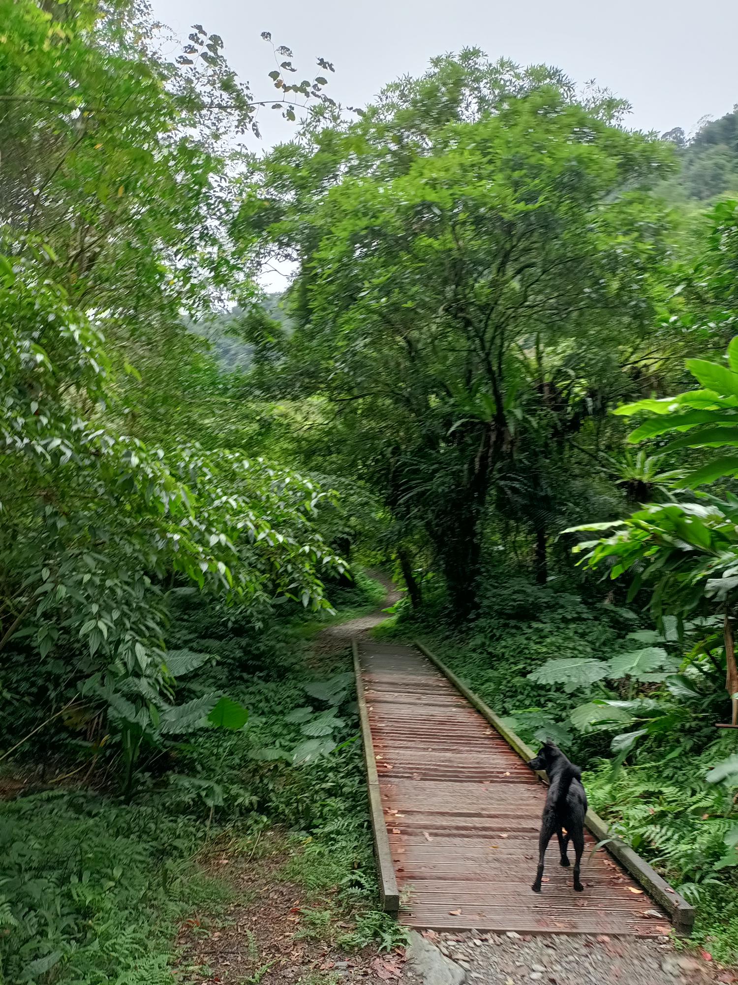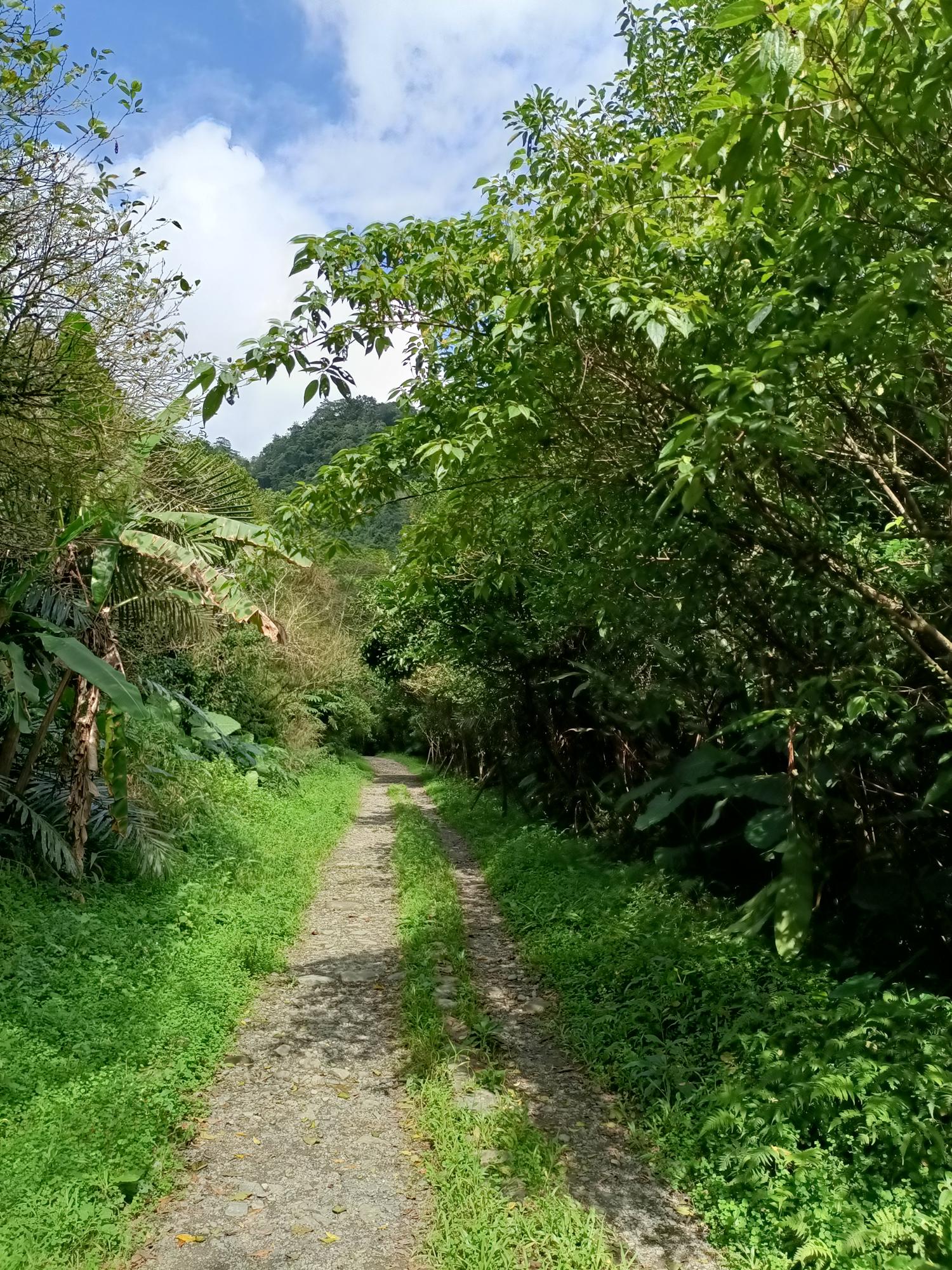 過豁雲橋後,沿著溪岸蜿蜒而行,古道寬闊平緩,森林蓊鬱,
