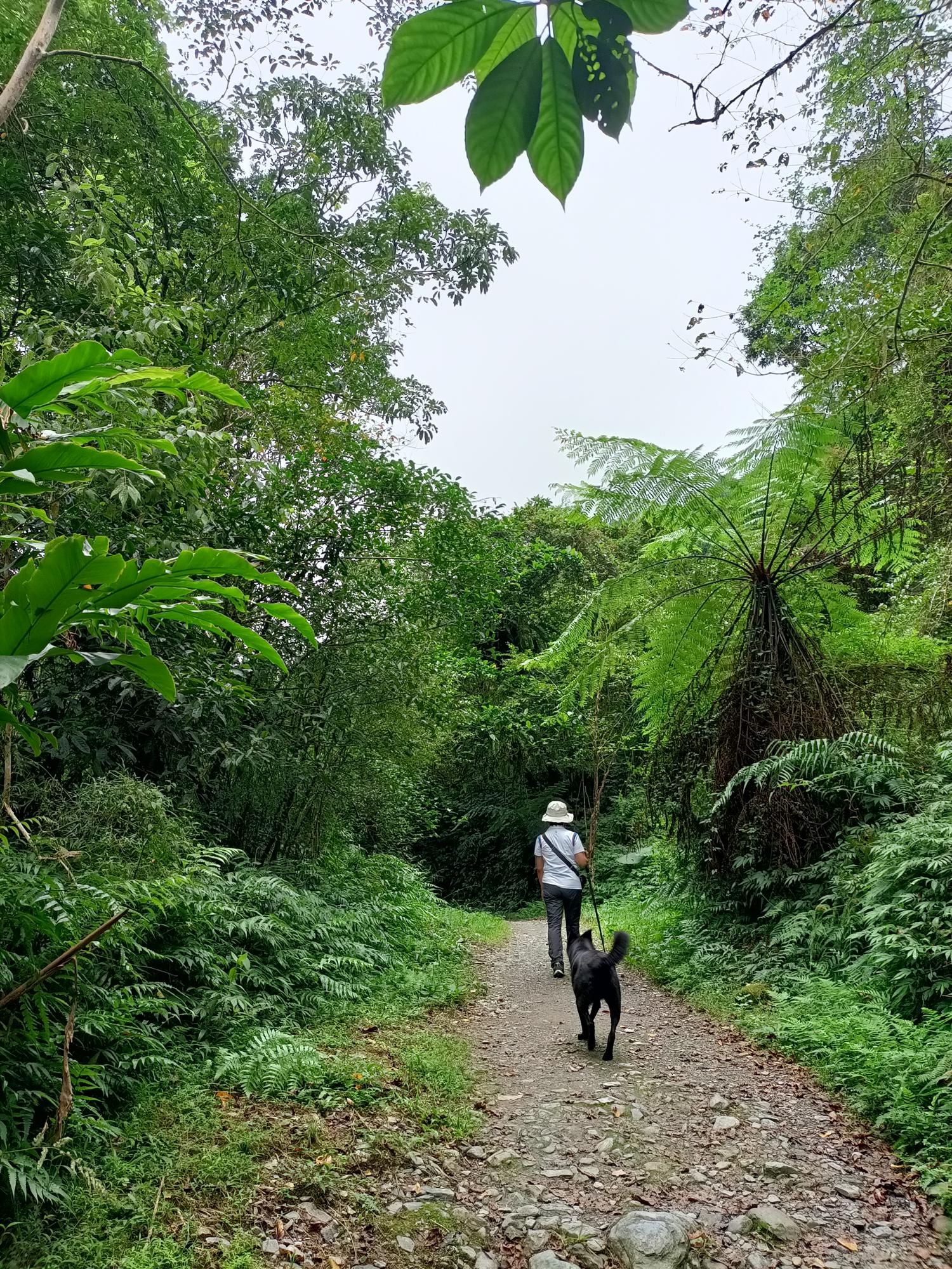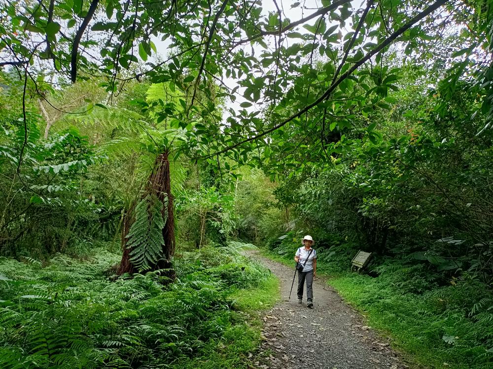 步道全長約四公里,平緩易行,沿途林蔭蔽日、涼風拂面。