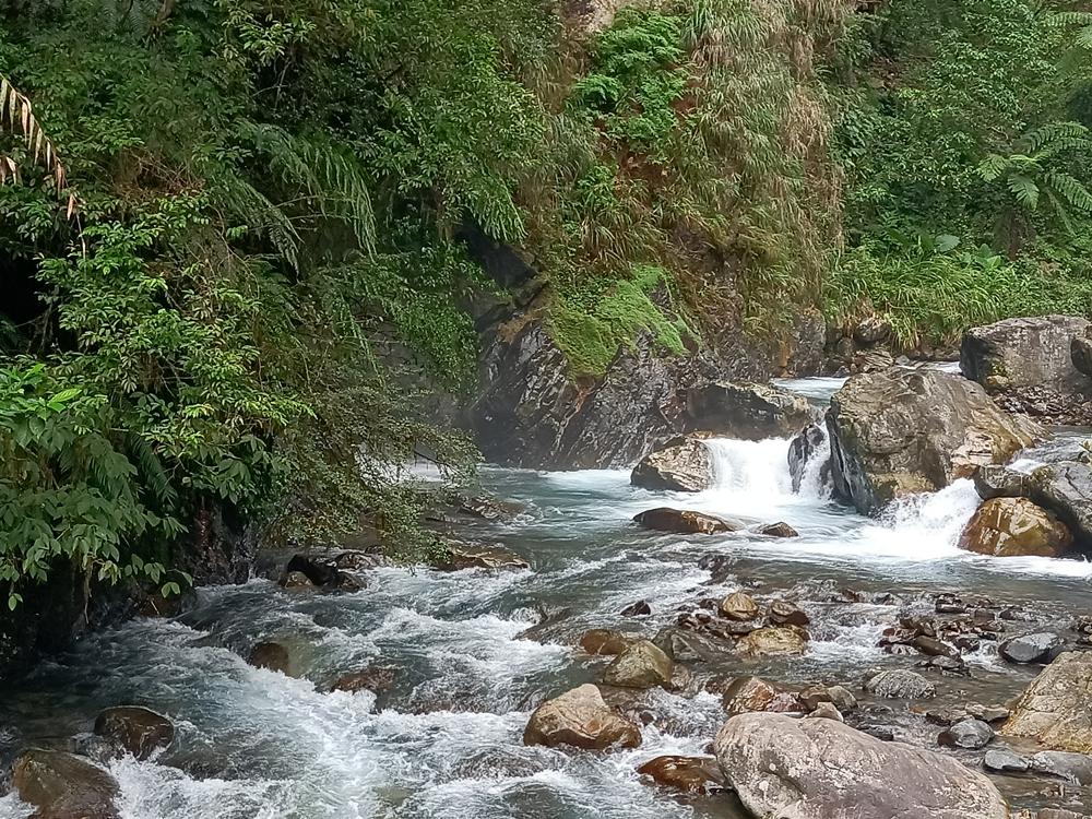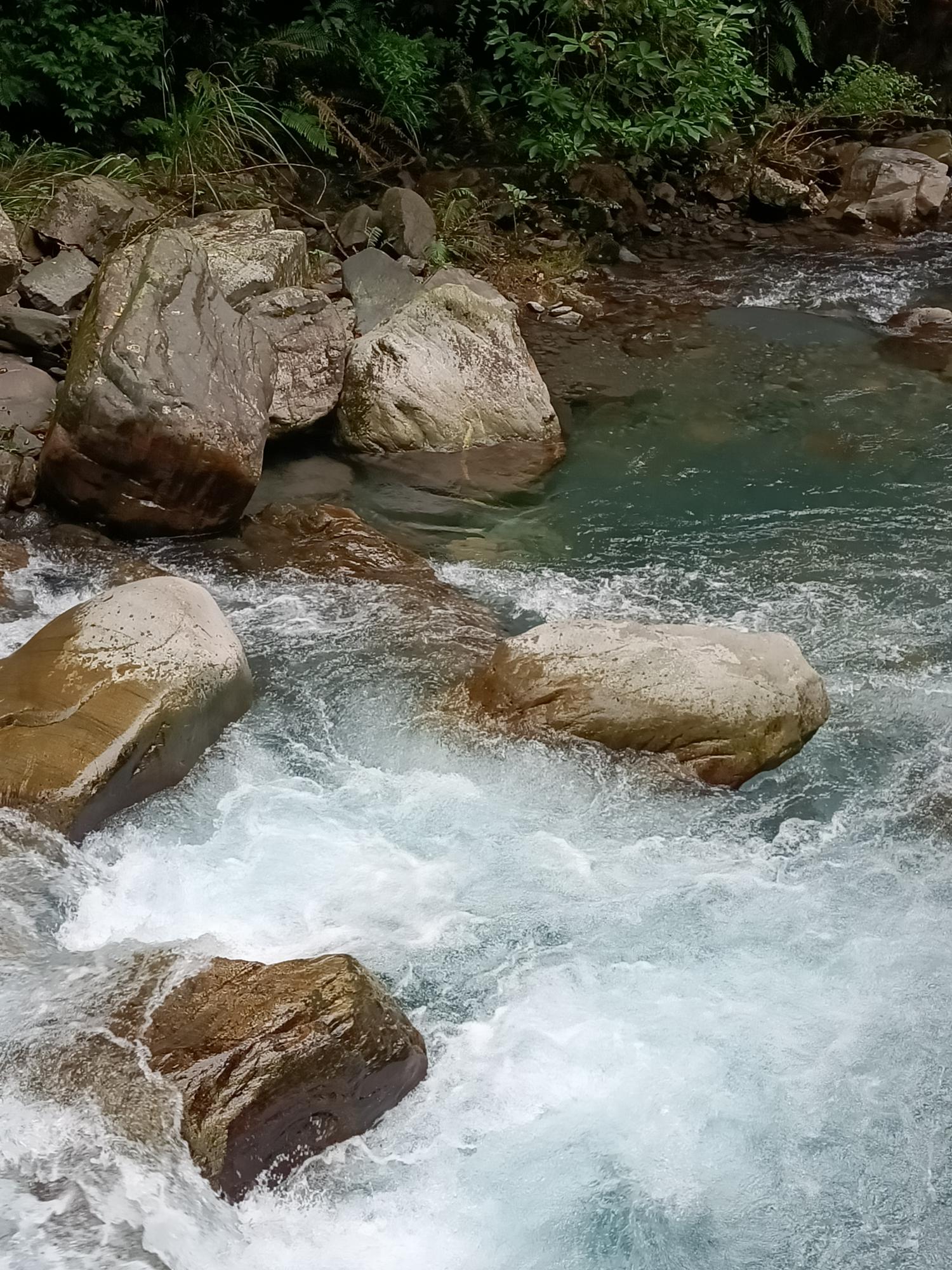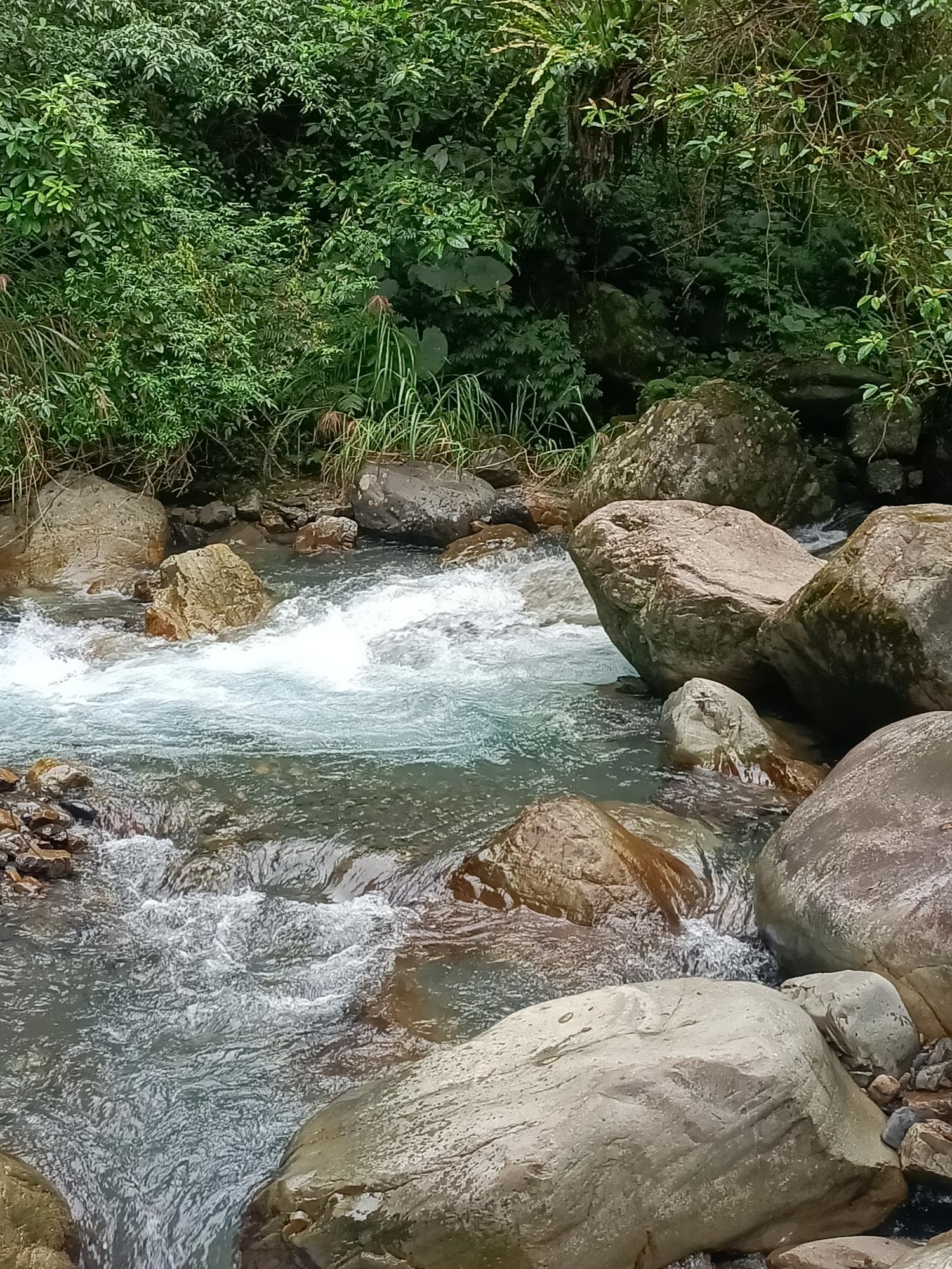 源自雪山山脈,流至拳頭母山附近,一路往東奔流而下,溪水強勁,