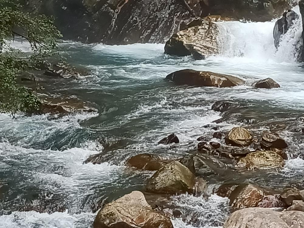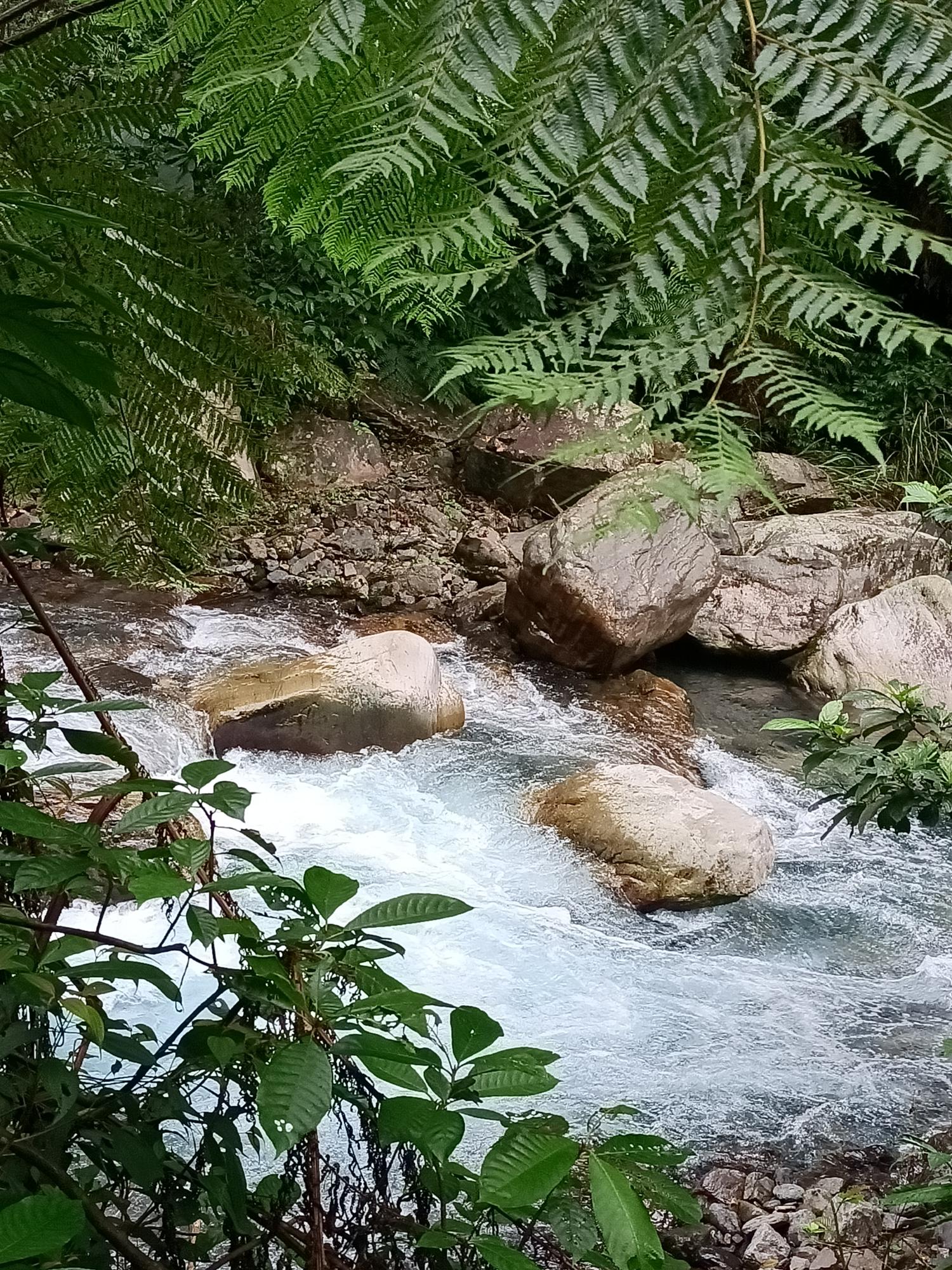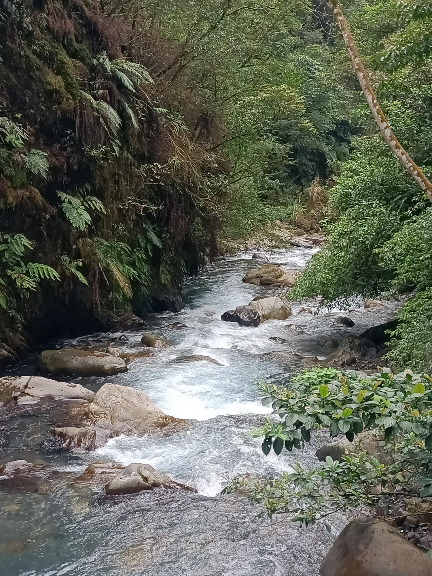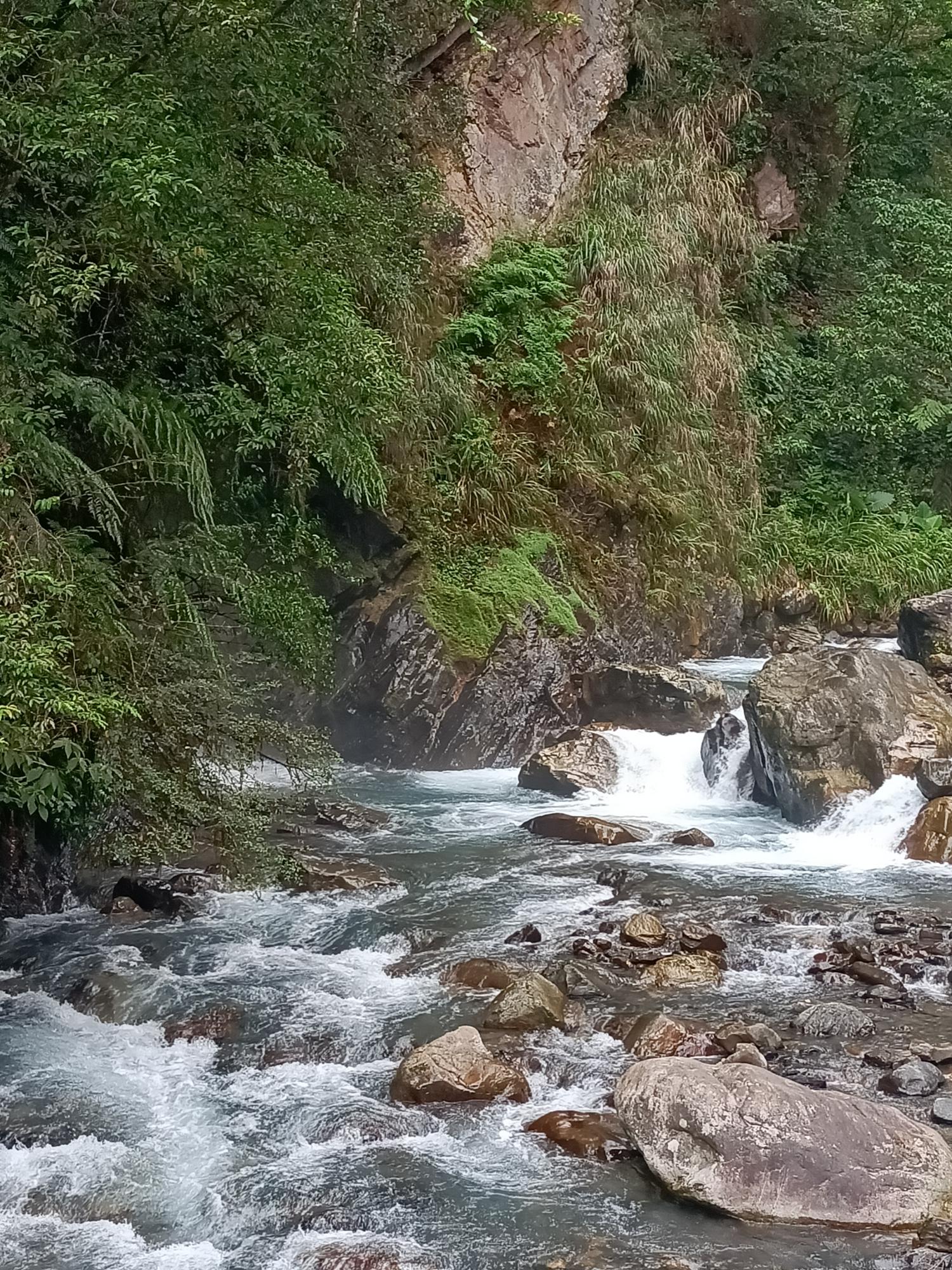 源自雪山山脈,流至拳頭母山附近,一路往東奔流而下,溪水強勁,