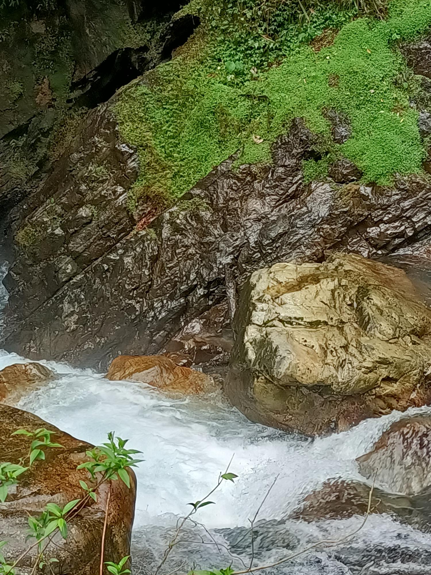 瀑布水勢奔騰,聲勢澎湃,令人屏息。