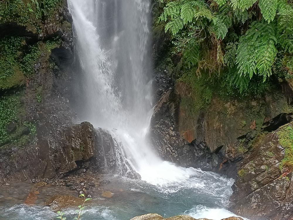 終點即是壯觀的戈霸瀑布,數十公尺的水幕如銀練垂落,