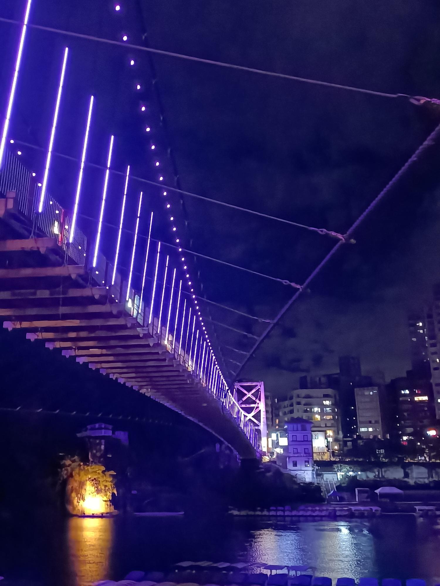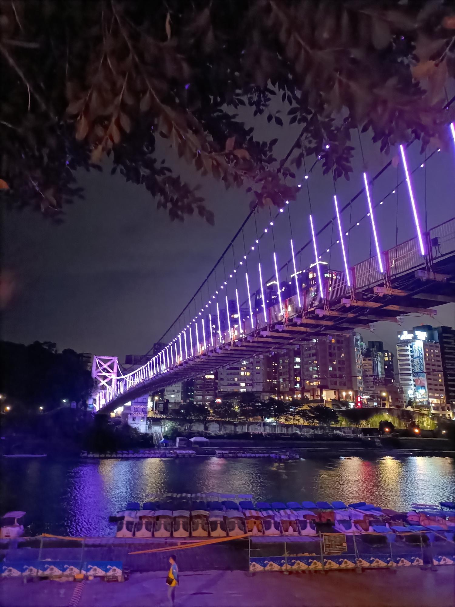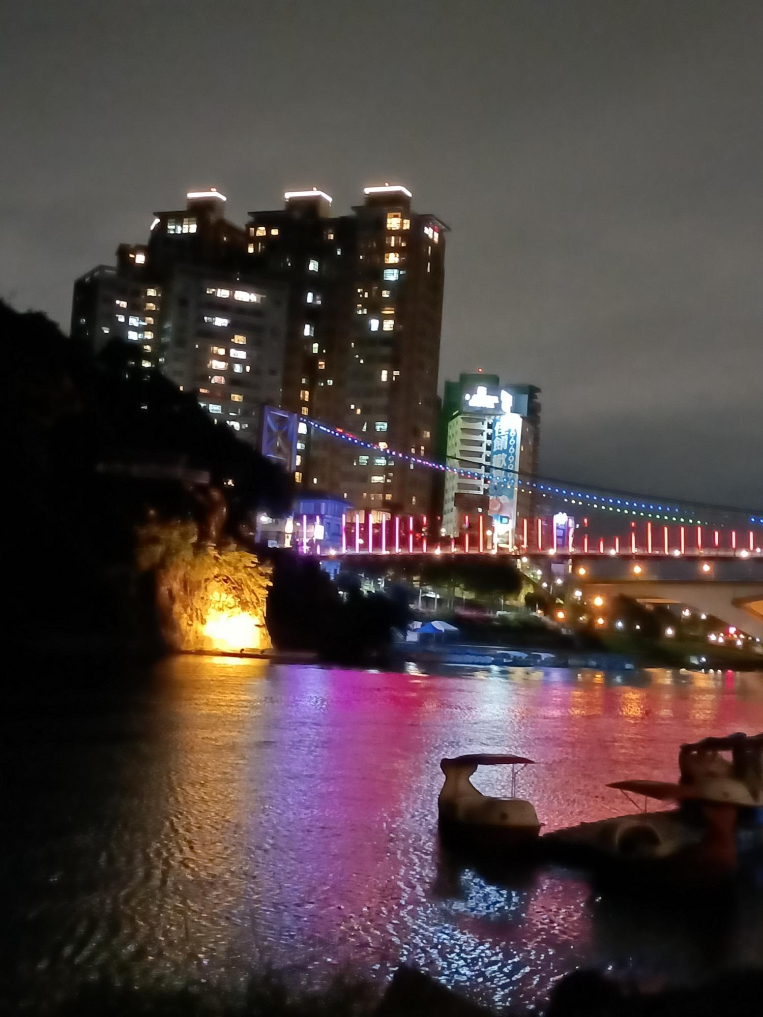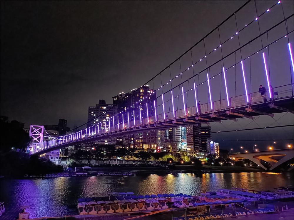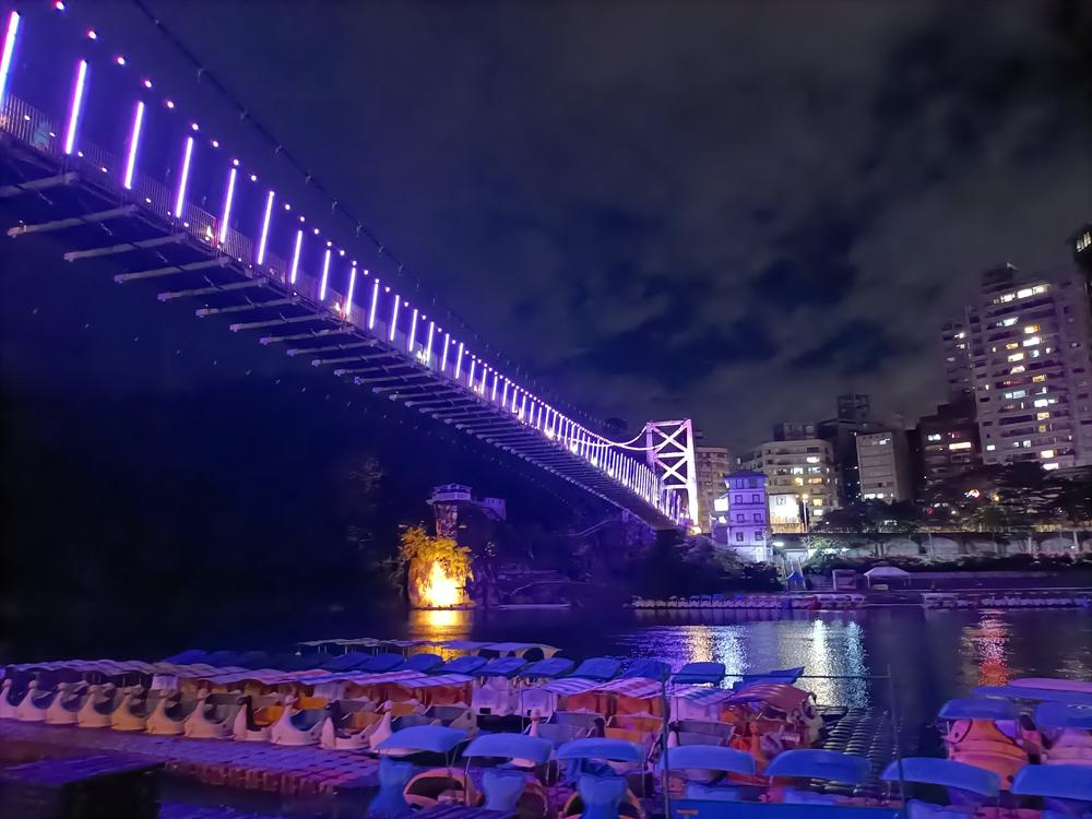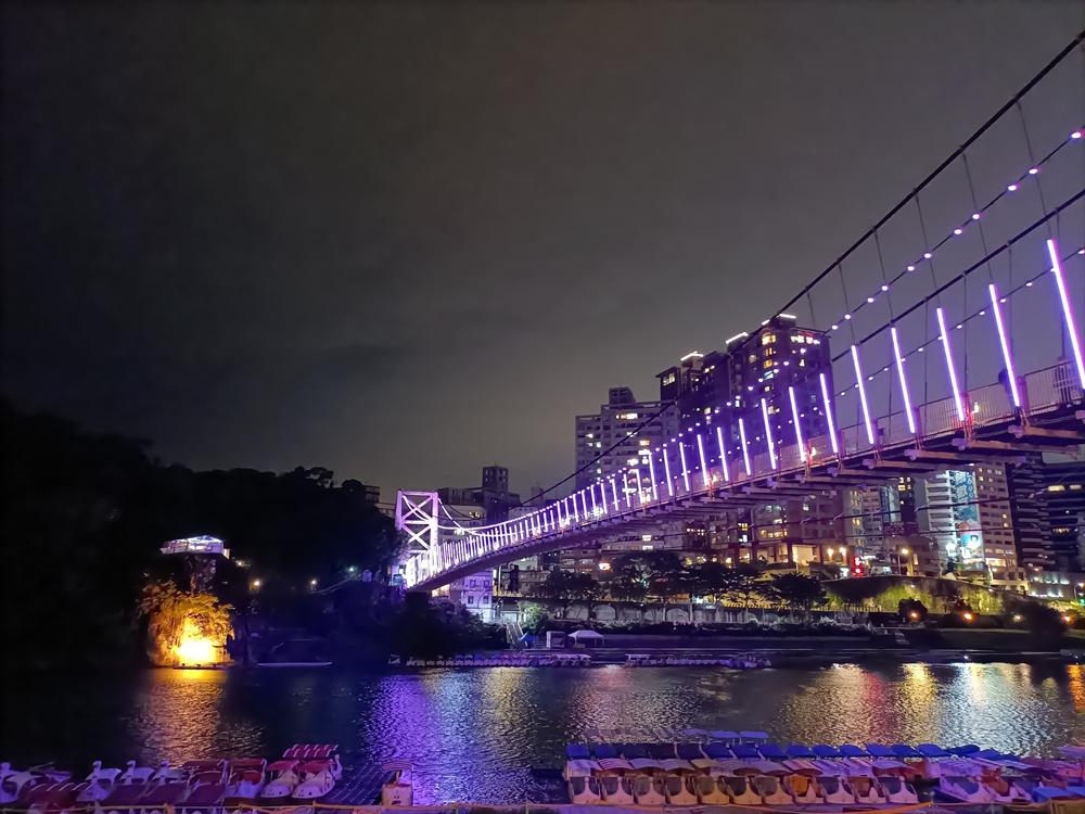妝點著彩色燈光的碧潭吊橋,就像是橫跨水面的彩虹,