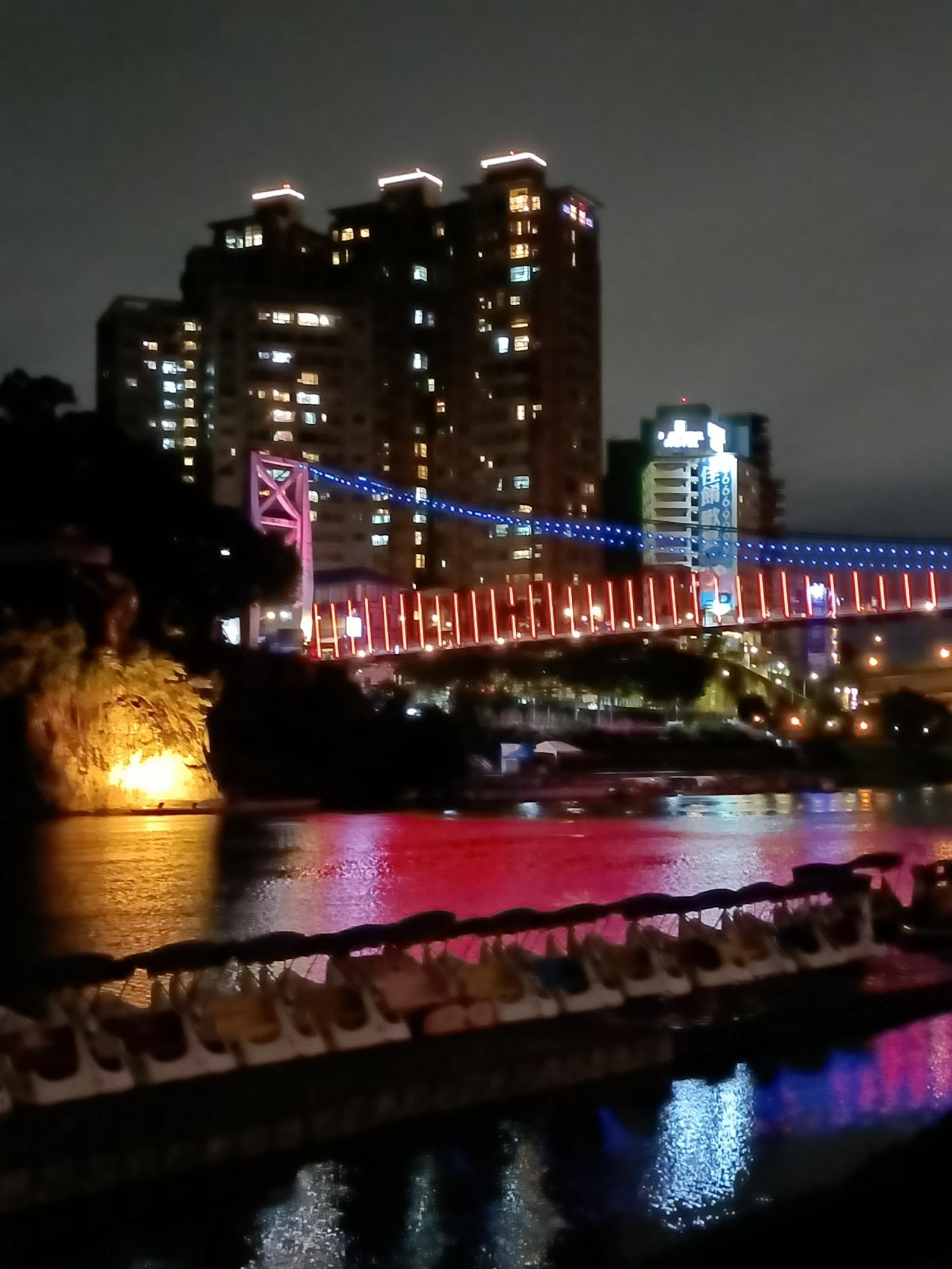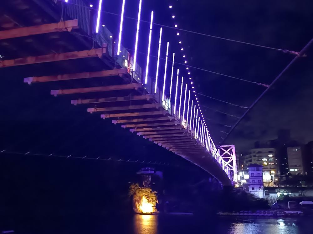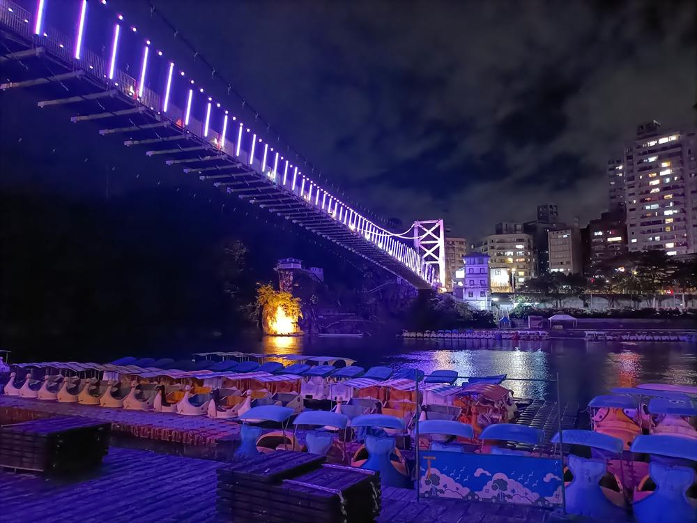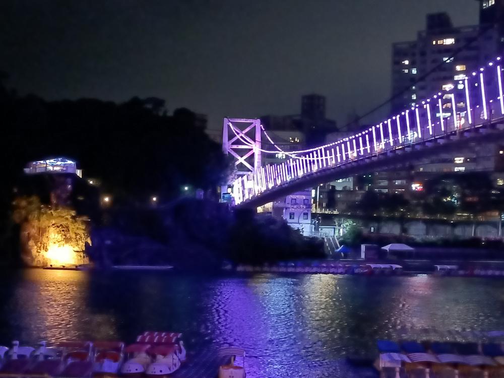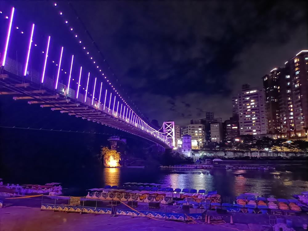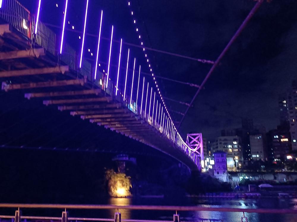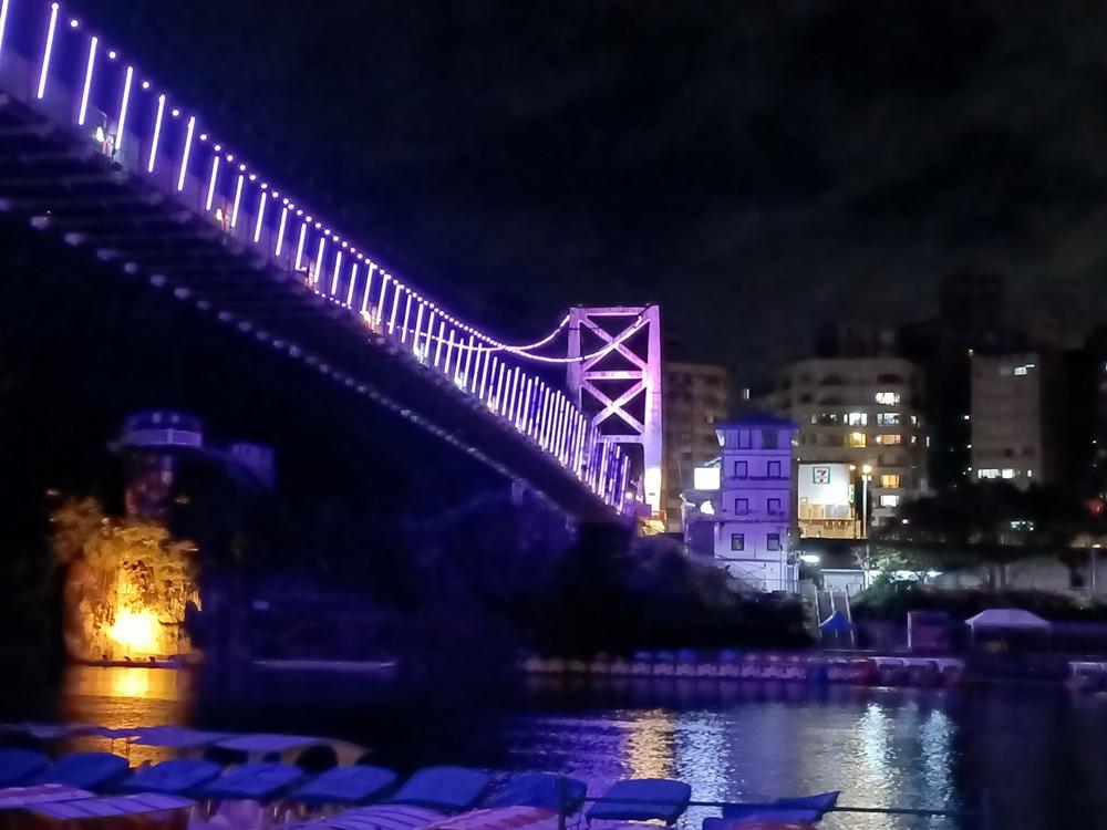 妝點著彩色燈光的碧潭吊橋,就像是橫跨水面的彩虹,