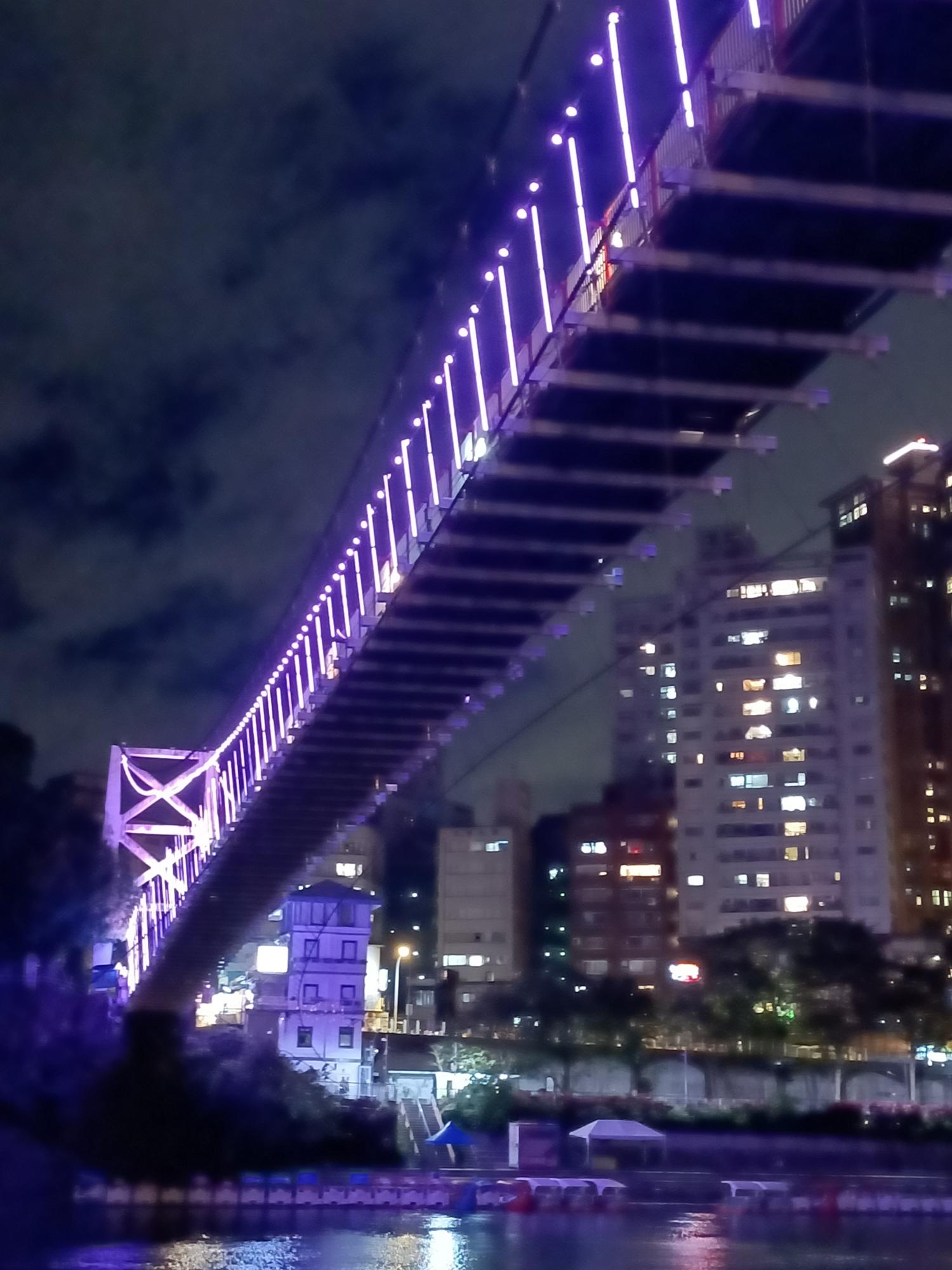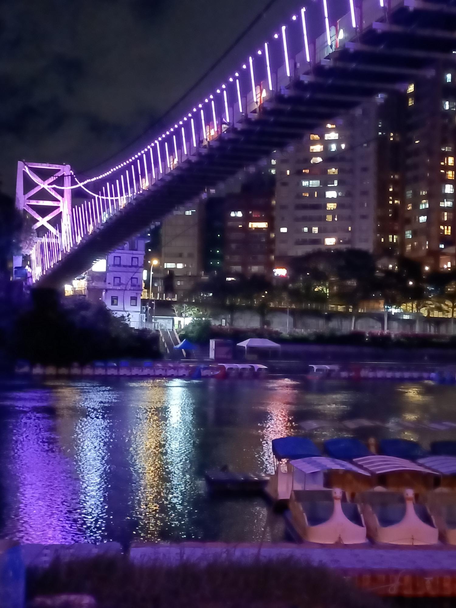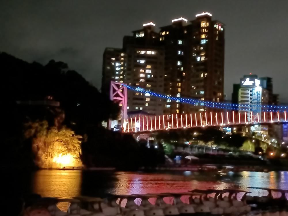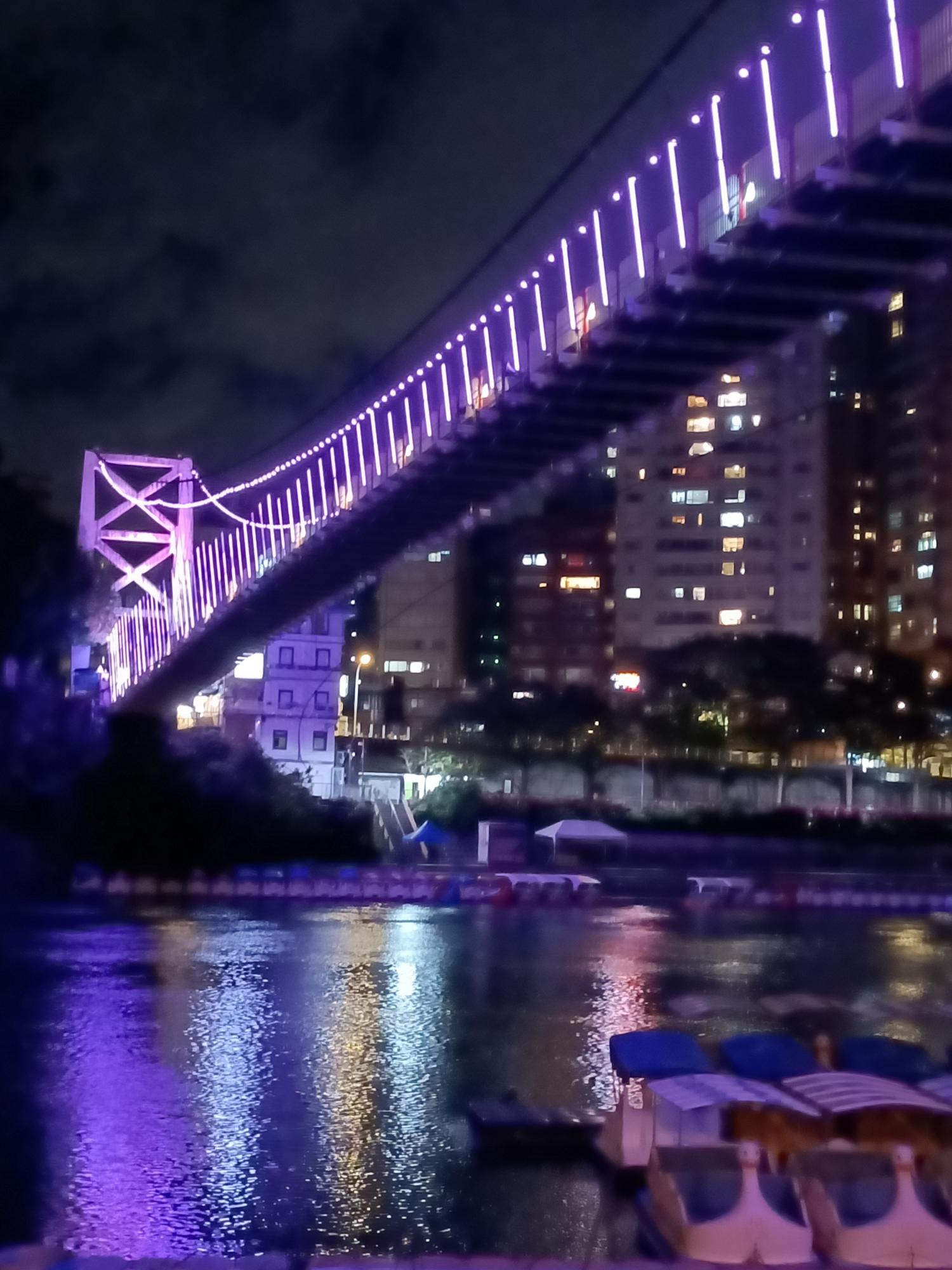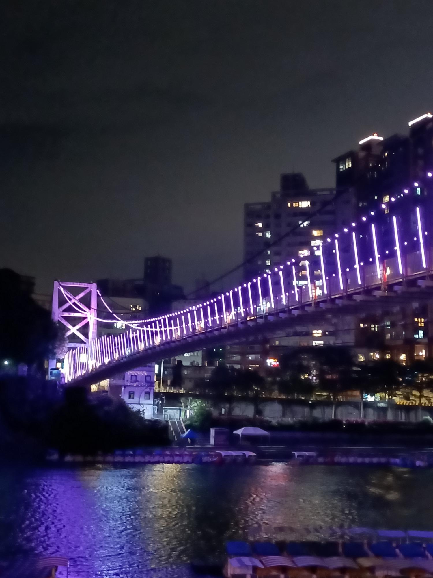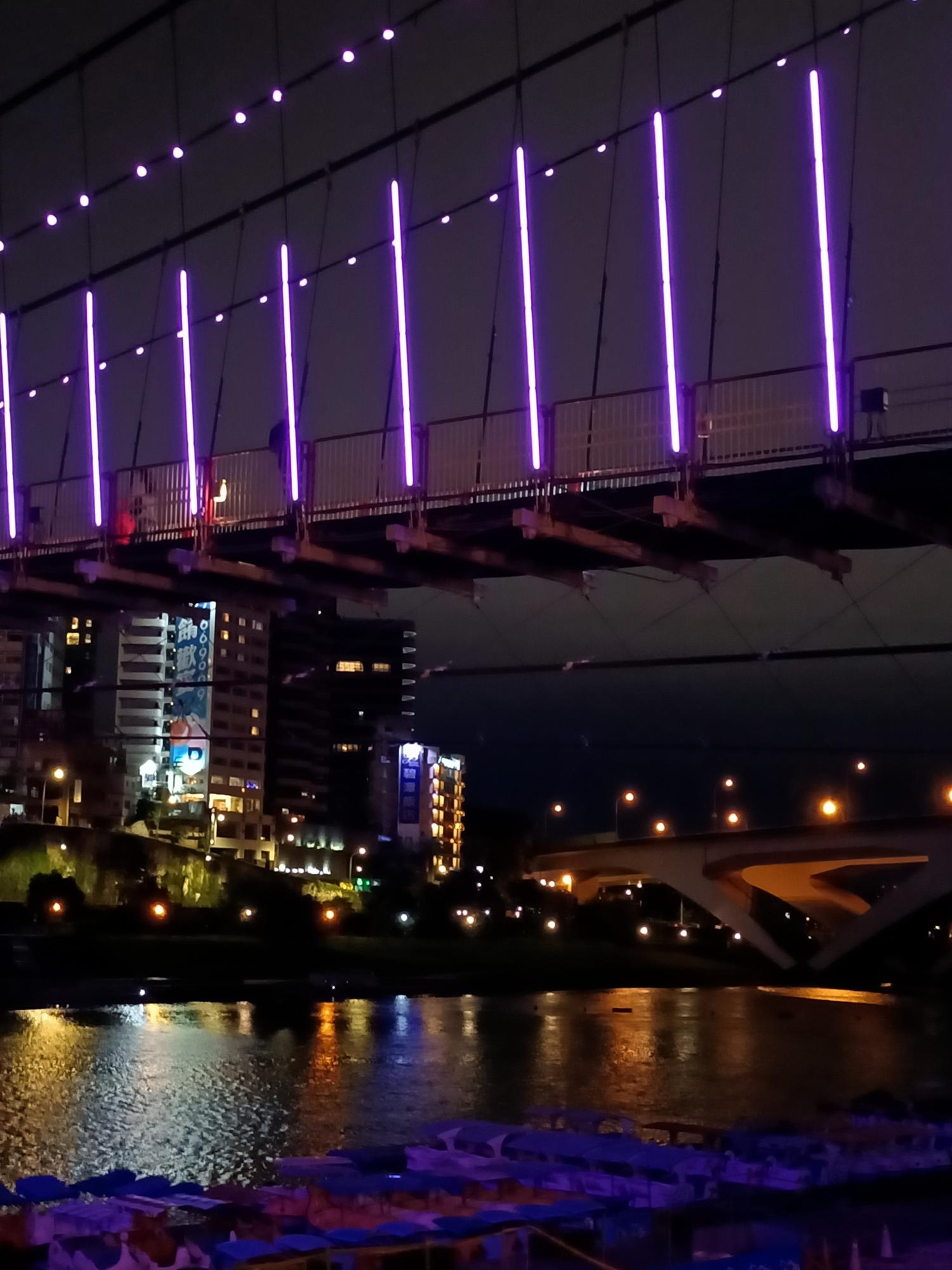 妝點著彩色燈光的碧潭吊橋,就像是橫跨水面的彩虹,