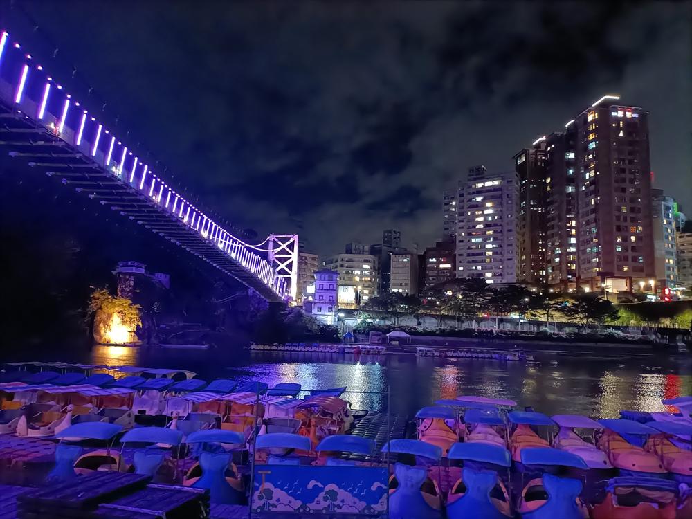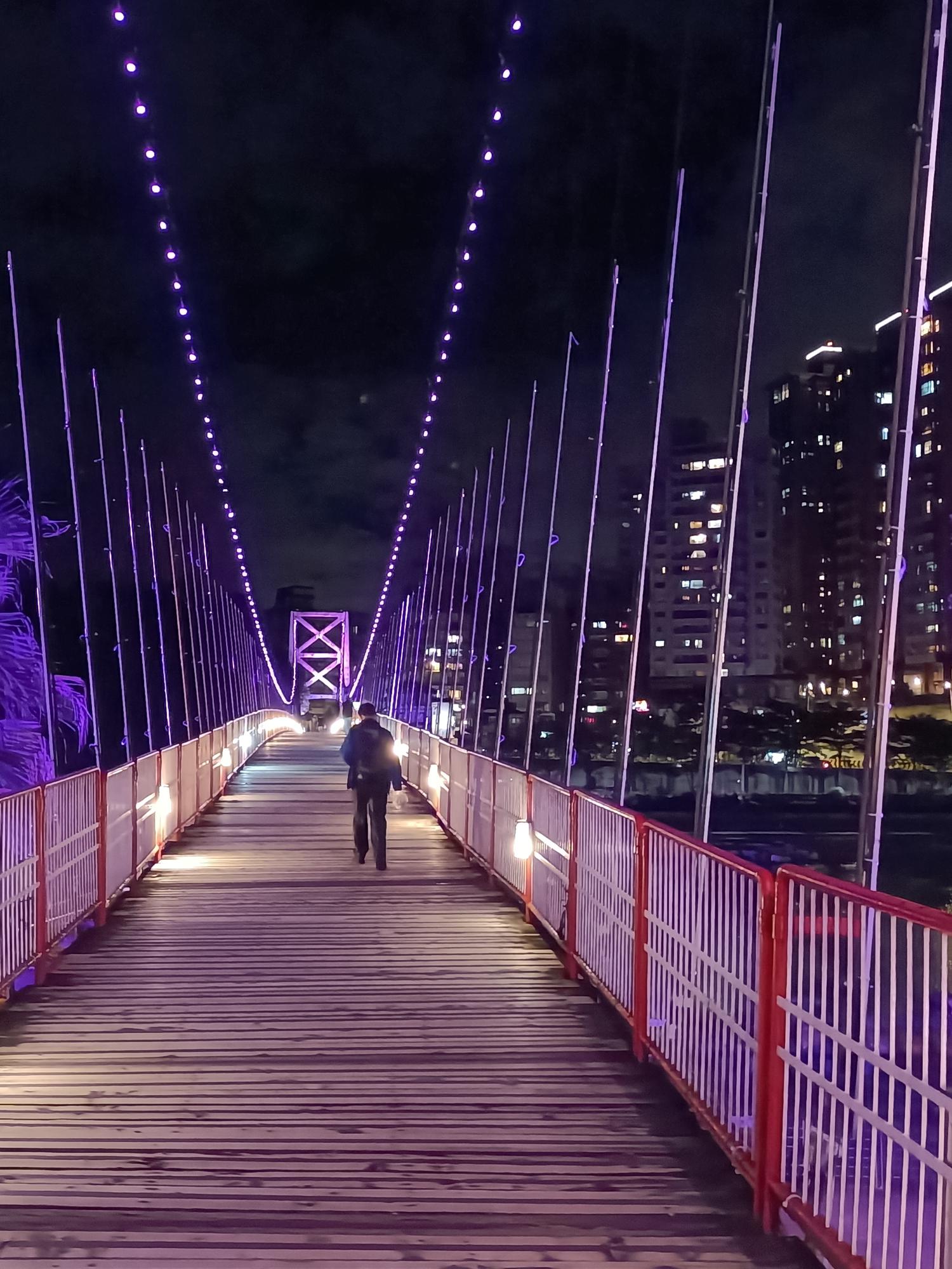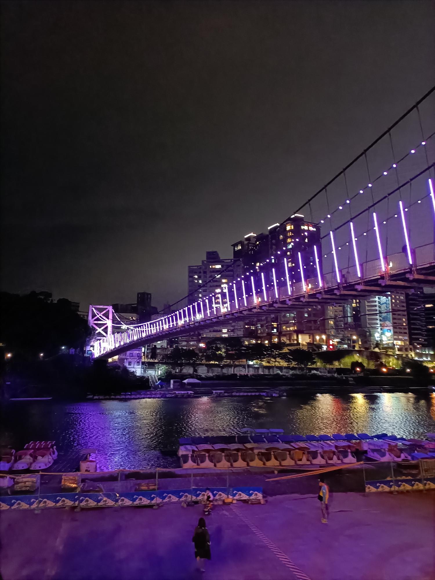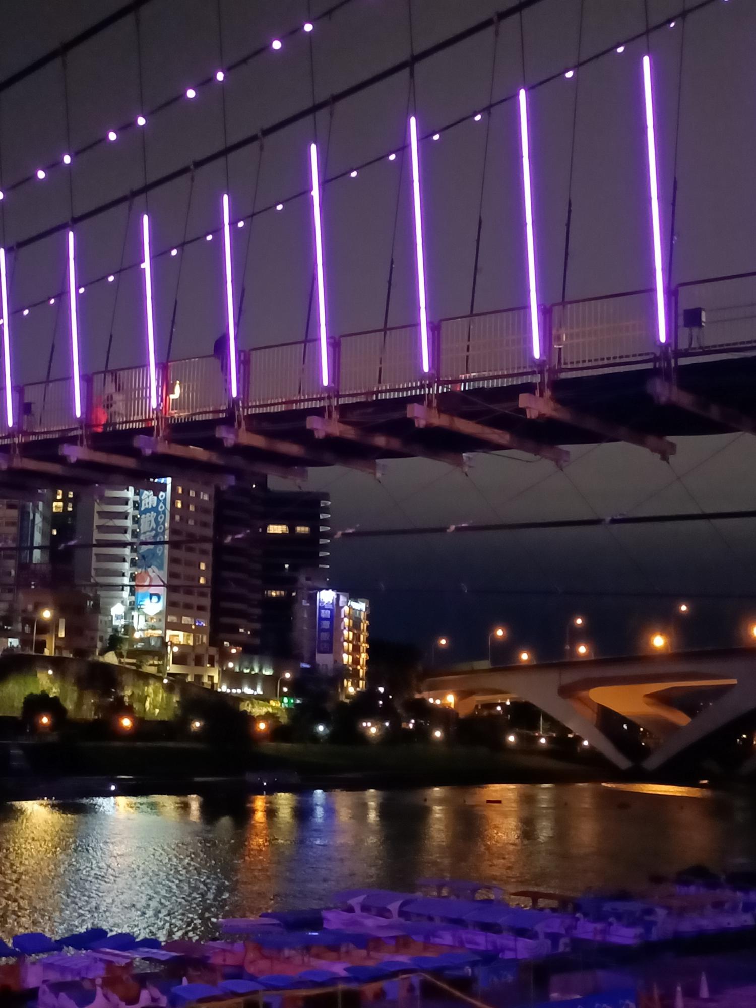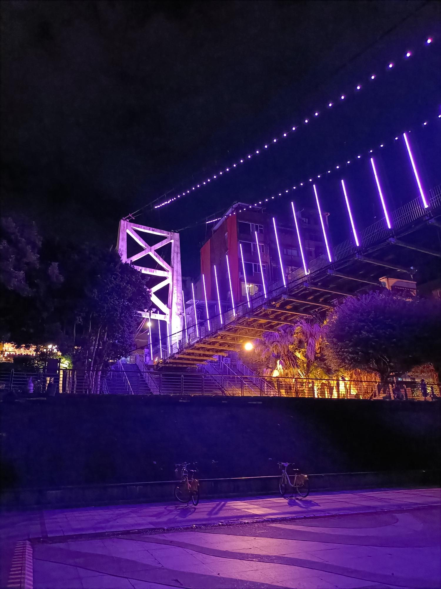 妝點著彩色燈光的碧潭吊橋,就像是橫跨水面的彩虹,