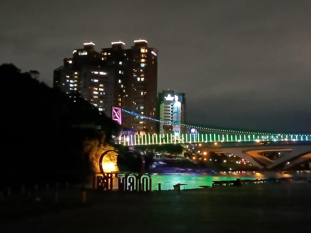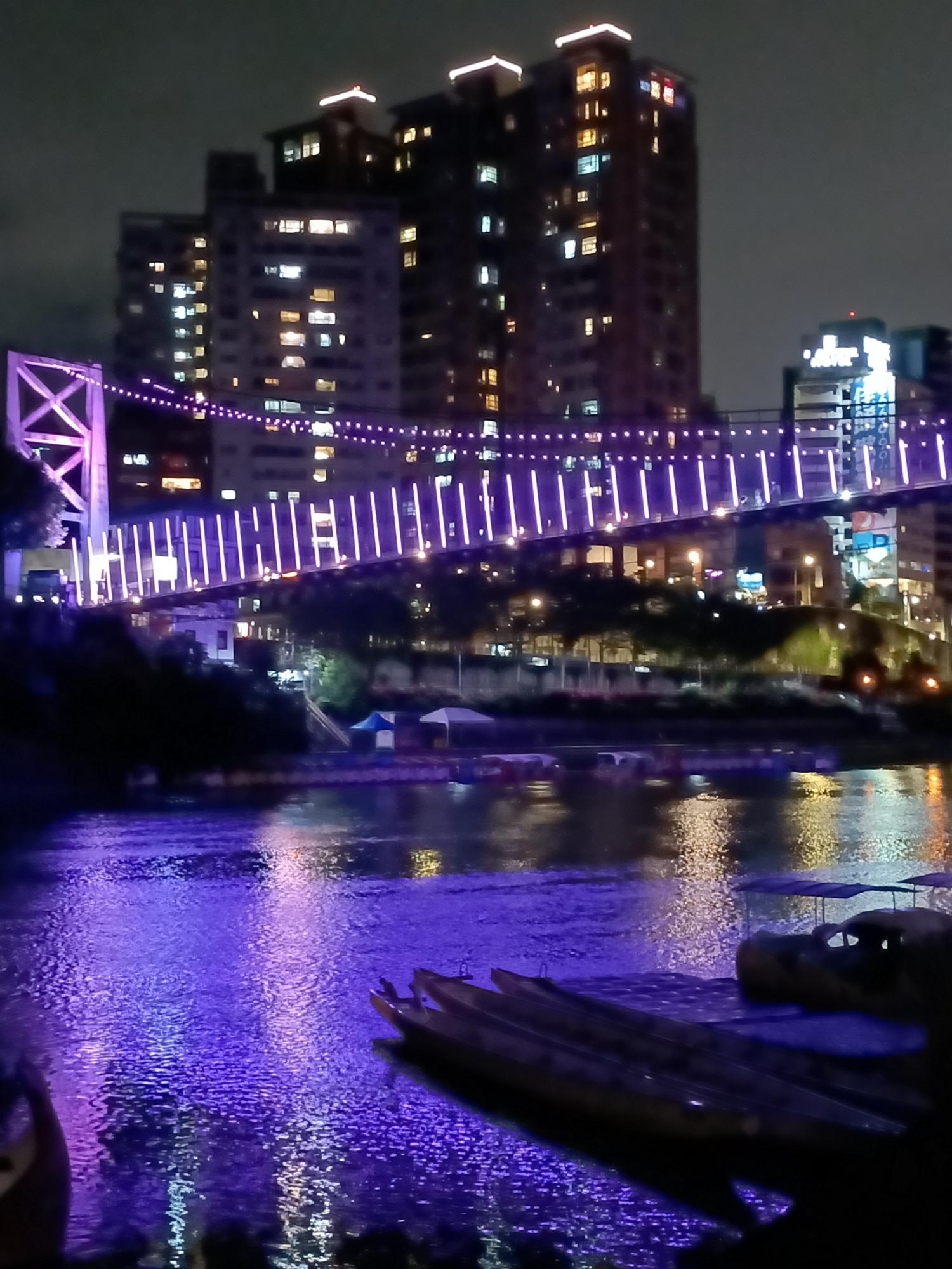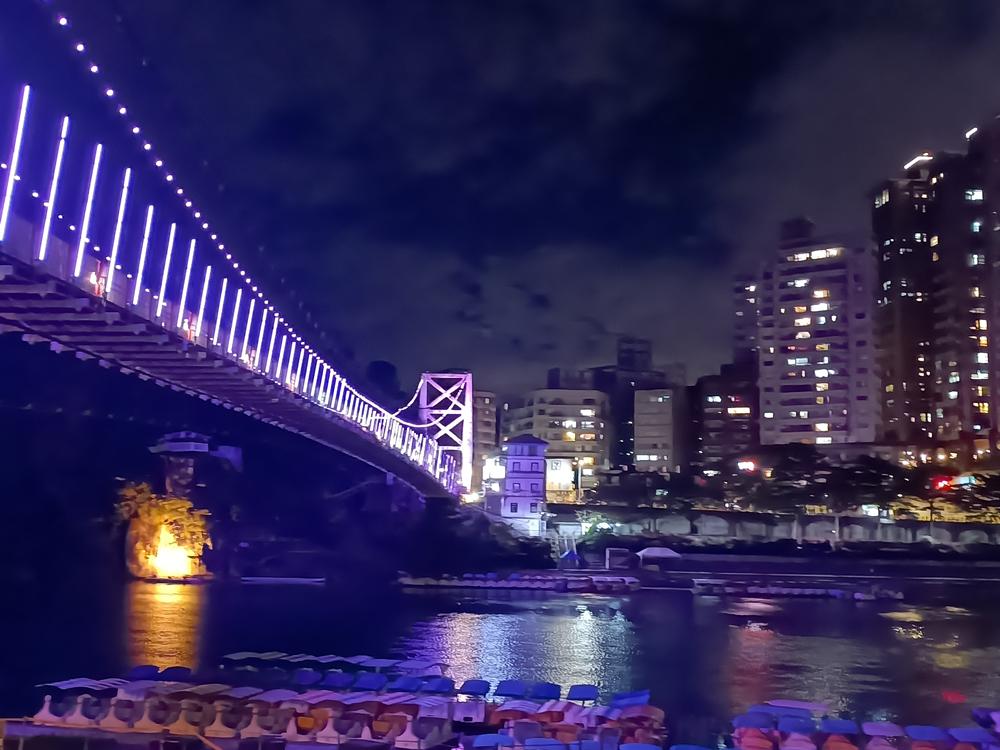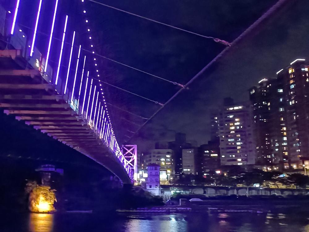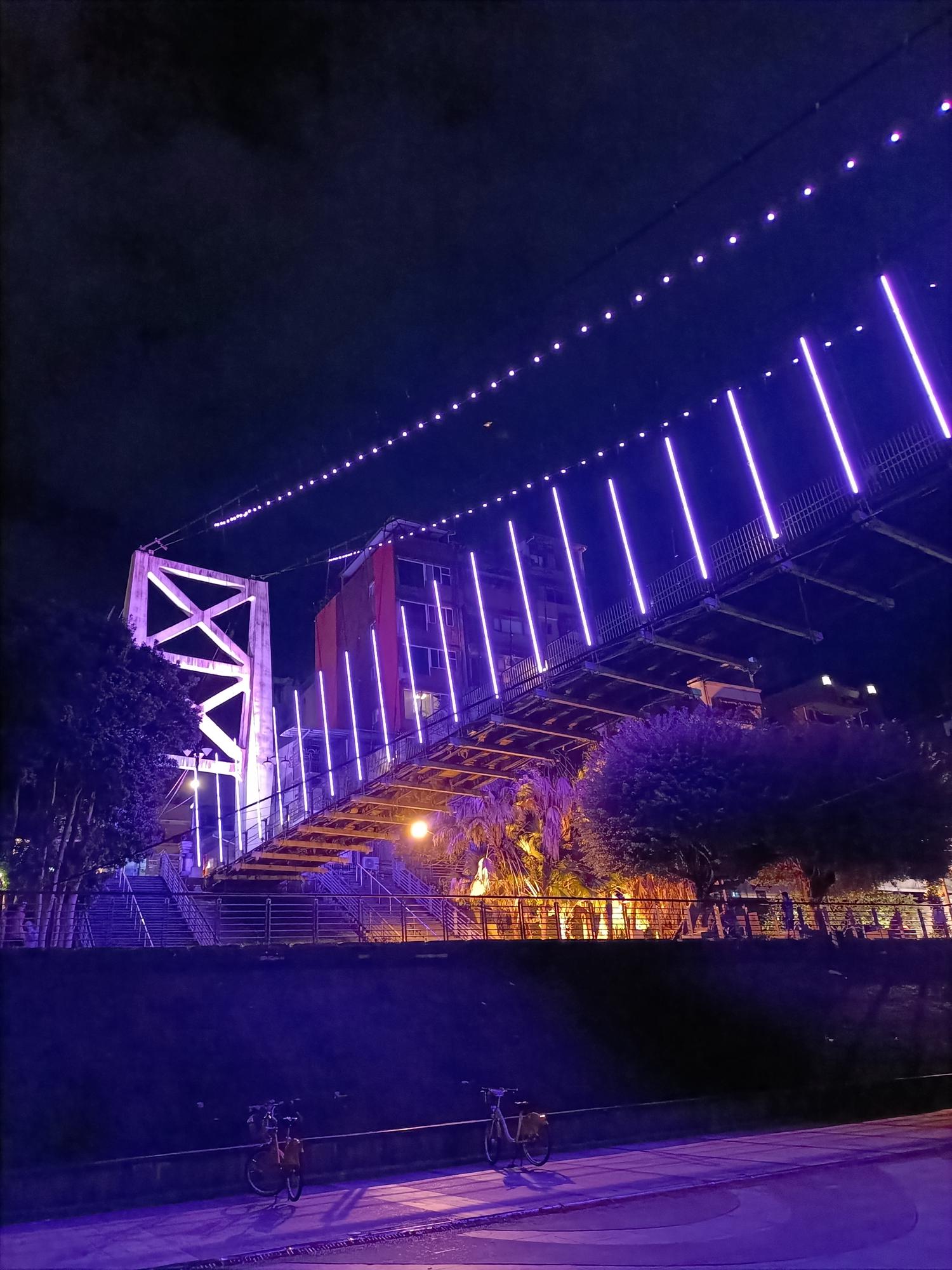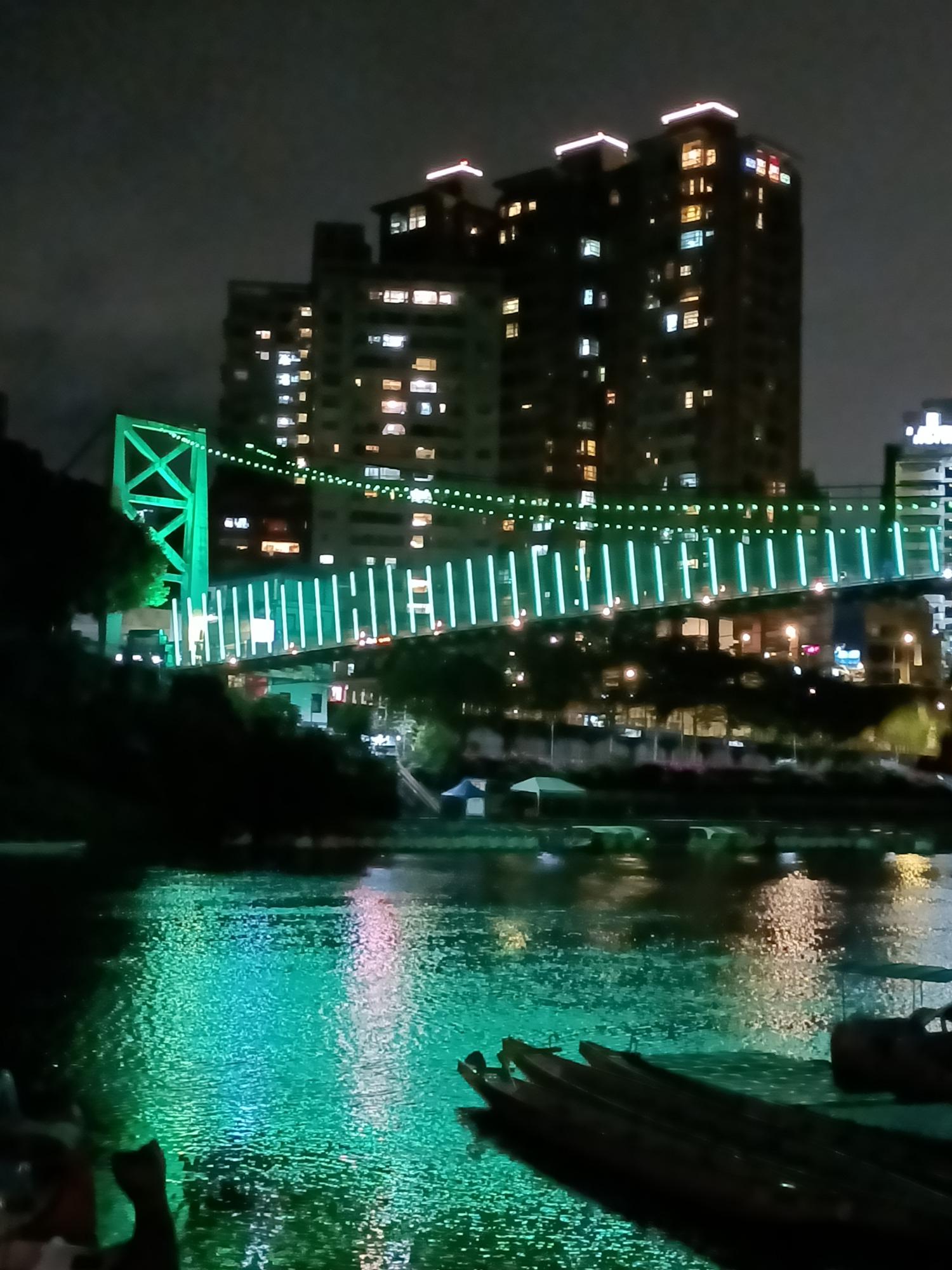 妝點著彩色燈光的碧潭吊橋,就像是橫跨水面的彩虹,