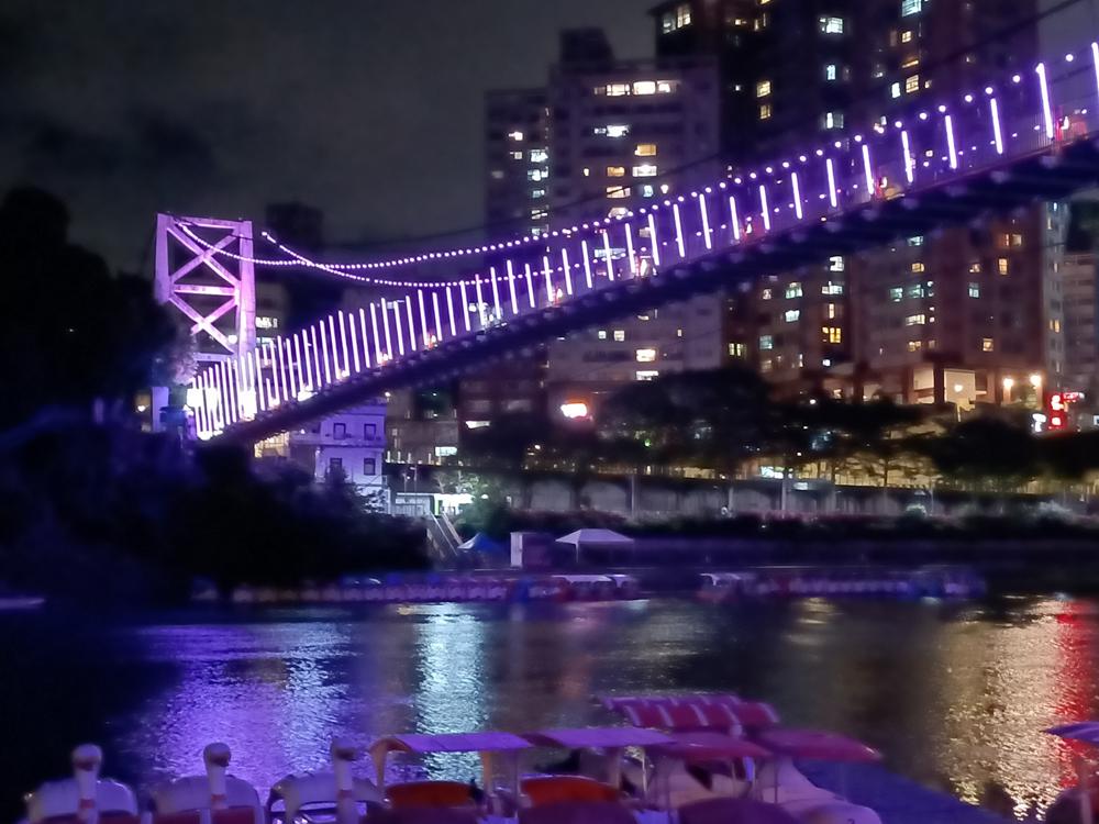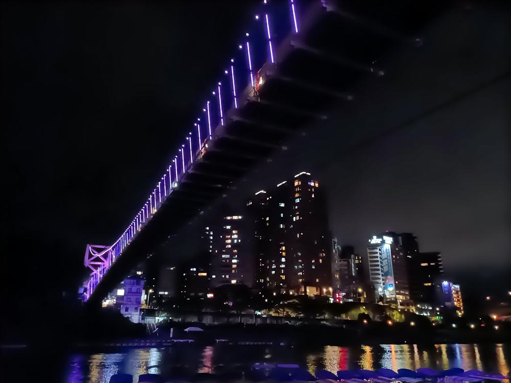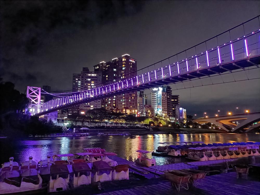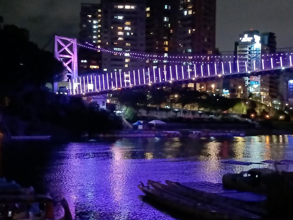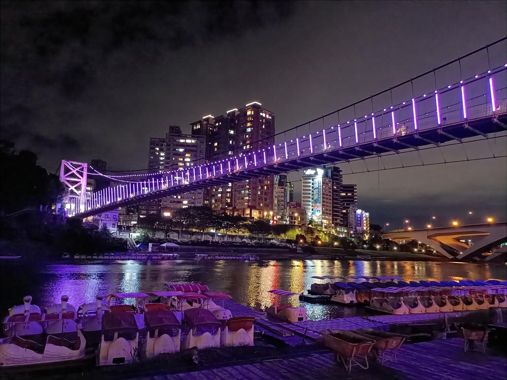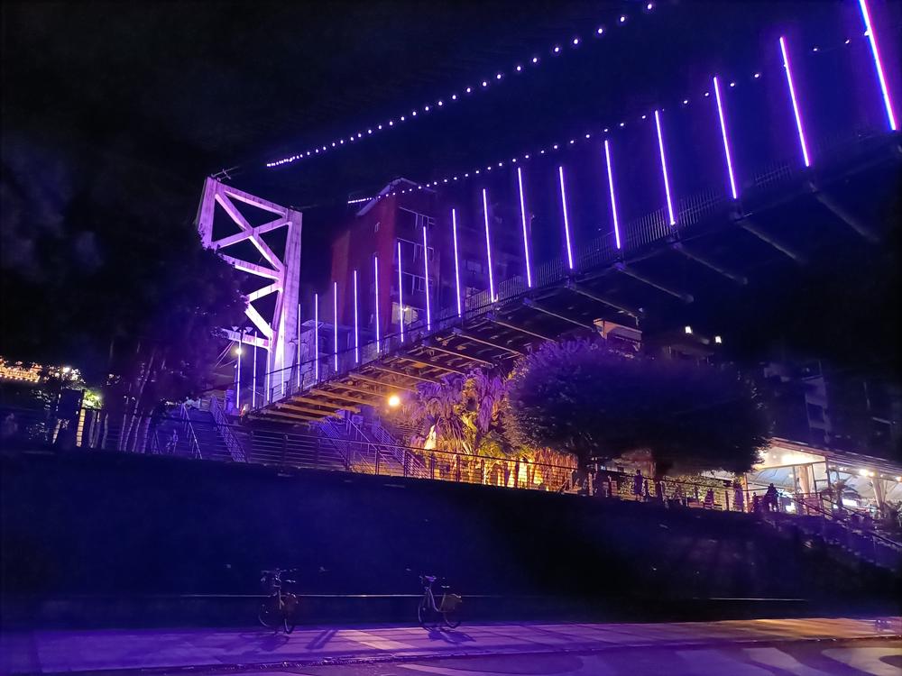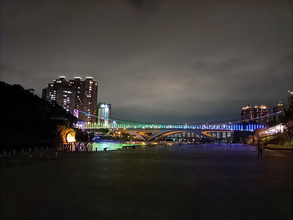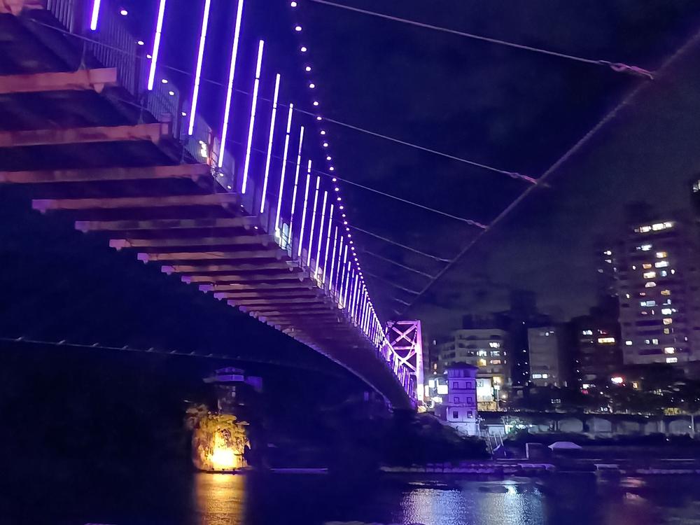 妝點著彩色燈光的碧潭吊橋,就像是橫跨水面的彩虹,