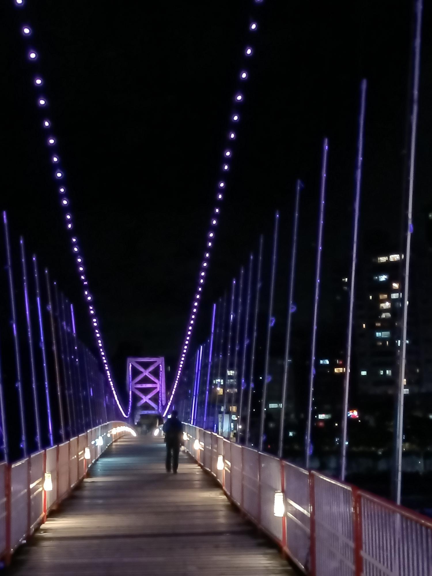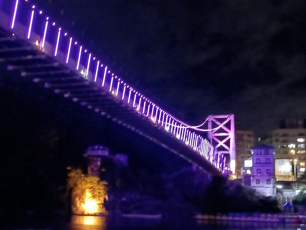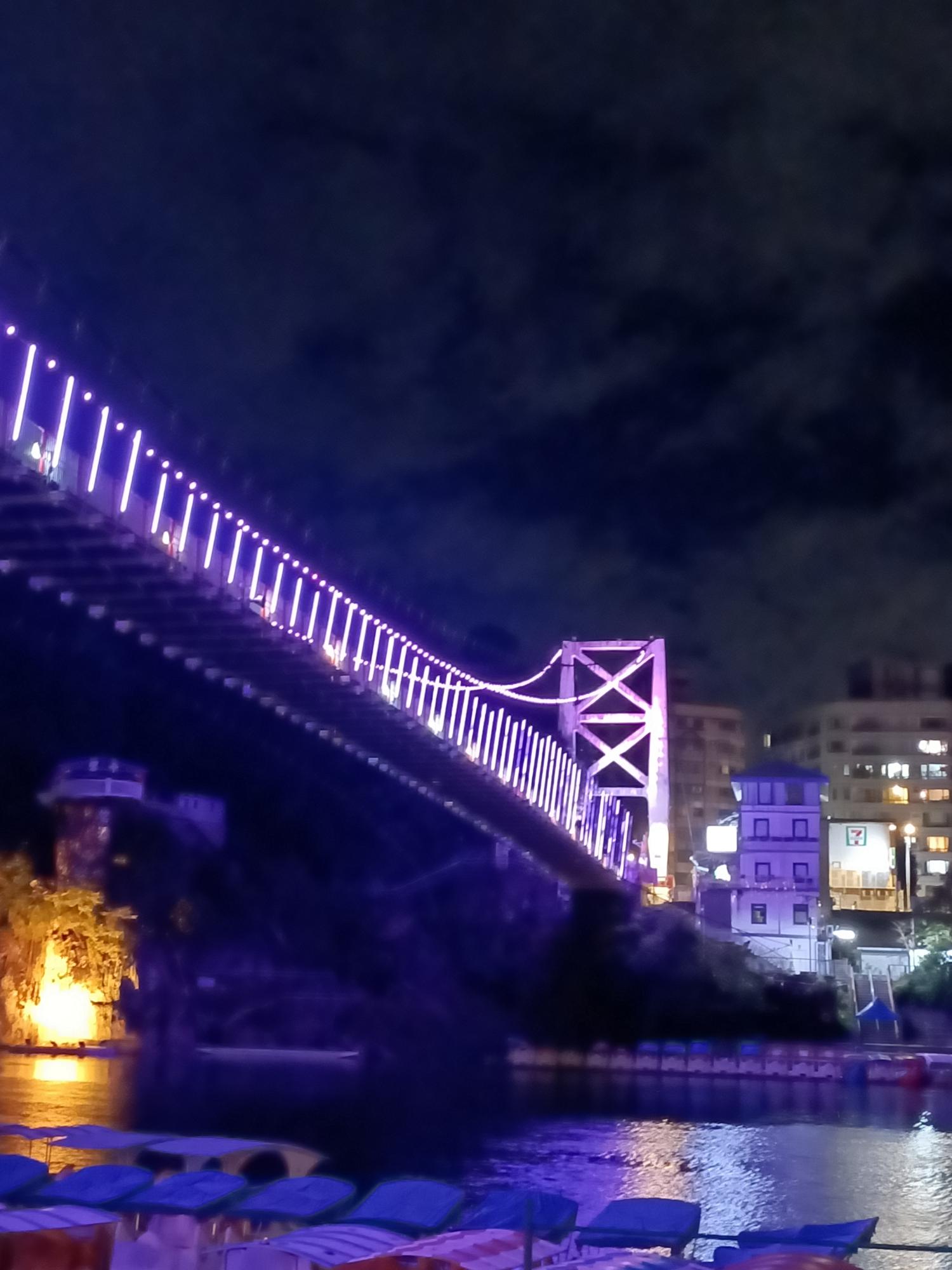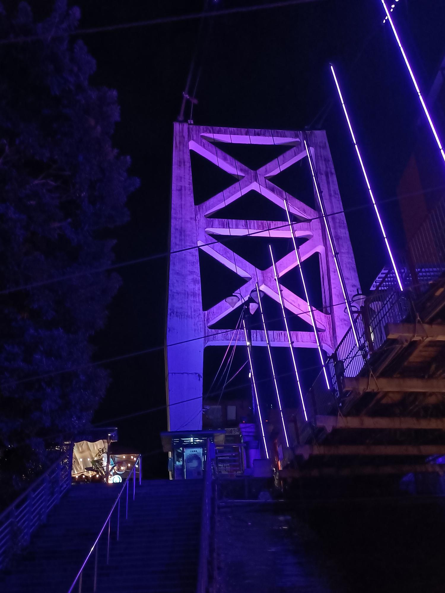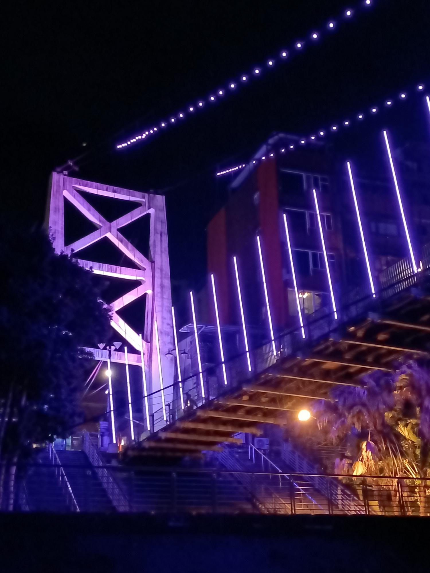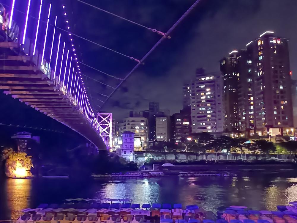 妝點著彩色燈光的碧潭吊橋,就像是橫跨水面的彩虹,