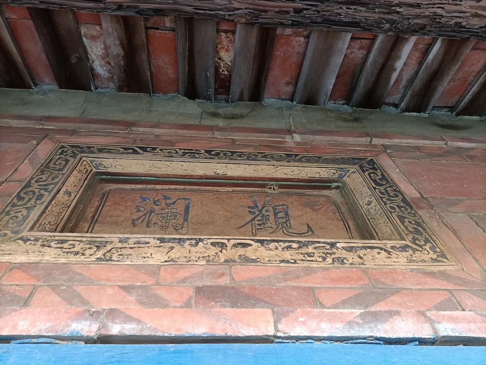 過水廊門,馬背脊墜優雅,前方院埕,鋪設石板,後院為壟起小丘,