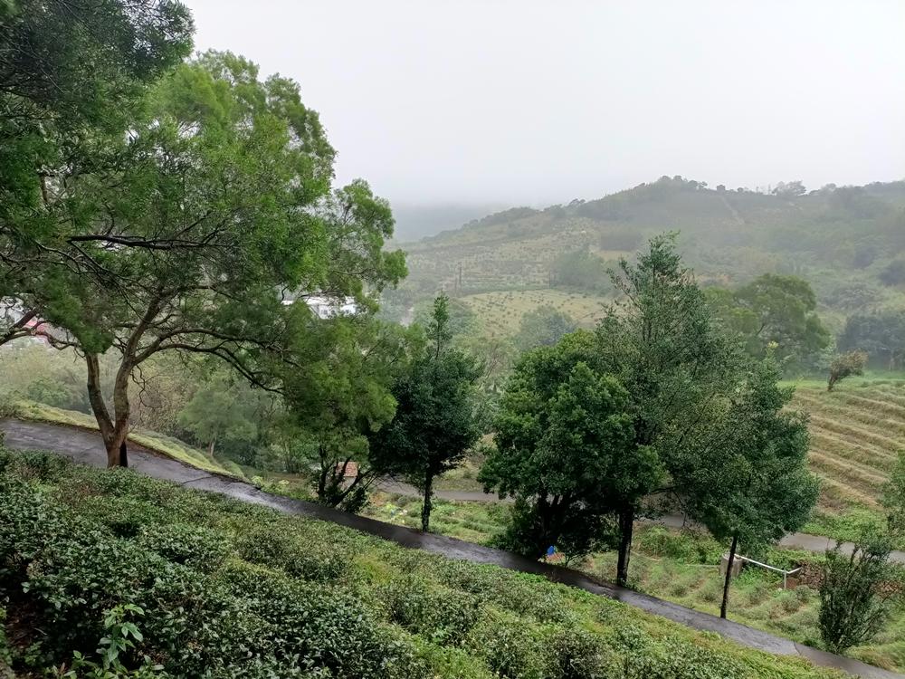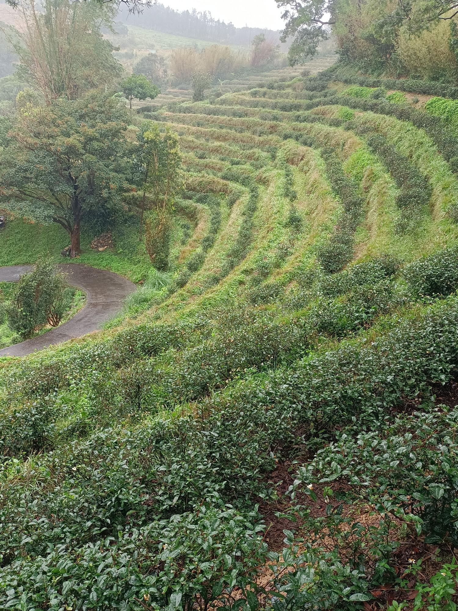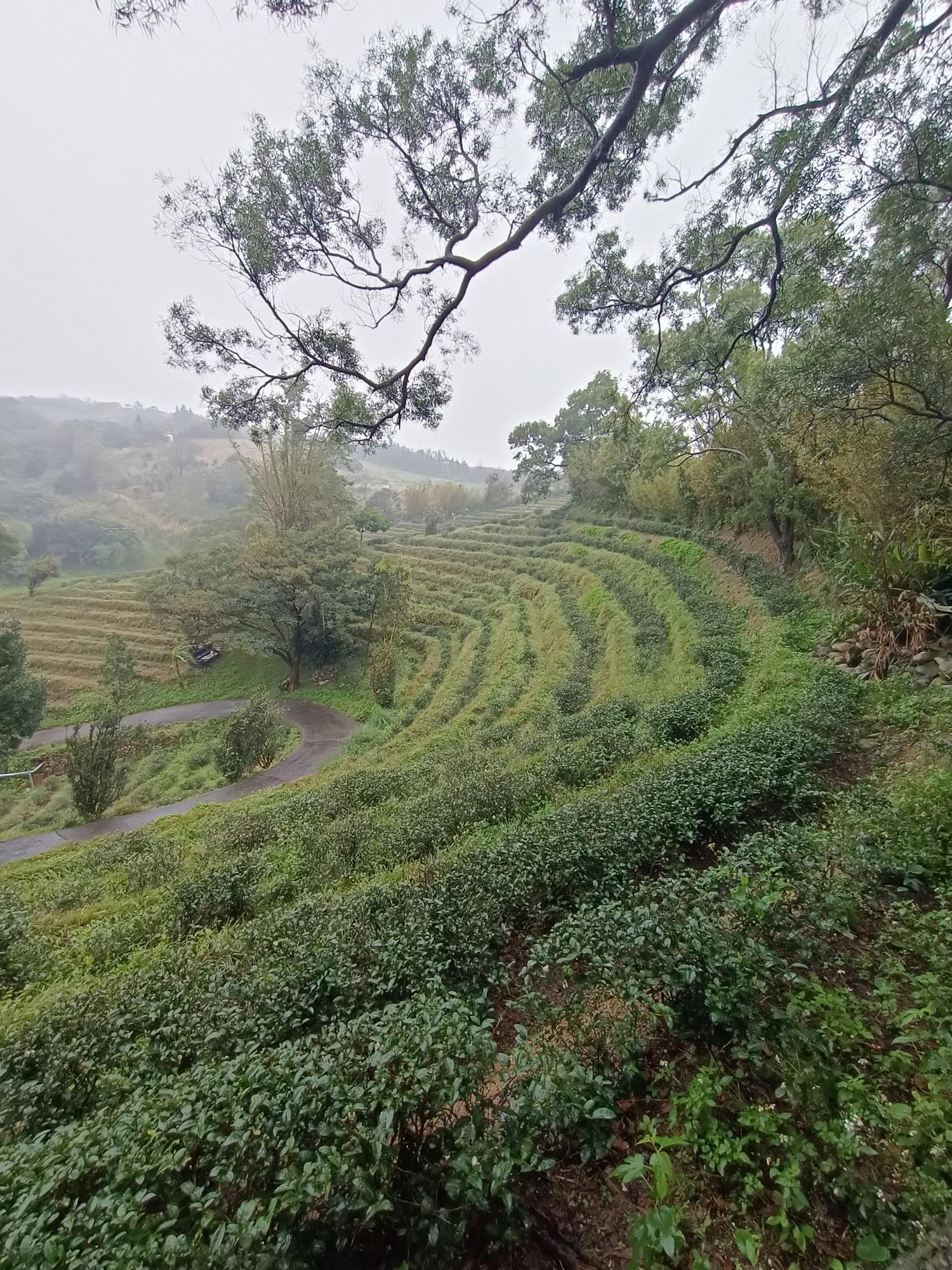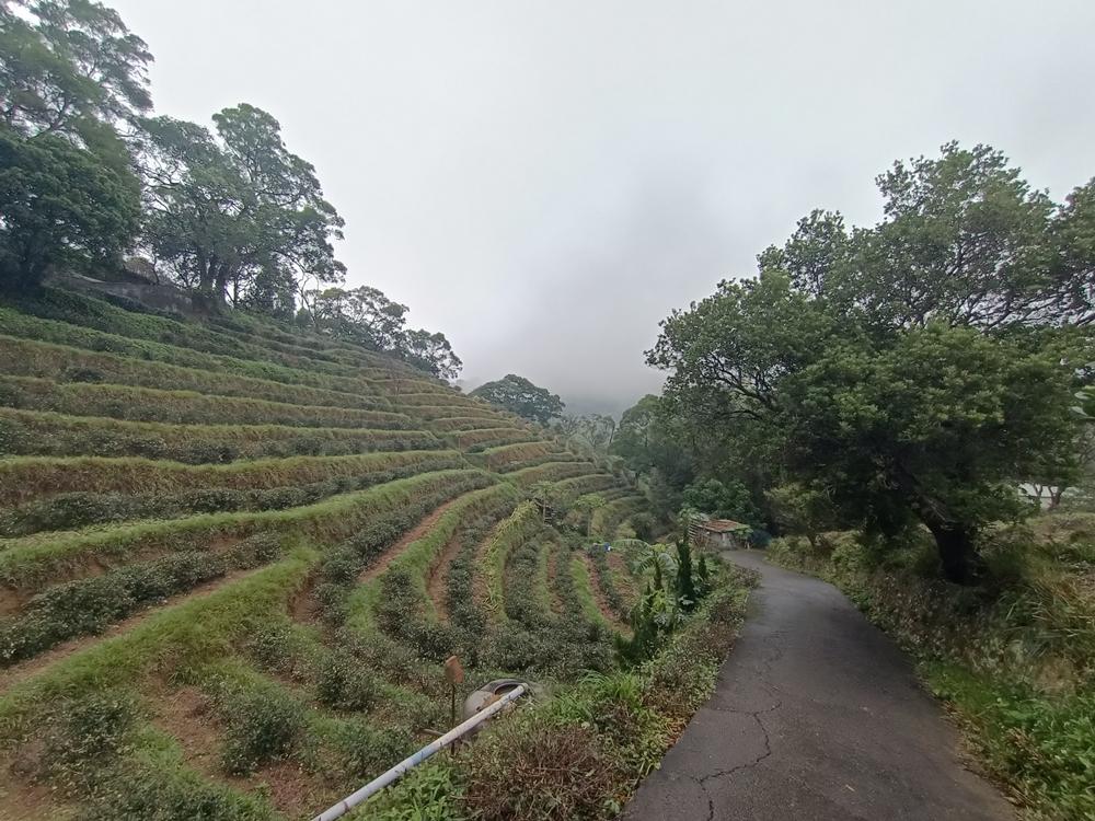 沿著秀才路769巷進入茶園段,眼前是一層層排列整齊的茶園梯田,