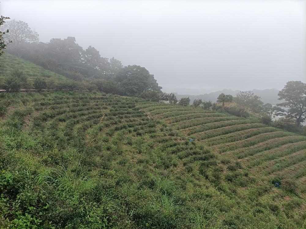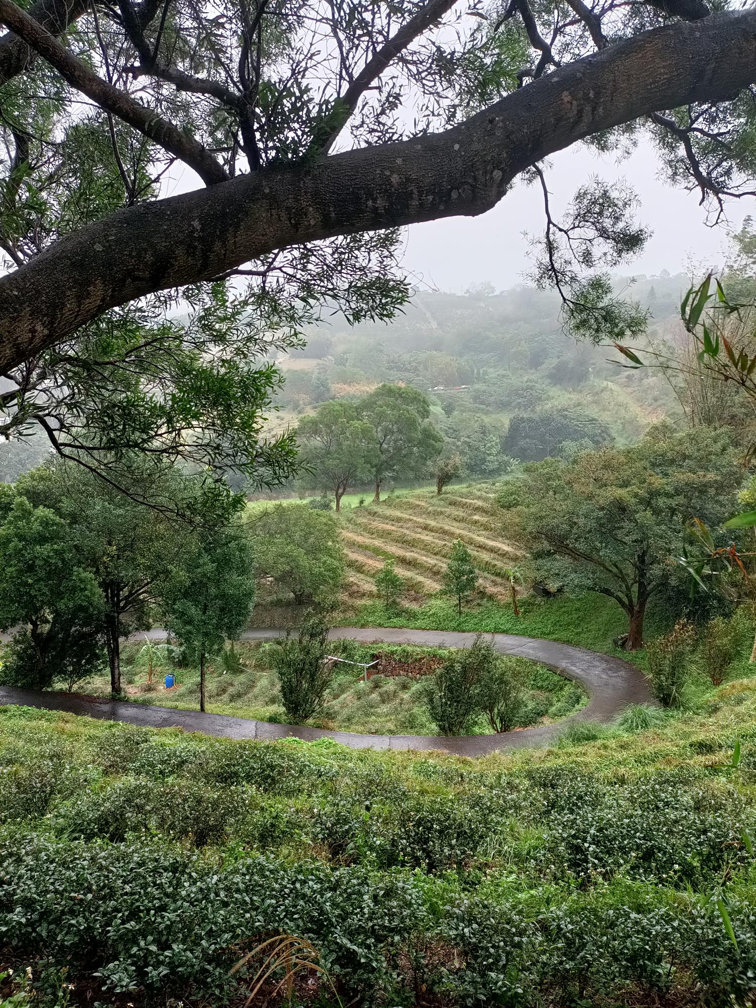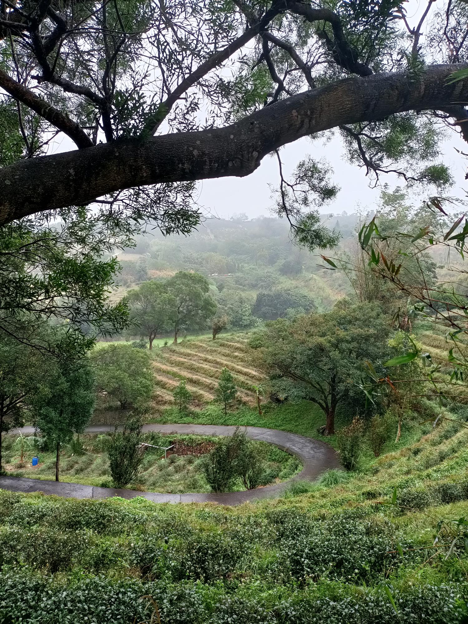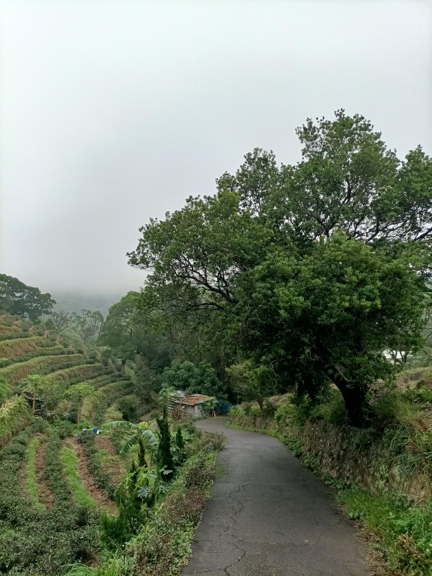 沿著秀才路769巷進入茶園段,眼前是一層層排列整齊的茶園梯田,