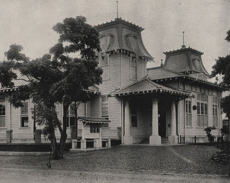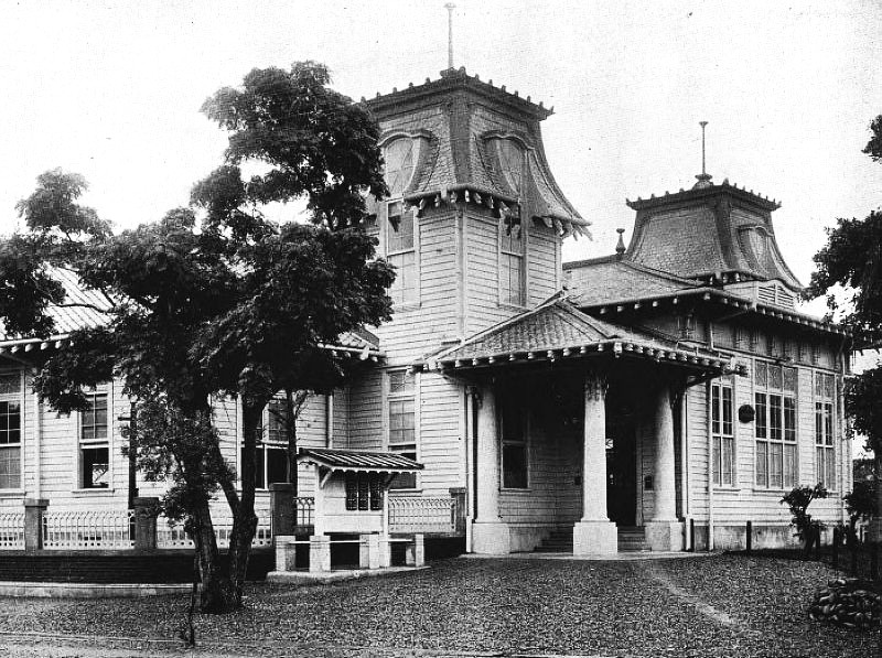 於明治29至30年興建第一代新竹郵便電信局。