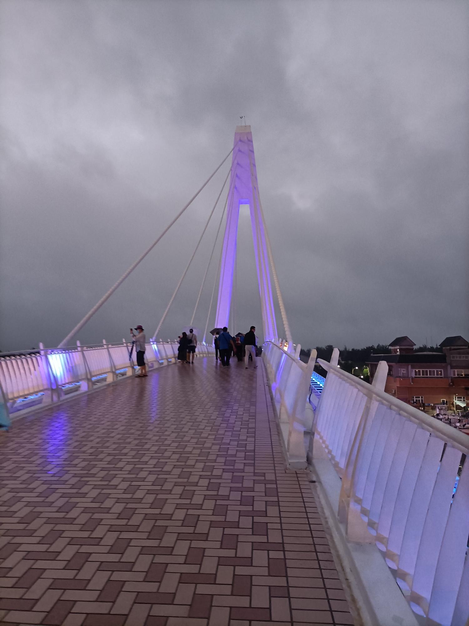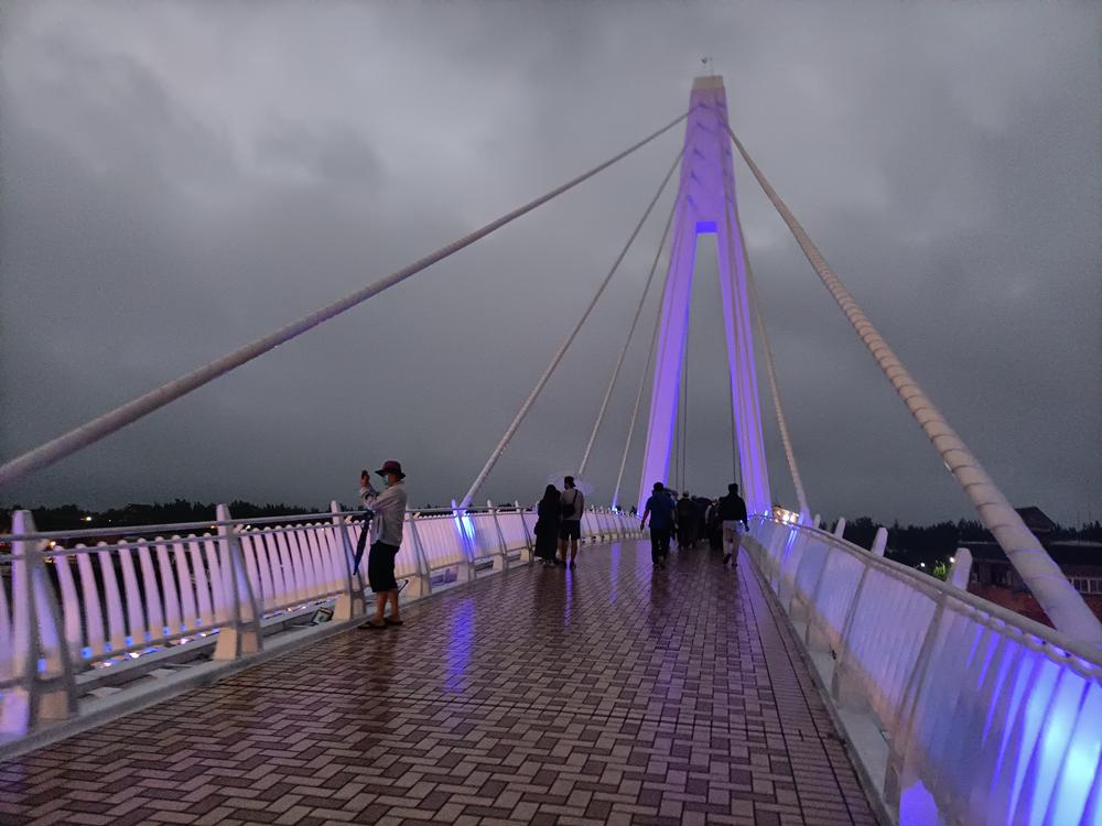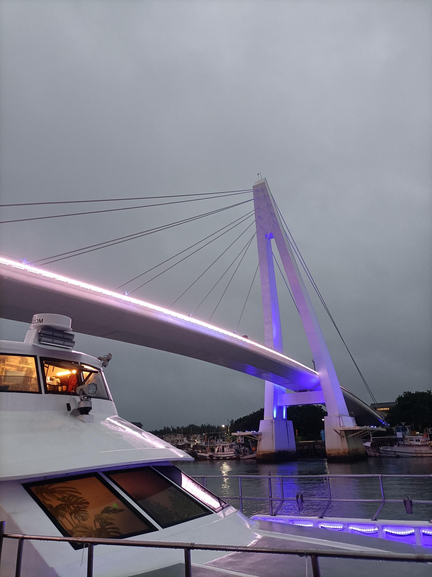 為一座白色的斜張橋,在橋上可欣賞夕陽景色,總長約196公尺,
