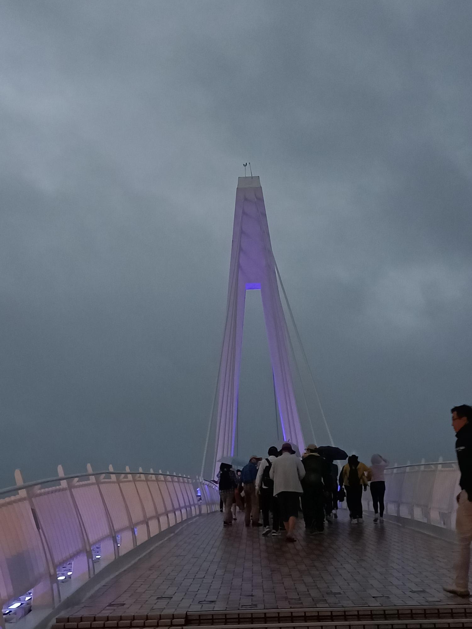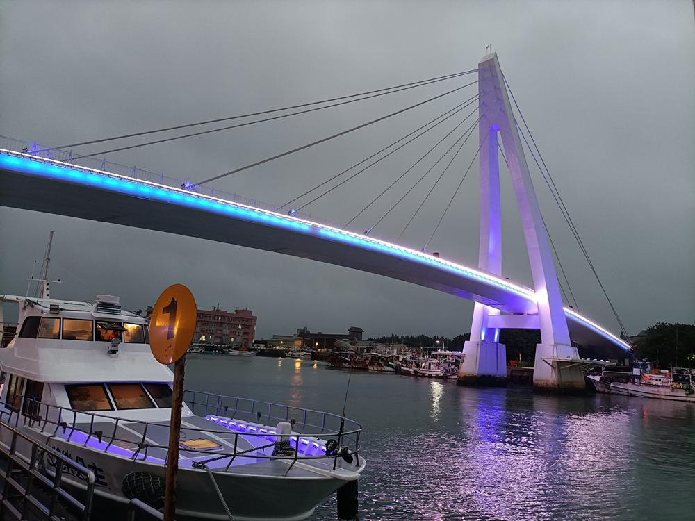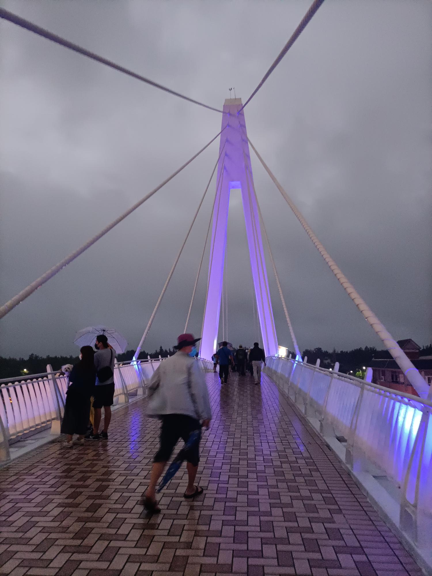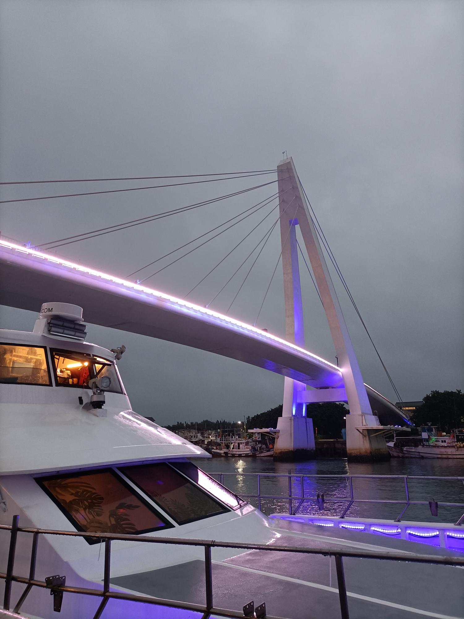 為一座白色的斜張橋,在橋上可欣賞夕陽景色,總長約196公尺,