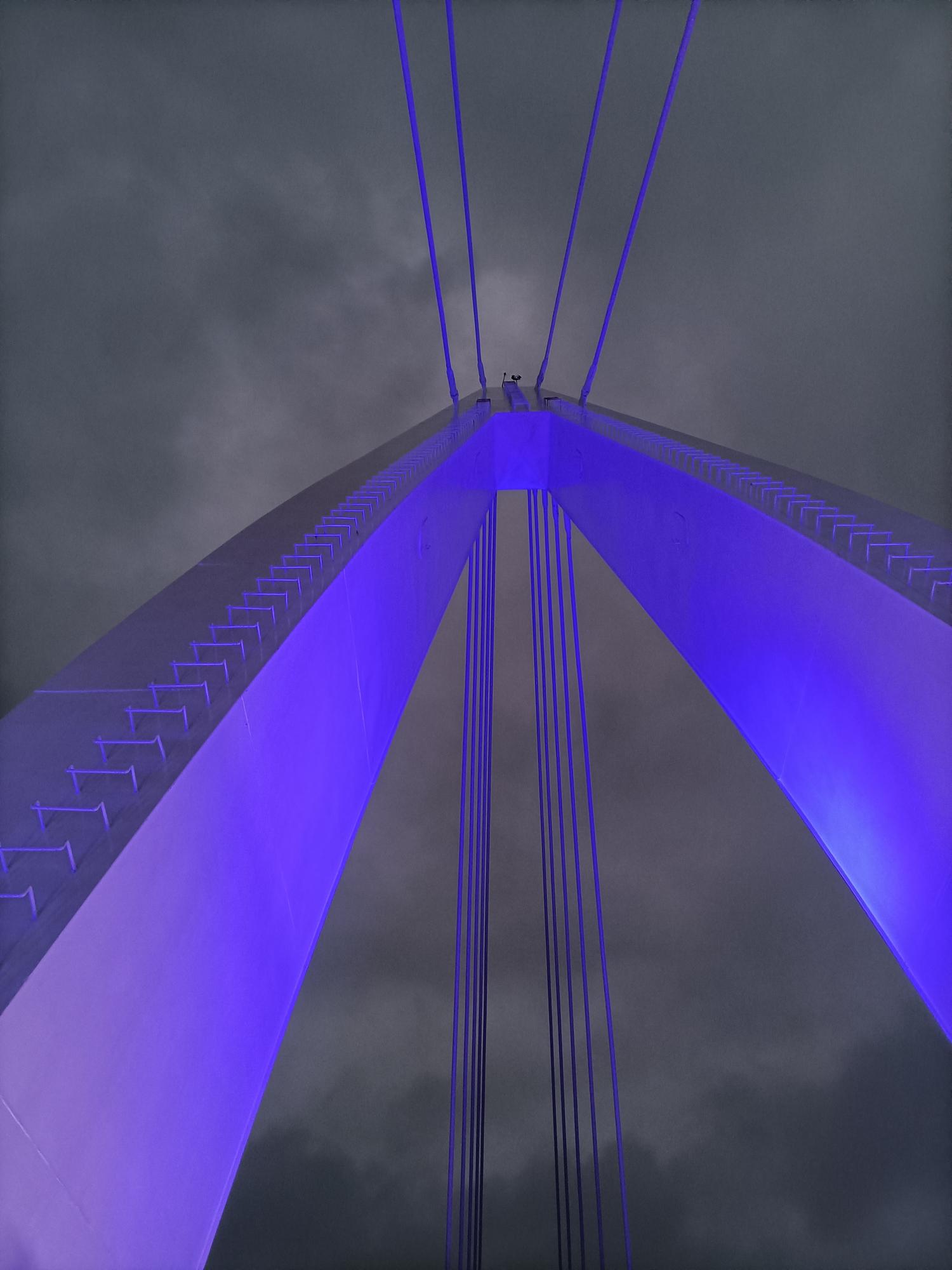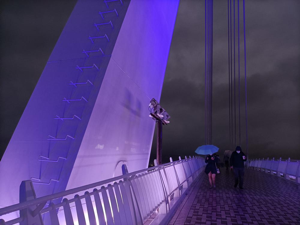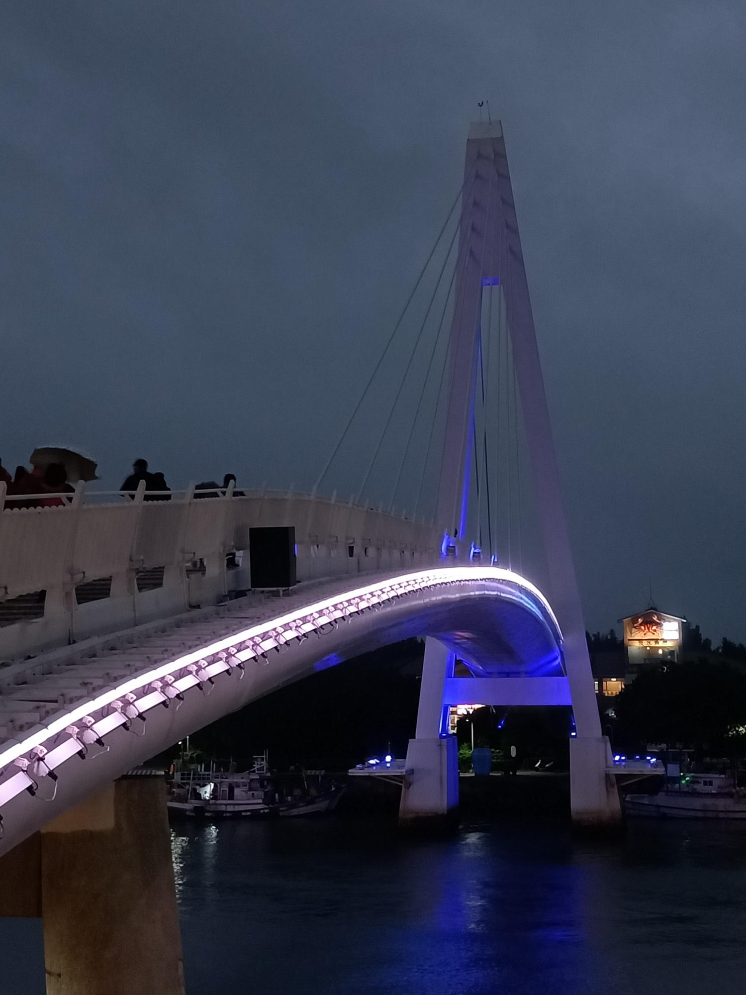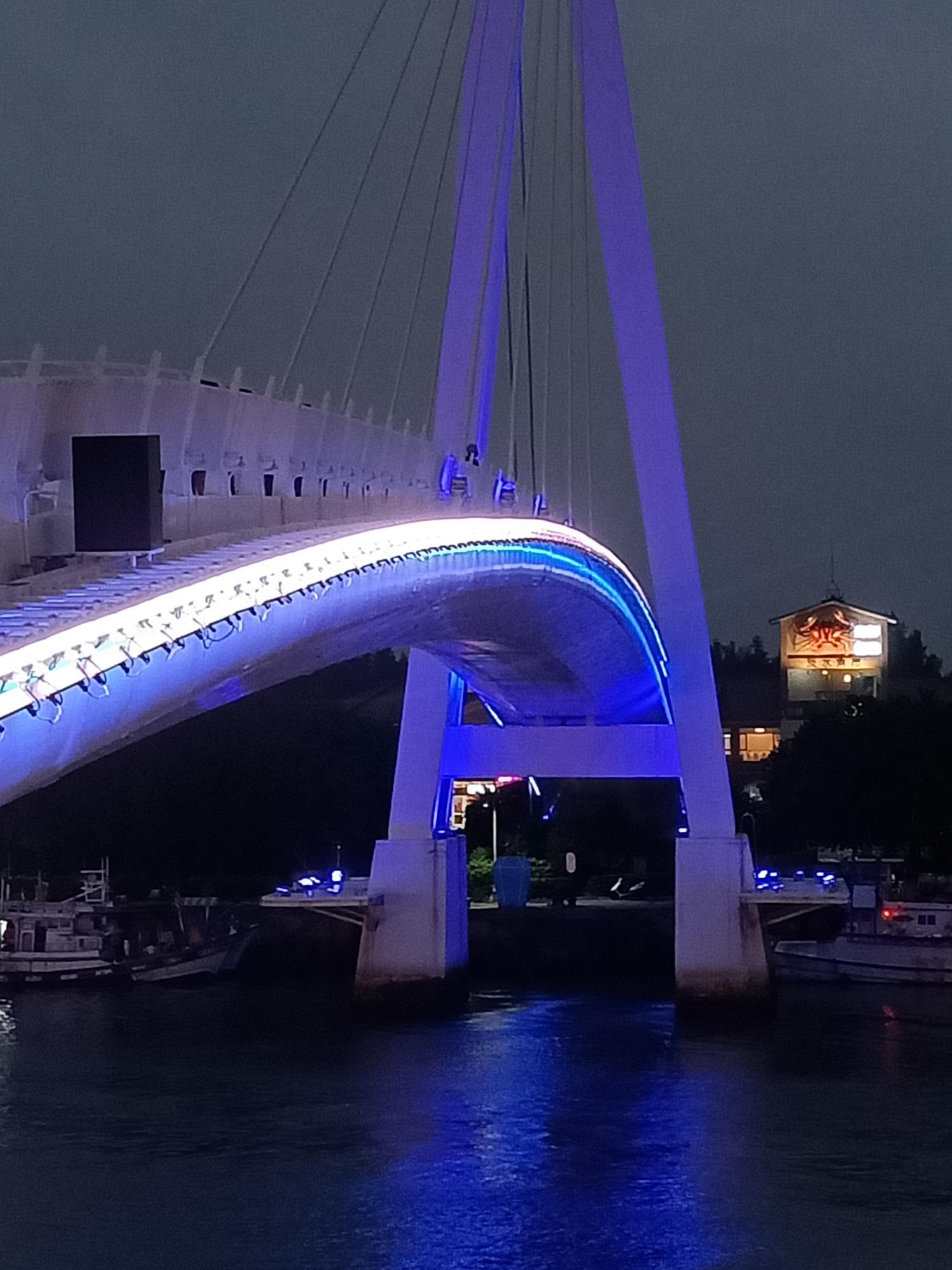 當夜晚來臨時,白色的橋面在燈光的照射下,更顯多彩繽紛,