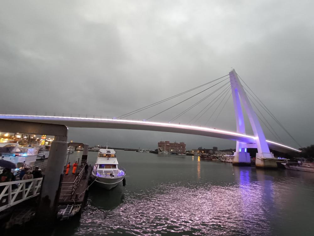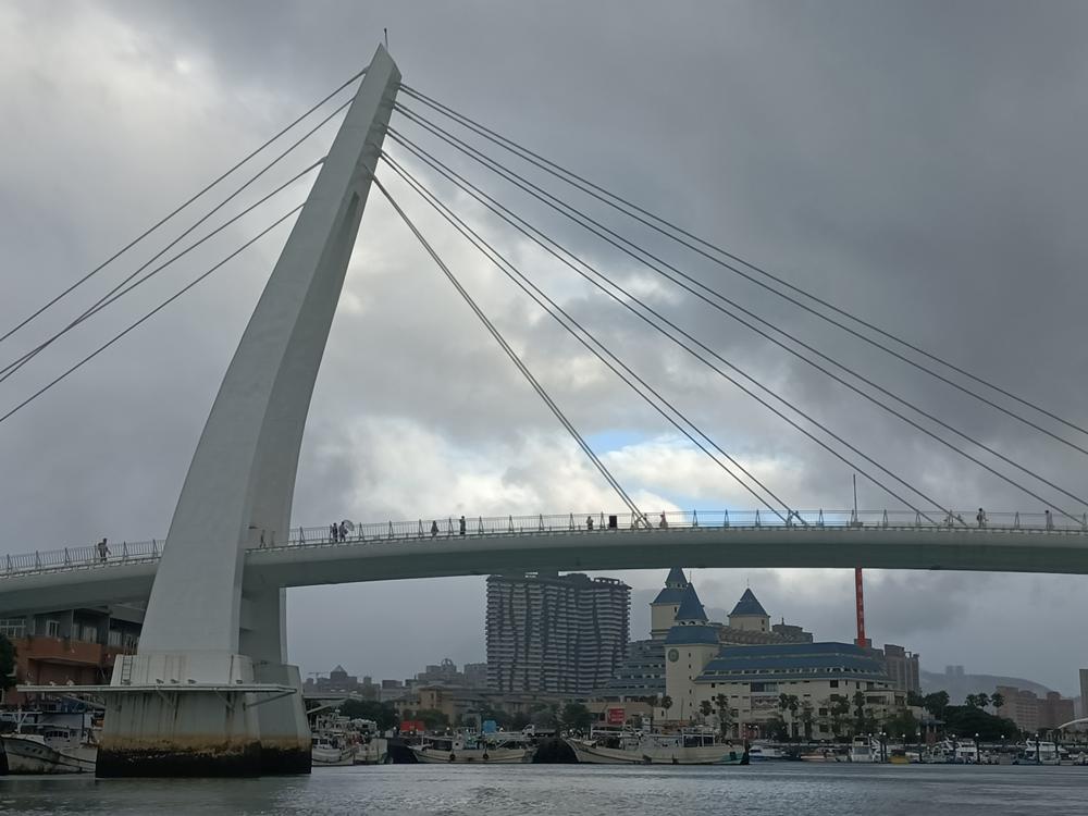 全長165公尺,以流線的單面斜張橋橫跨港區,白色風帆造型