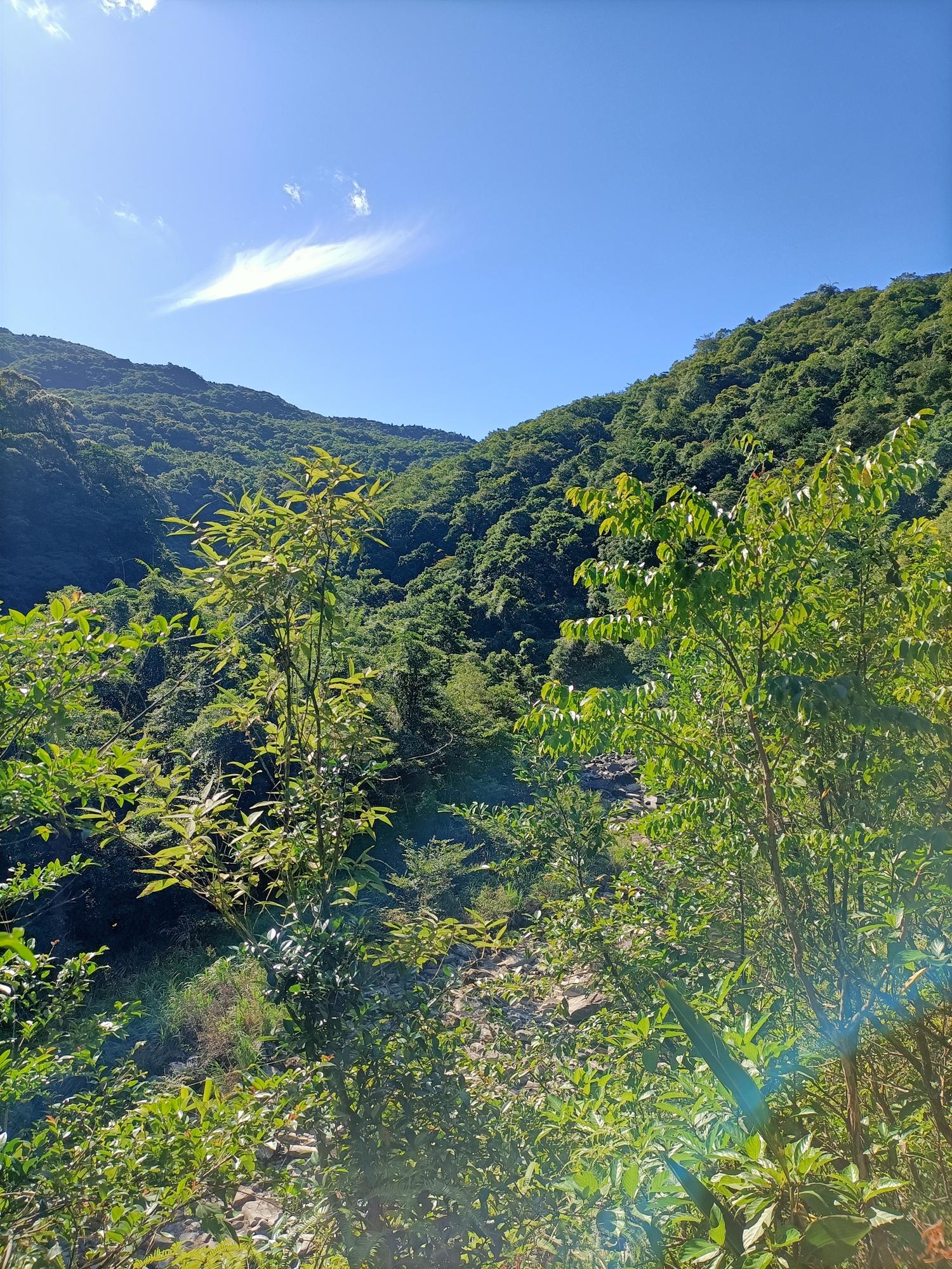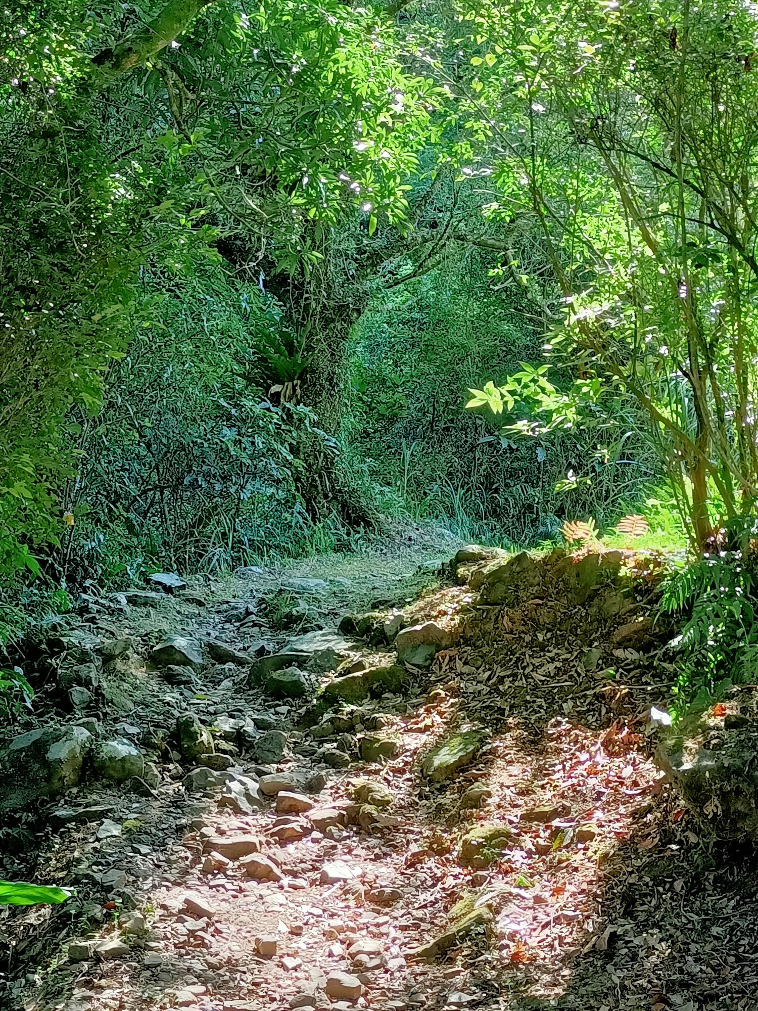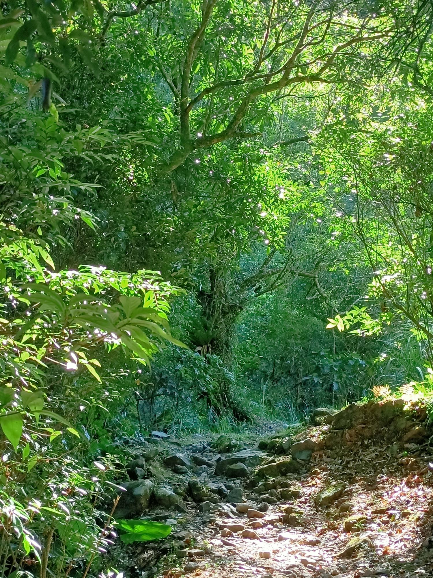 古道沿途都有綠蔭遮蔽,潺潺水聲一路相伴,不時還能見到