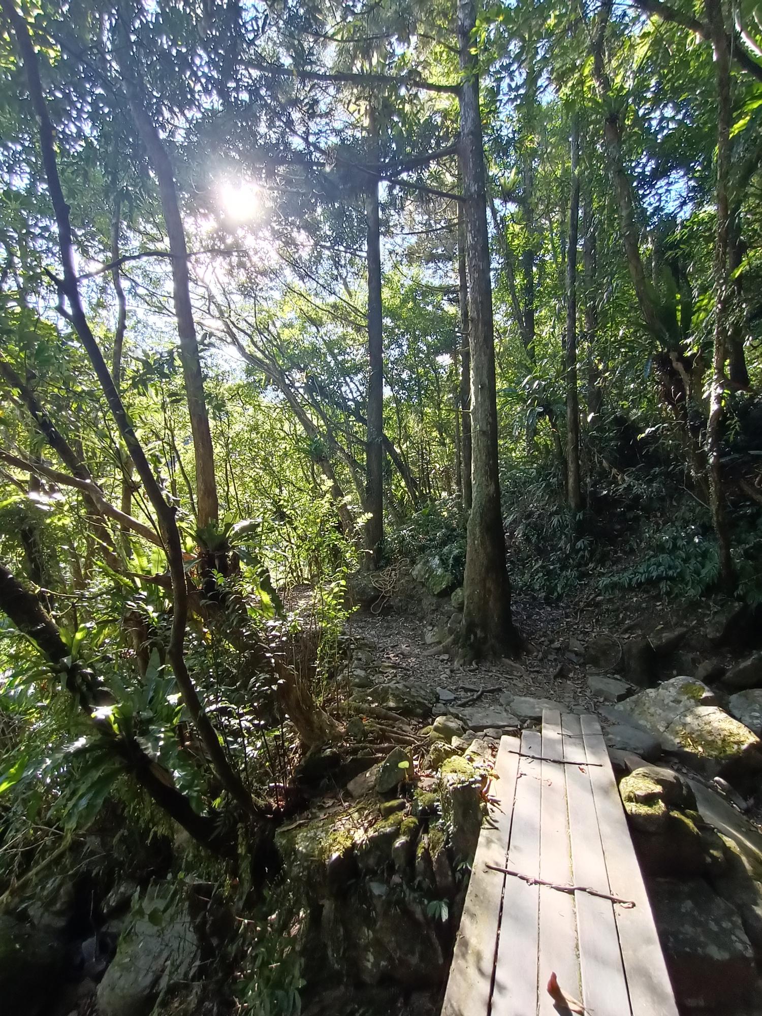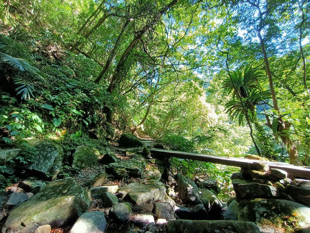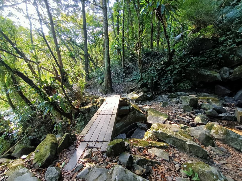 行至中途溪石木橋處,略事休息後,便原路返回;