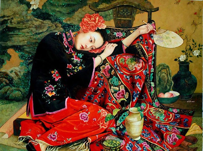 與現代女性人物為代表,傳統的唯美氣息與古典的油畫語言水乳交融,