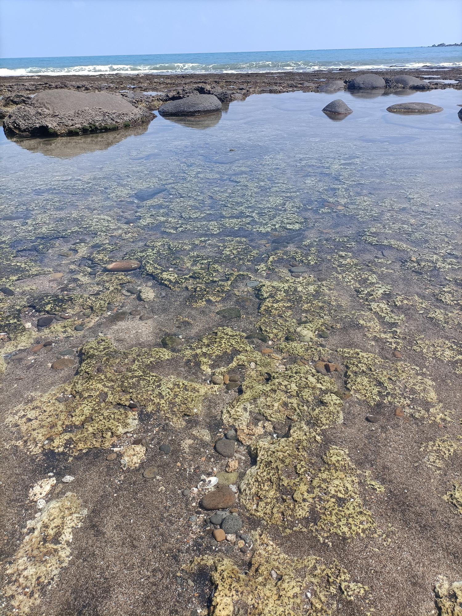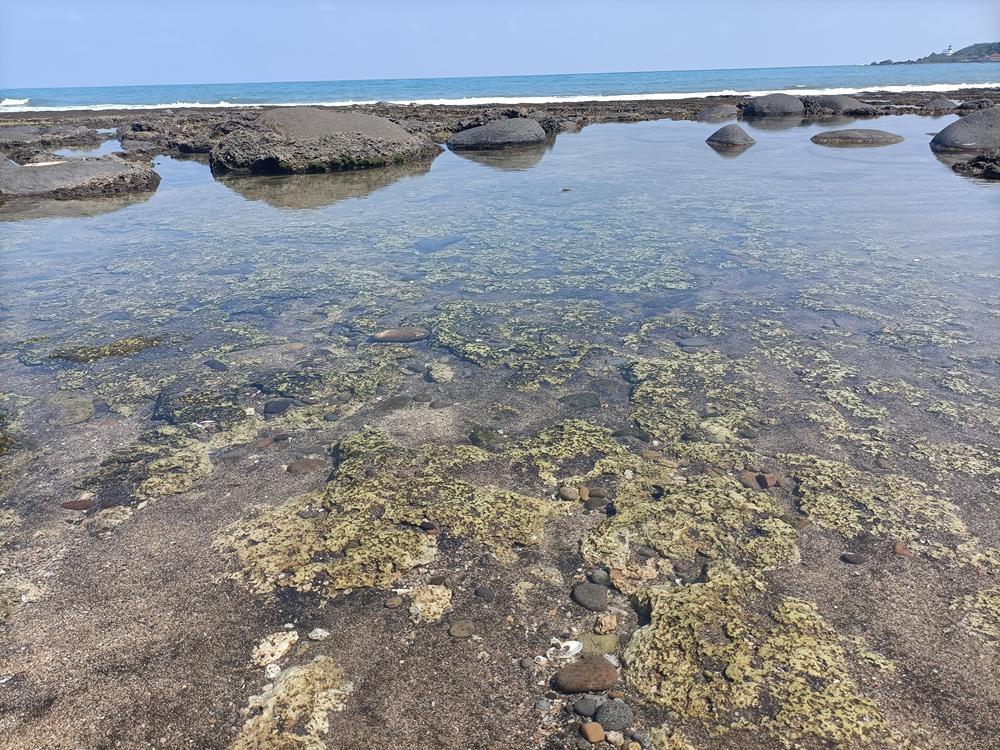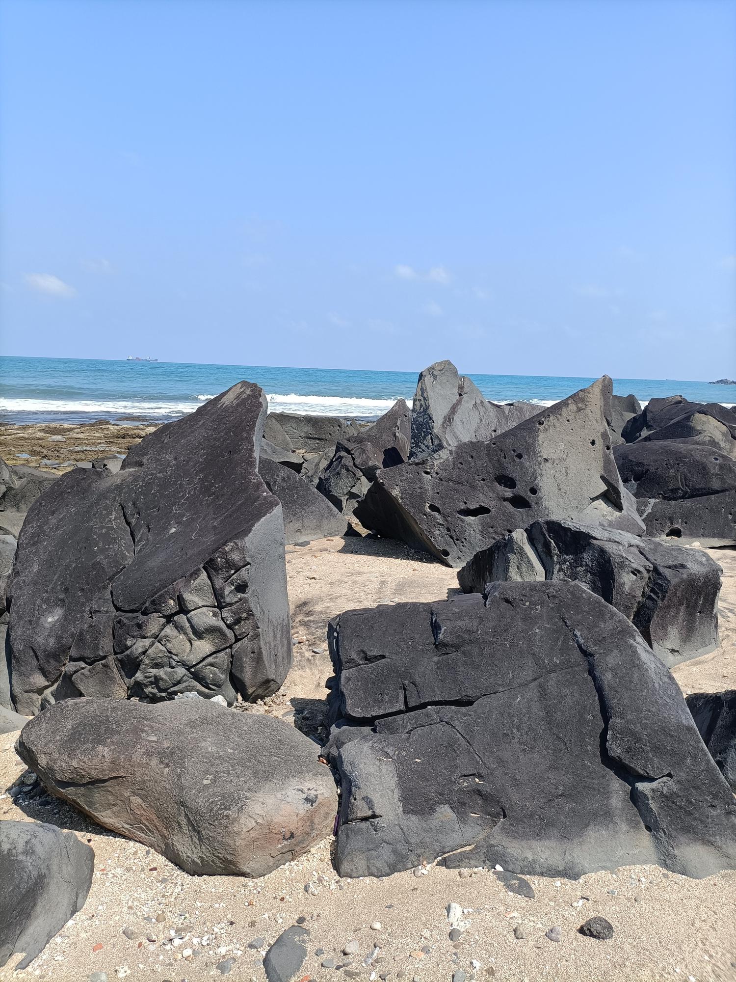 麟山鼻岬角東側海灣沙灘,常夾雜著由安山岩風化後,